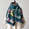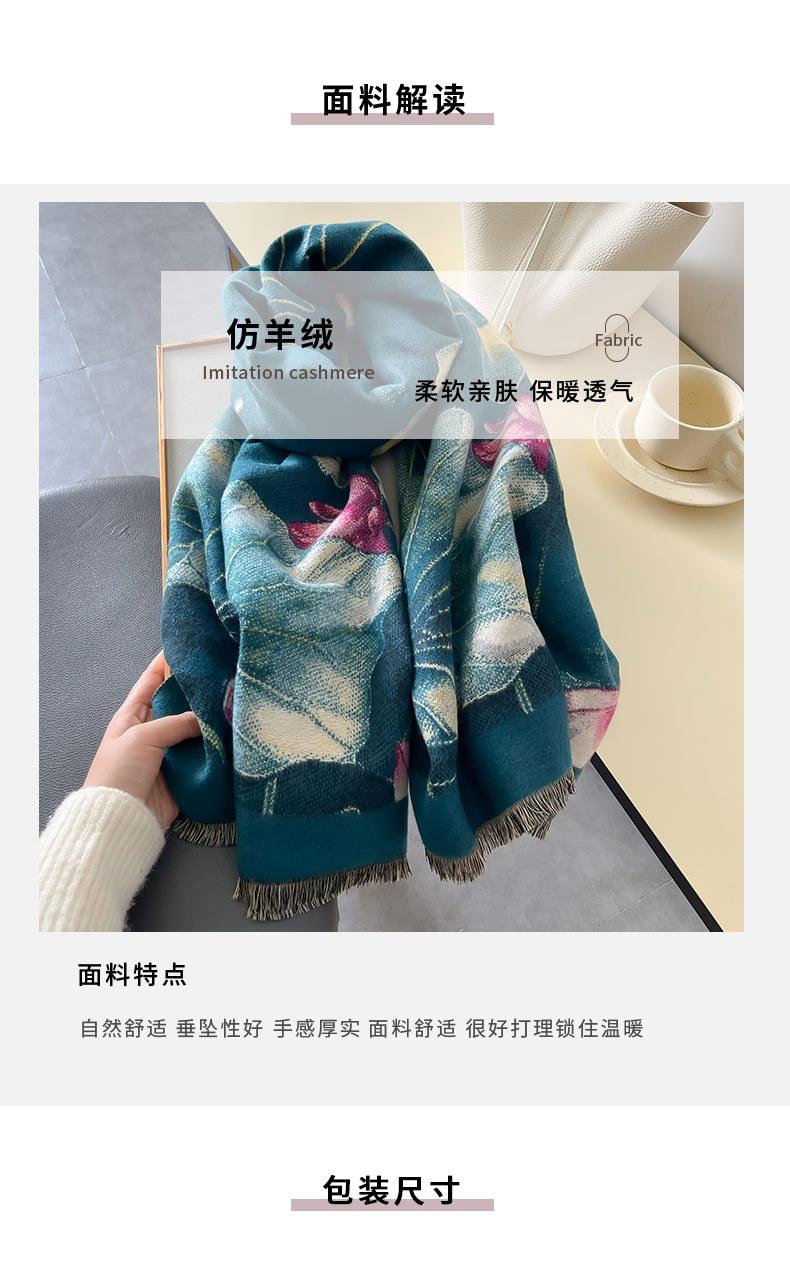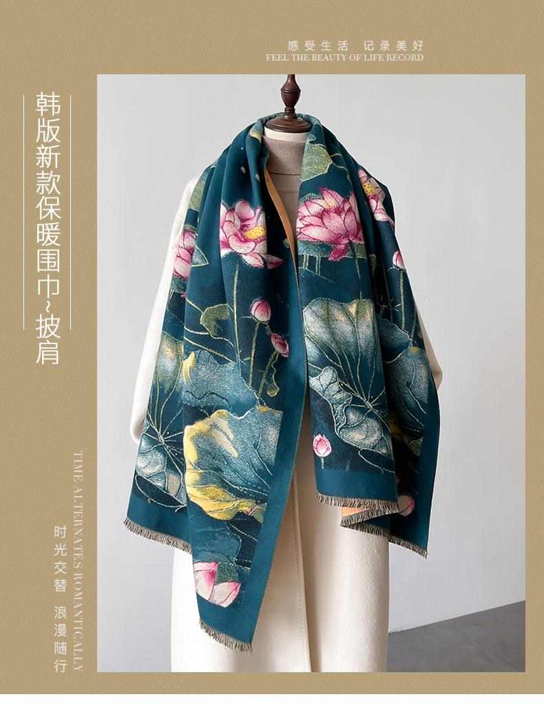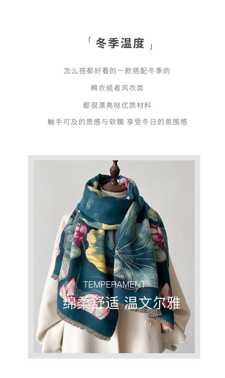 Bufanda Estampado de Loto Elegante de Alta Gama Moda Otoño e Invierno Bufanda Cálida de Doble Uso Cachemira Engrosada Chal de Mujer