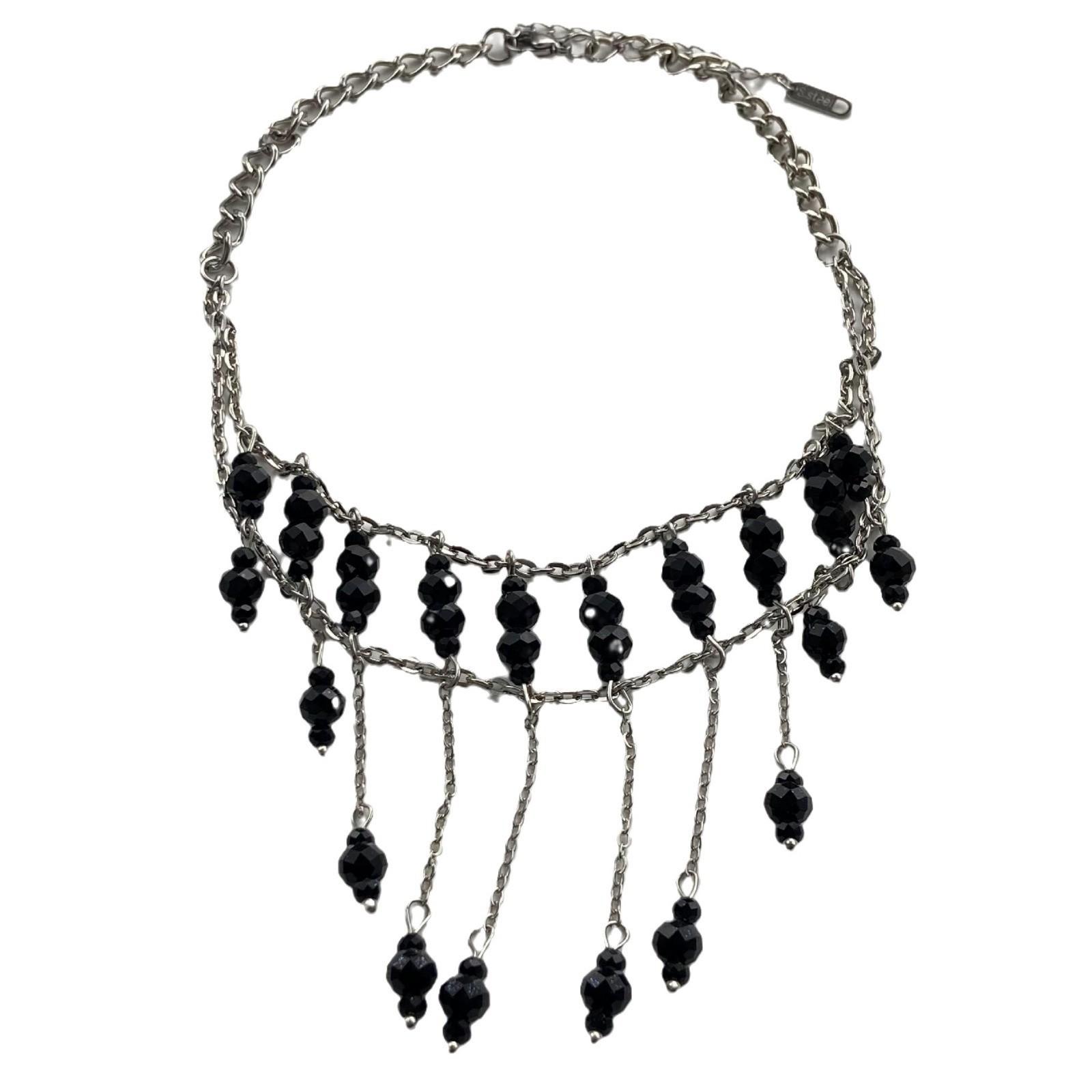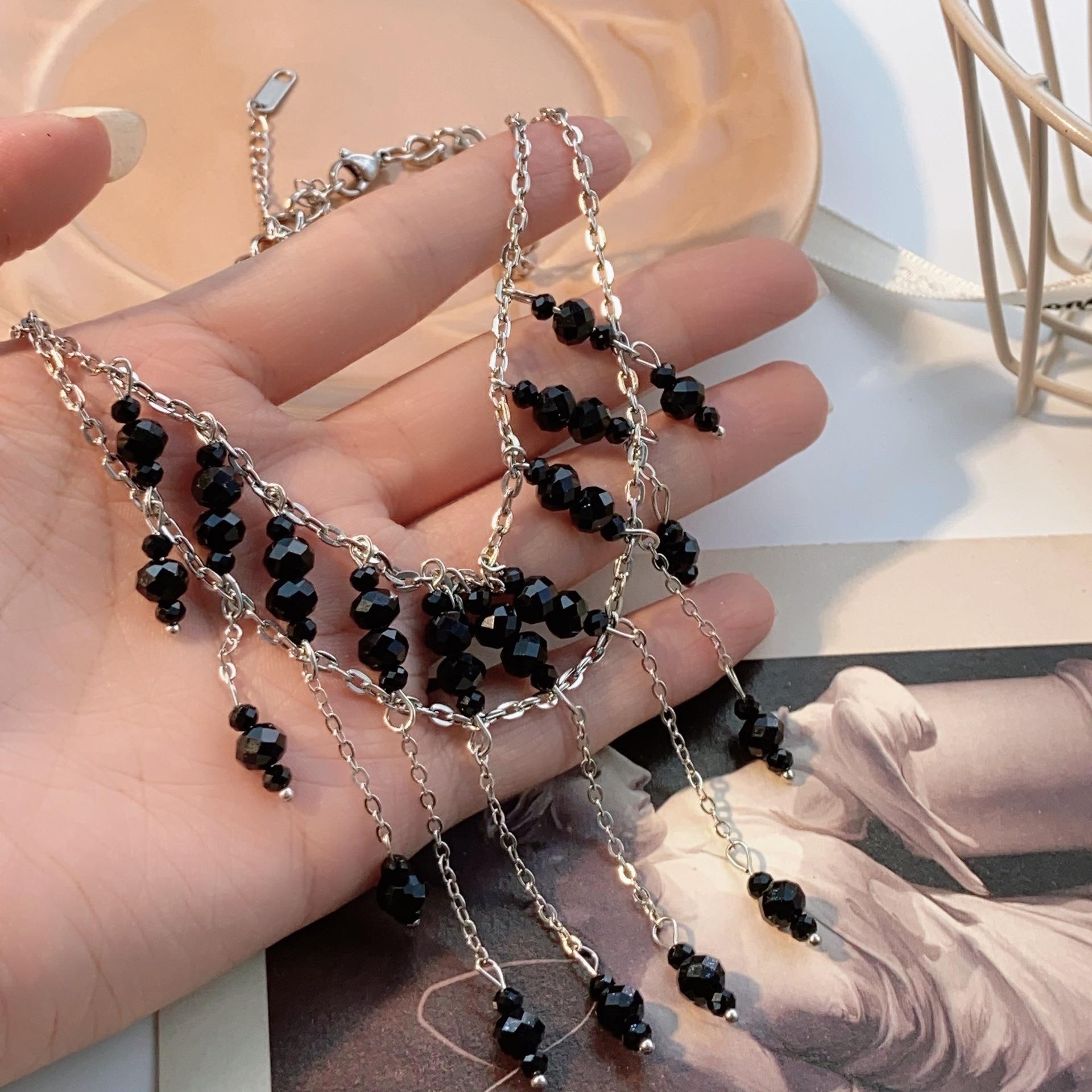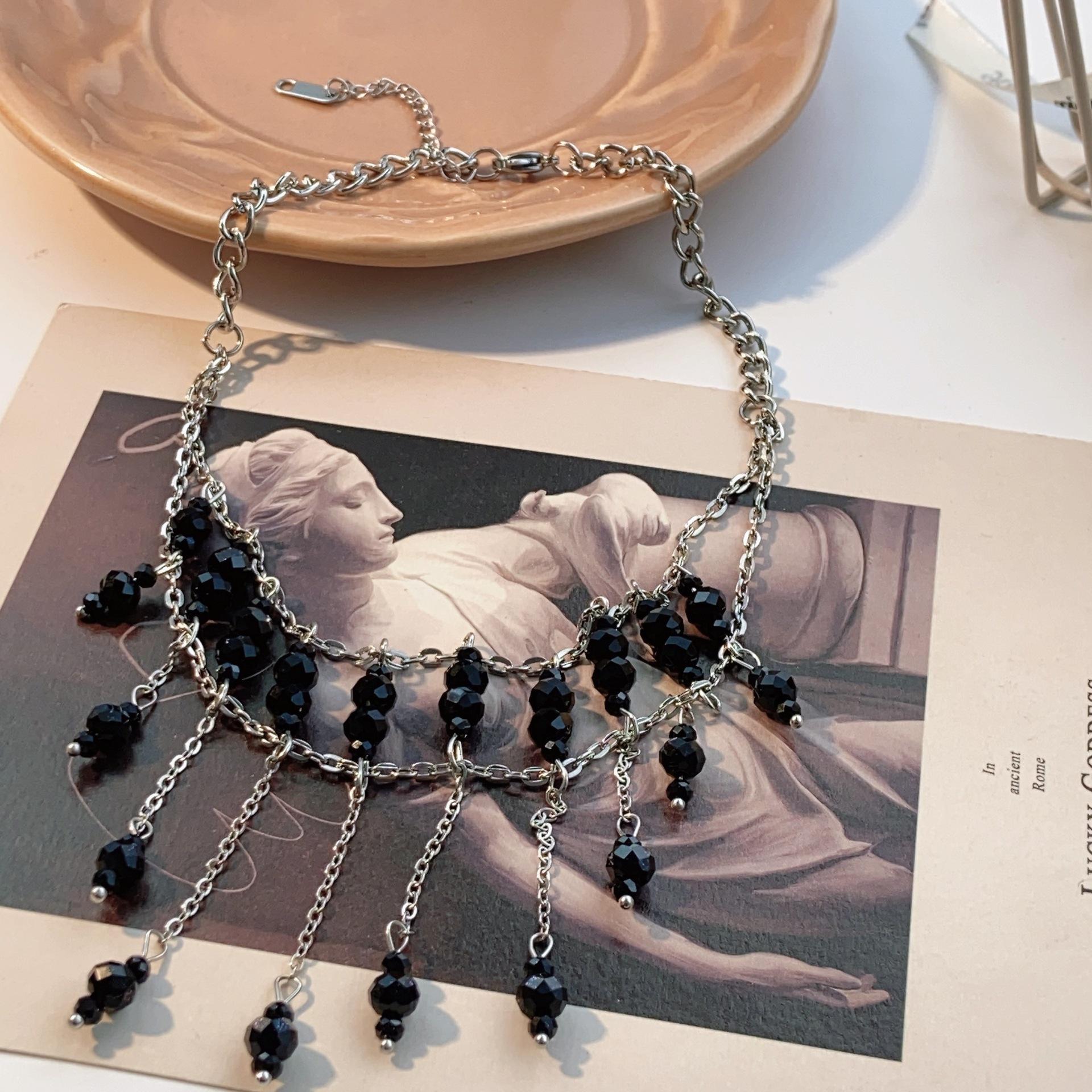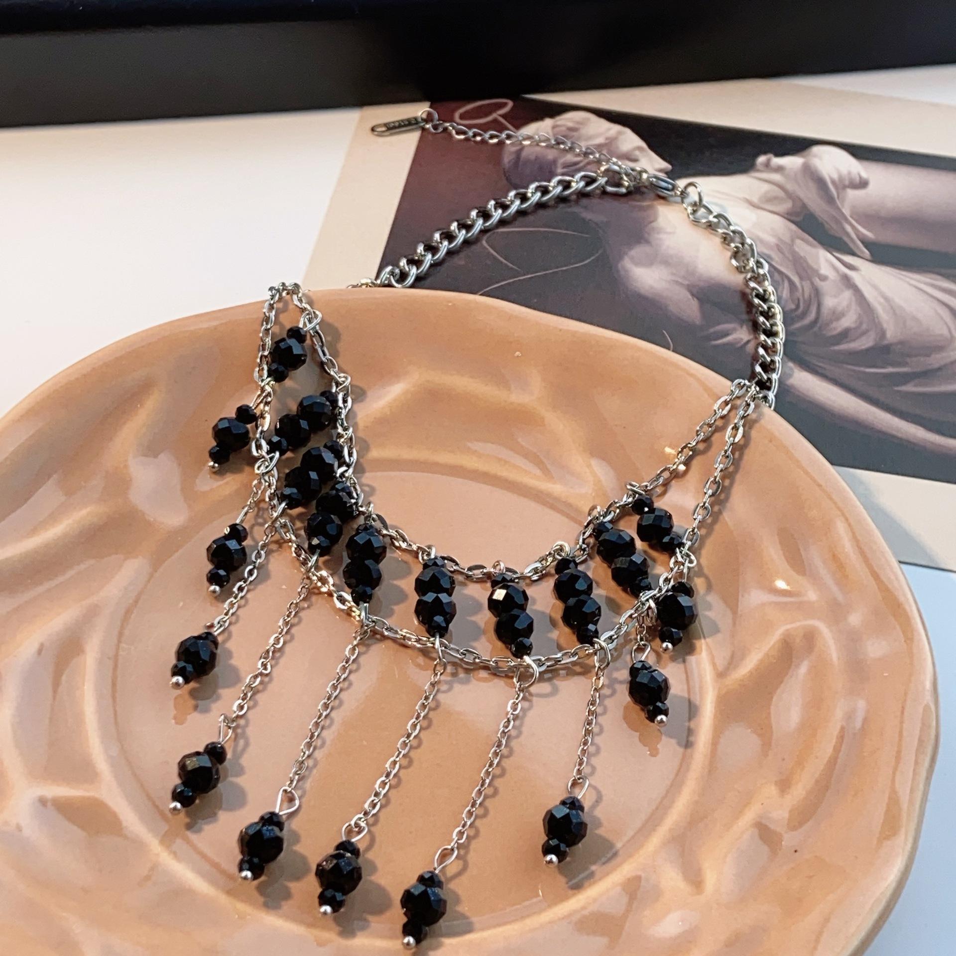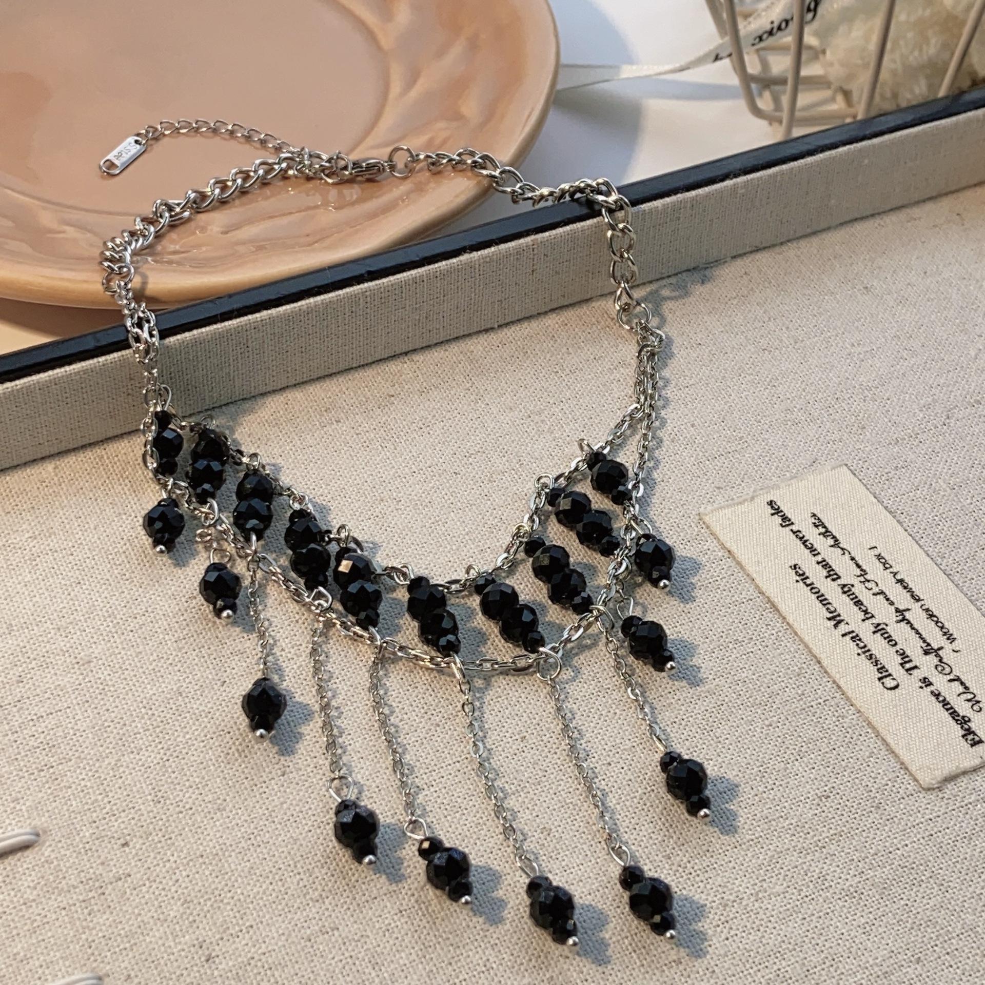 Collar de cadena con borlas negras a juego, moderno y elegante, con personalidad de nicho, accesorios de cadena de clavícula de alta gama, moda femenina.
