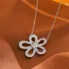 Collar Colgante Flor de Diamantes Completos de Lujo de Gama Alta, Cadena para Clavícula de Diseño Único, Estilo Popular en Stock