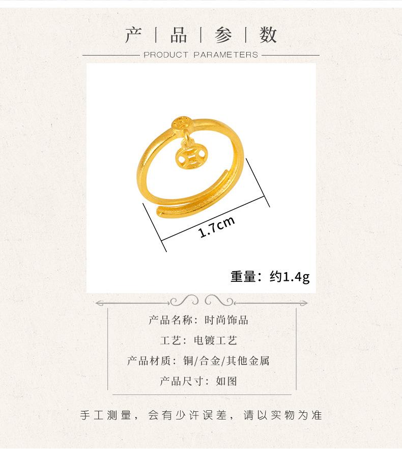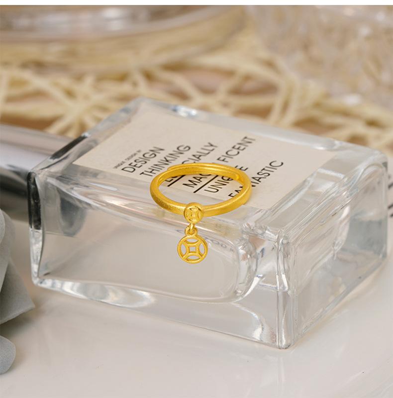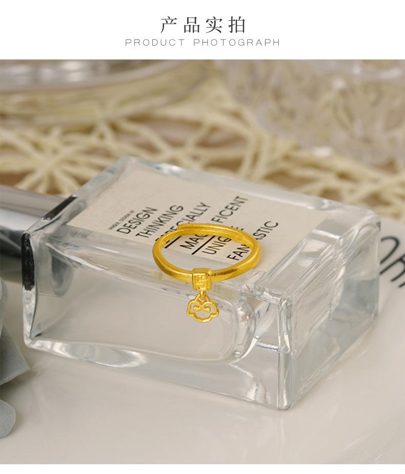 Anillo de Dedo de Oro Arena Artesanal Antiguo Oro Imitación Pequeña Fortuna Hueco Xiangyun Apertura Anillo Ajustable Joyería