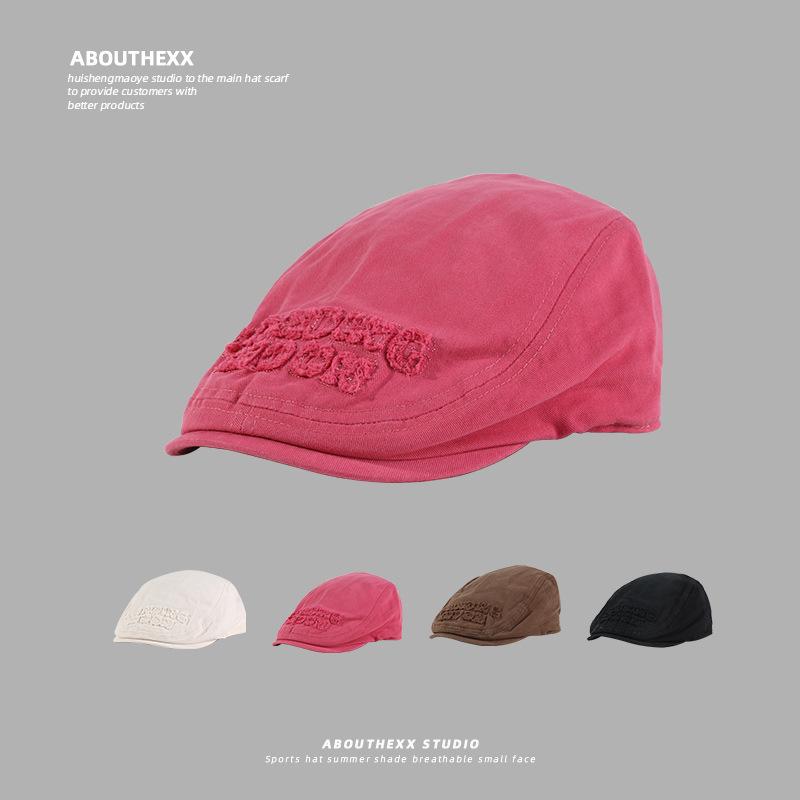 Gorra rosa con flecos y letras para mujer, boina informal para primavera y otoño, estilo vendedor de periódicos británico, 2024