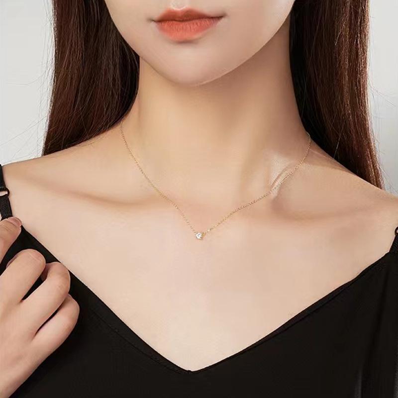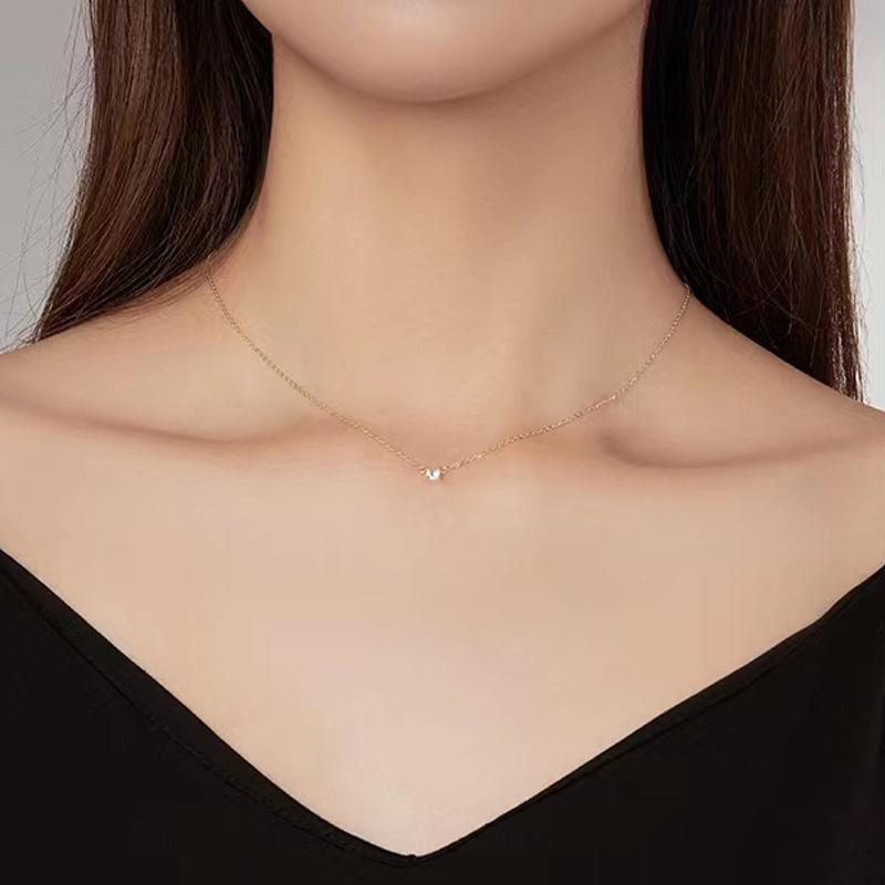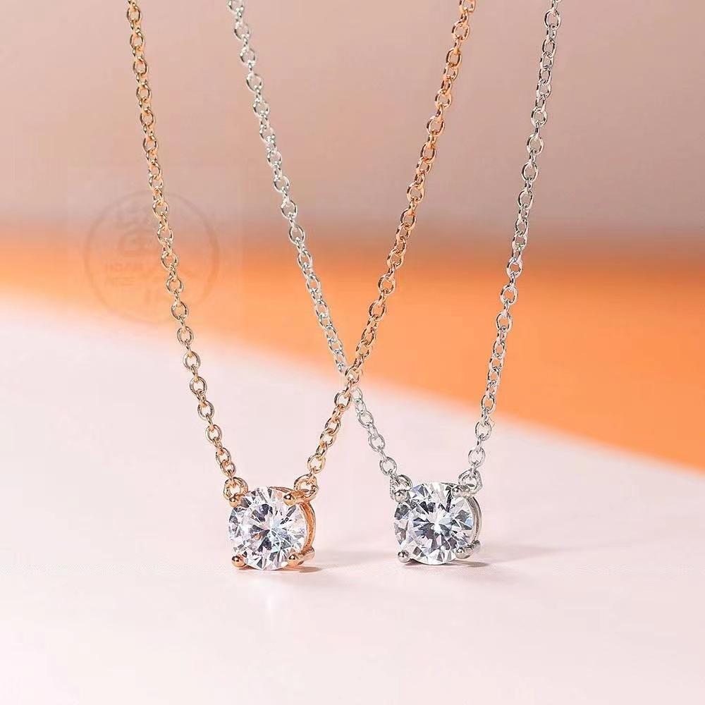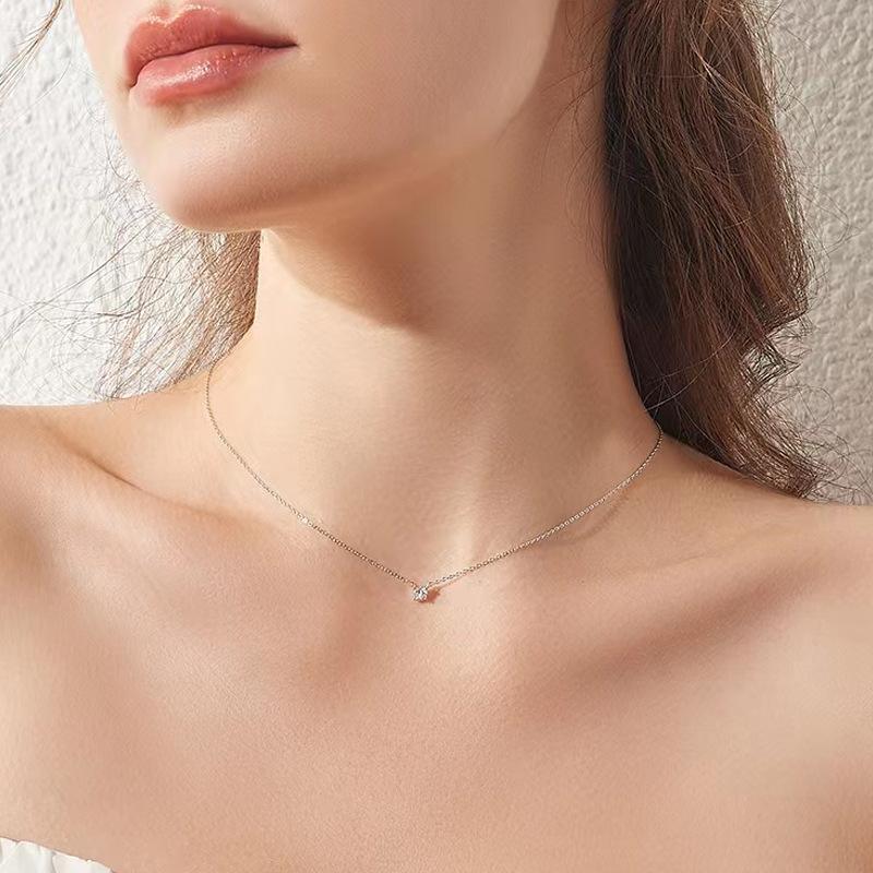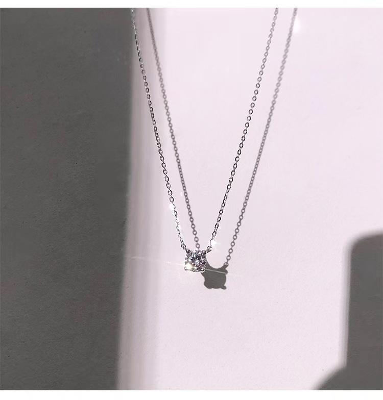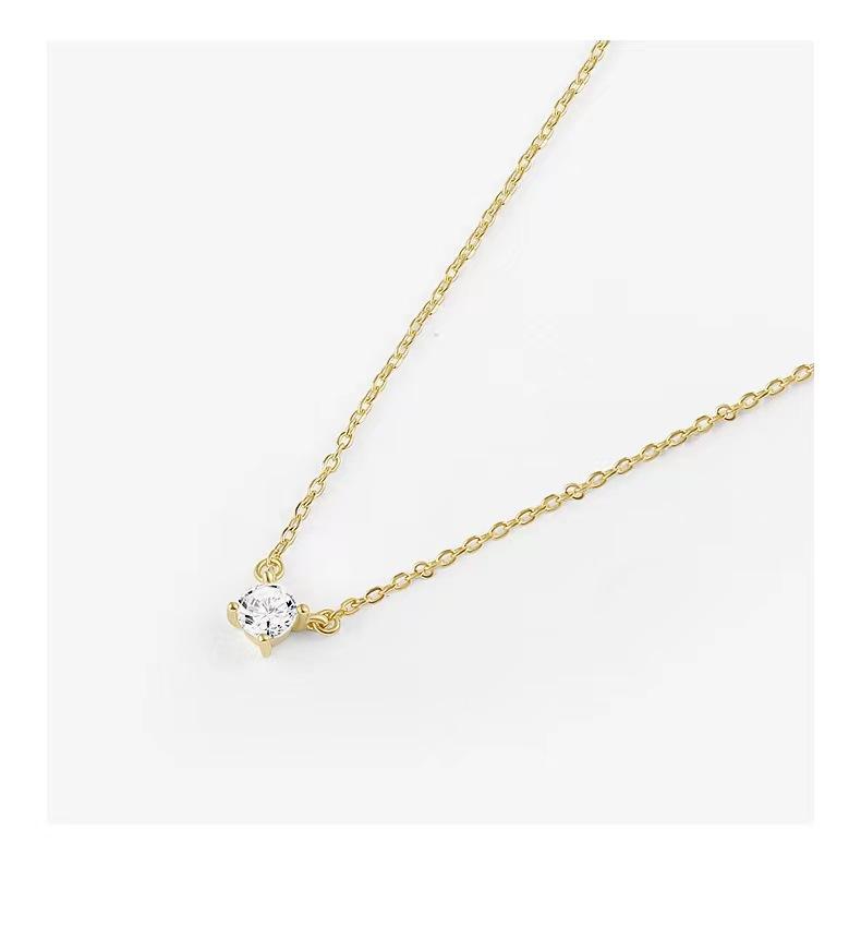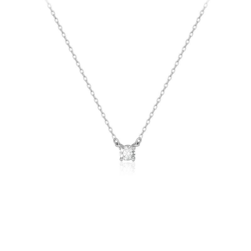 Single zircon necklace-white gold [same style as zhao lusi]