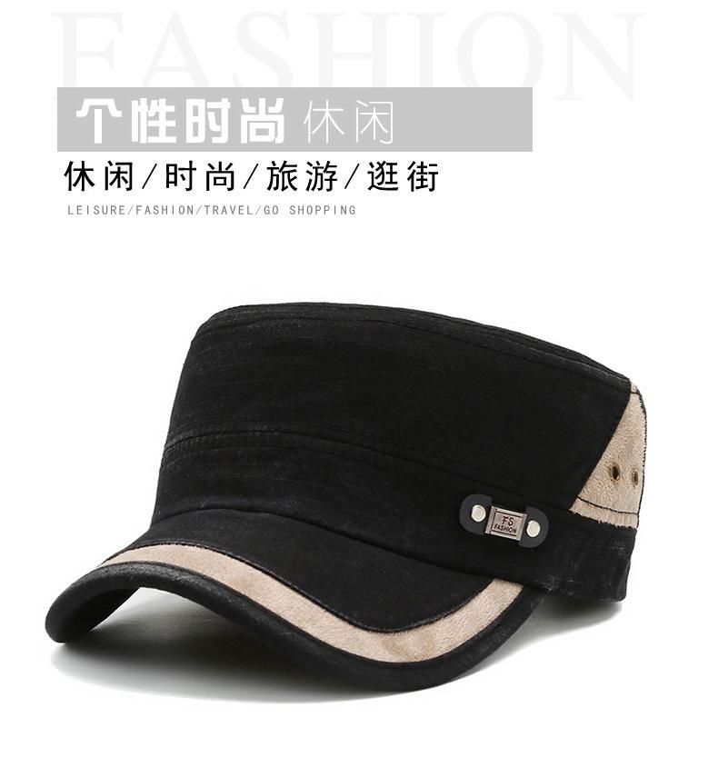 Sombrero de Copa Plana Casual Estilo Coreano para Hombre y Joven Sombrero Militar Primavera y Otoño Casual para Exteriores Sombrero para el Sol Combinable Sombrero de Hombre Ala Corta