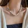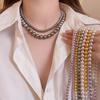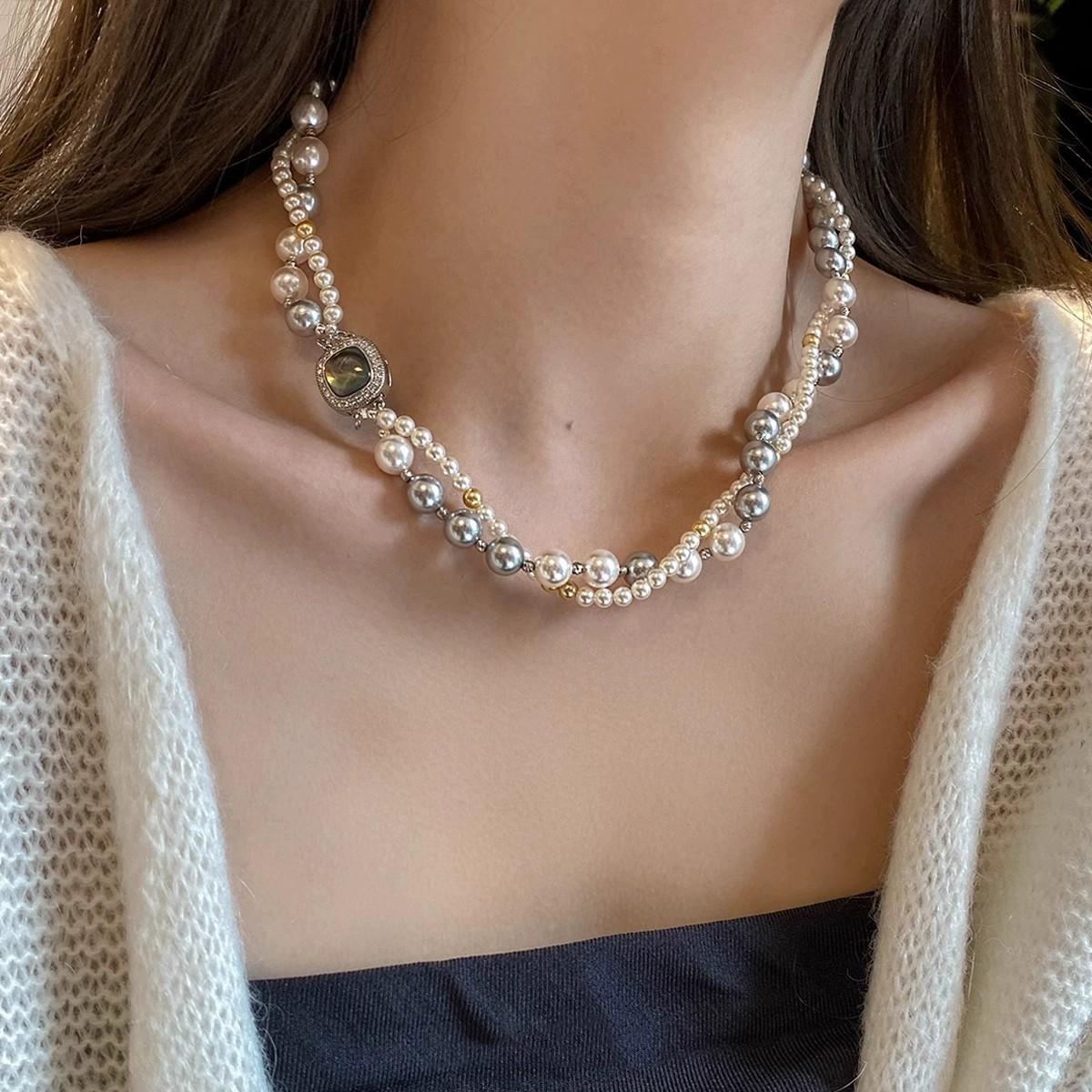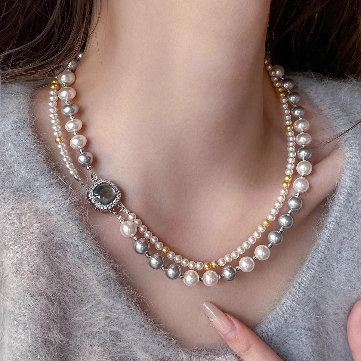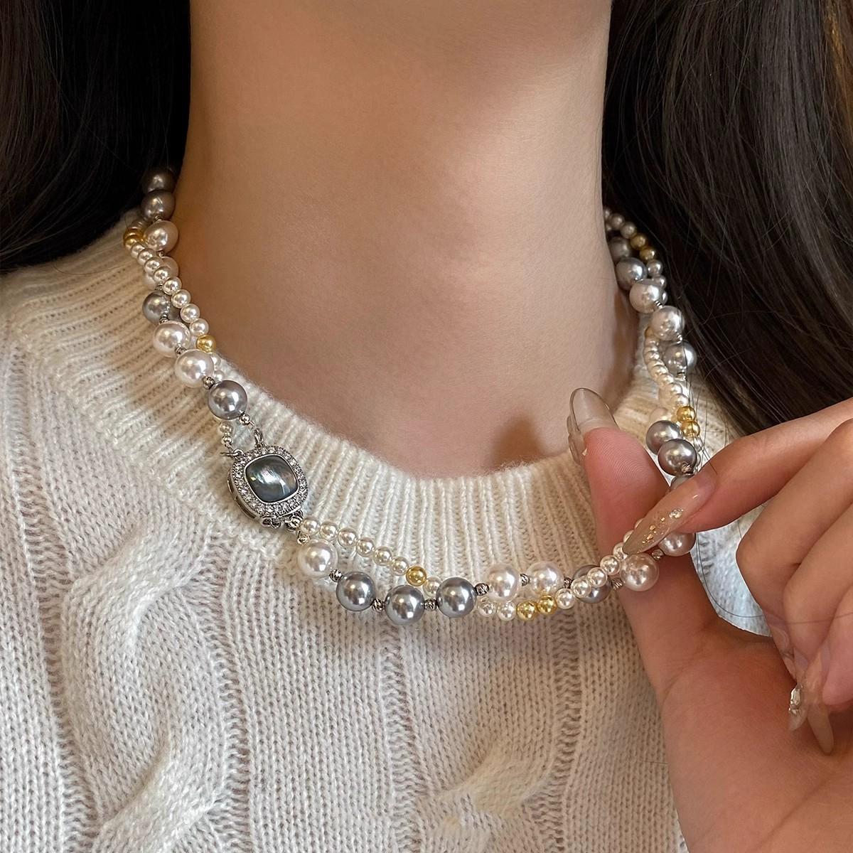 Collar de perlas de cristal Shijia de doble capa y colores mixtos para mujer, estilo palaciego, lujo accesible, moderno y de alta gama, con cadena de clavícula de doble uso.