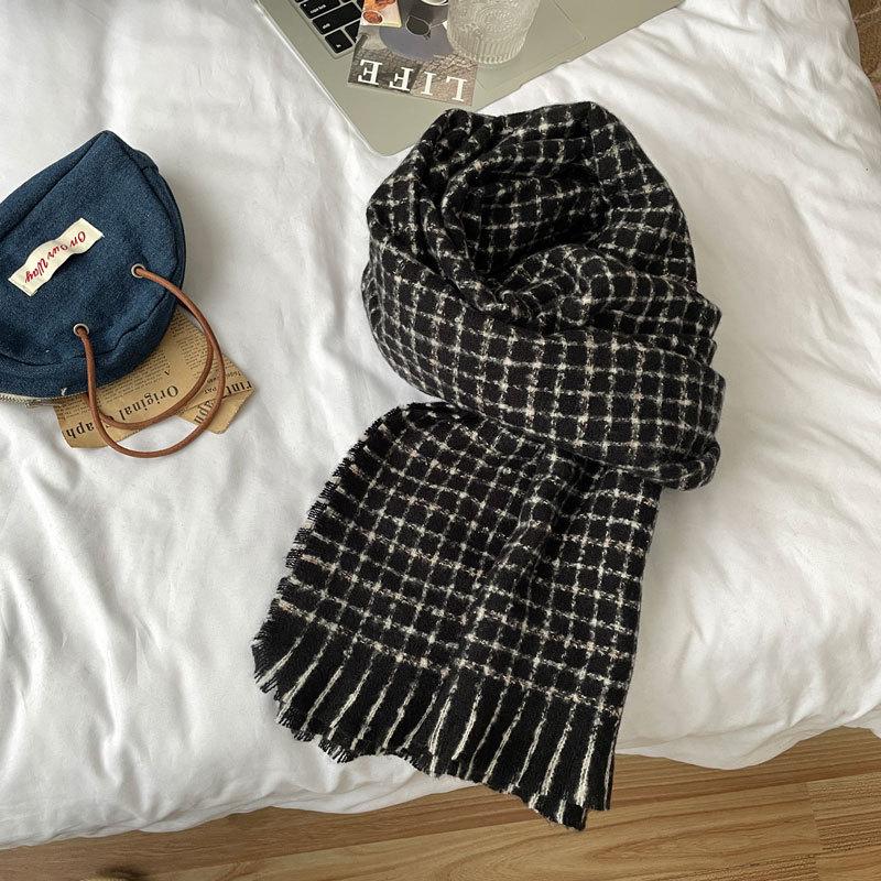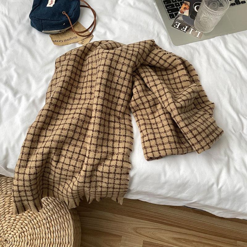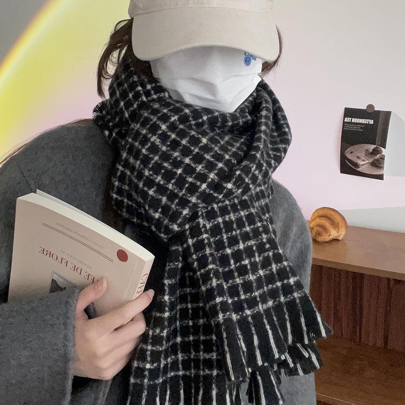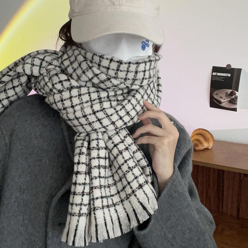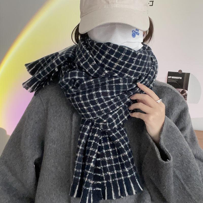 Estilo Academia Estilo Japonés y Coreano Sentido de Alta Gama Popular en Internet Ins Estilo Coreano Bufanda para Mujer Cálida Otoño e Invierno Nueva Bufanda a Cuadros de Bigotes Cortos