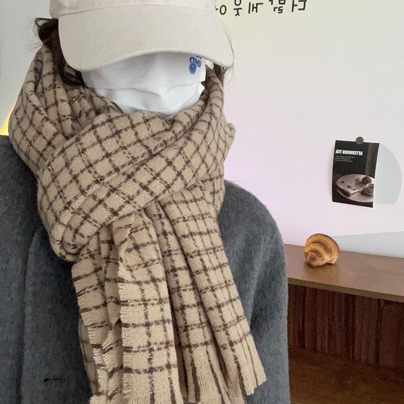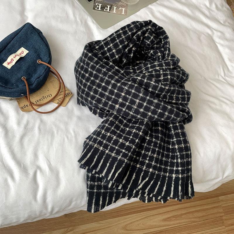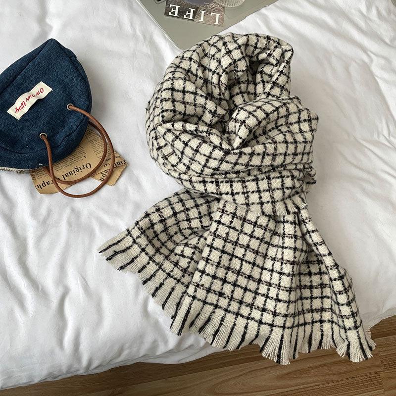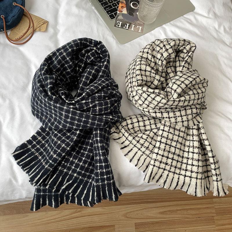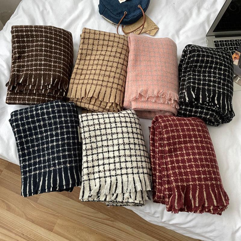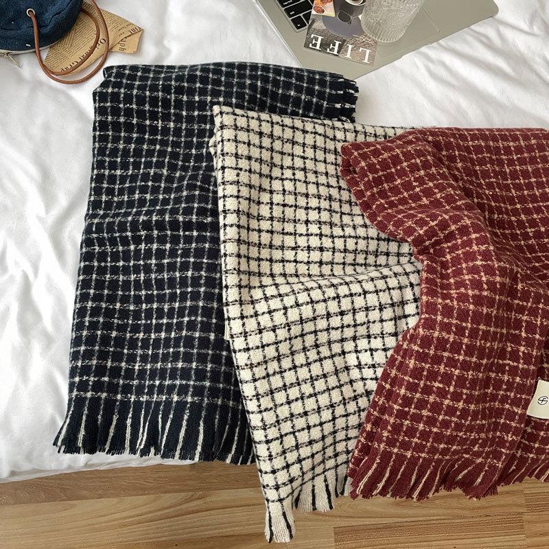 Estilo Academia Estilo Japonés y Coreano Sentido de Alta Gama Popular en Internet Ins Estilo Coreano Bufanda para Mujer Cálida Otoño e Invierno Nueva Bufanda a Cuadros de Bigotes Cortos
