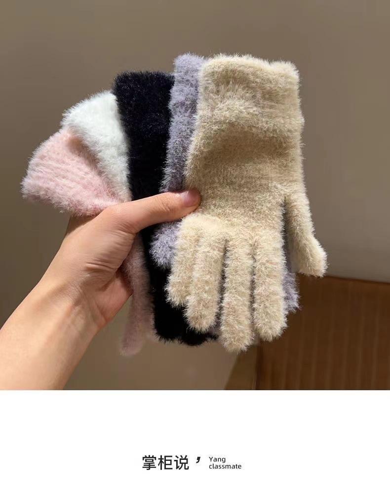 Guantes de Felpa de Visón Imitación Nuevos 2024 para Invierno para Mujer, Ciclismo con Forro Polar, Cálidos y Lindos con Dedos, Guantes a Prueba de Frío