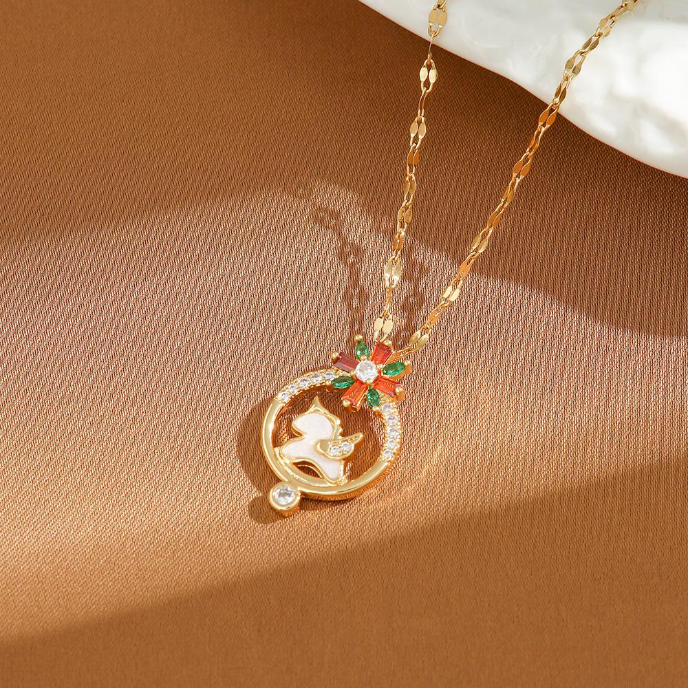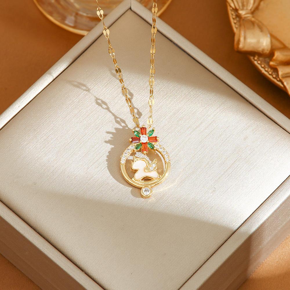 Nuevo Collar Versátil de Circonio Colorido de Primavera y Verano para Mujer, Moderno, Lujo Ligero, Alta Gama, Acero de Titanio Inoxidable con Colgante de Estilo Simple