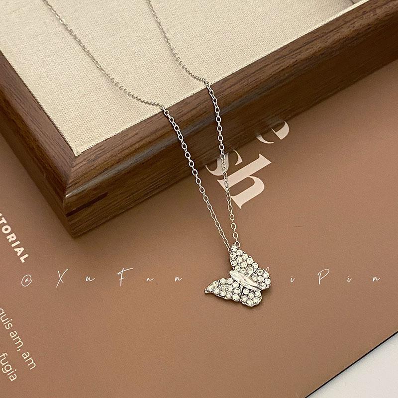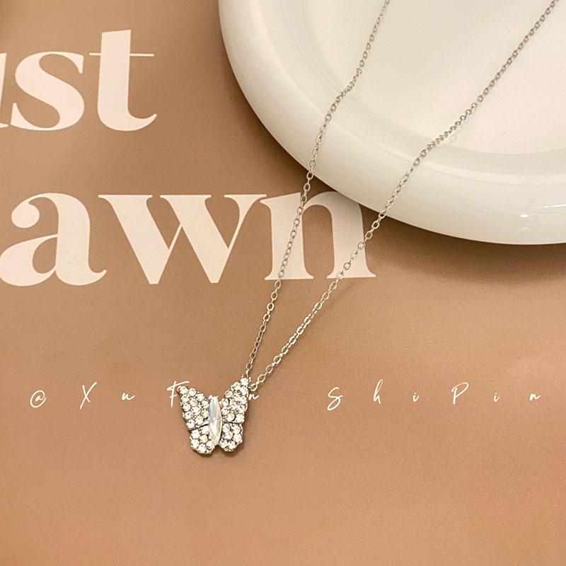 Collar con colgante de mariposa y diamantes de celebridades de Internet para mujer, diseño de nicho de lujo ligero, cadena de clavícula de alta calidad, accesorios