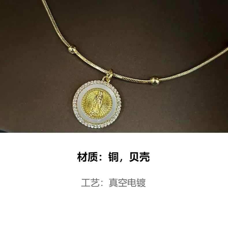 Moda europea y americana de alta gama, lujo de nicho, personalidad, cadena para clavícula, chapado en oro, collar redondo de concha francesa, joyería para mujer