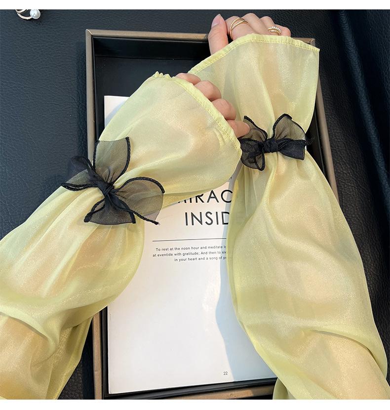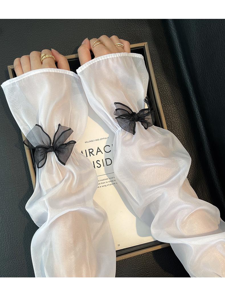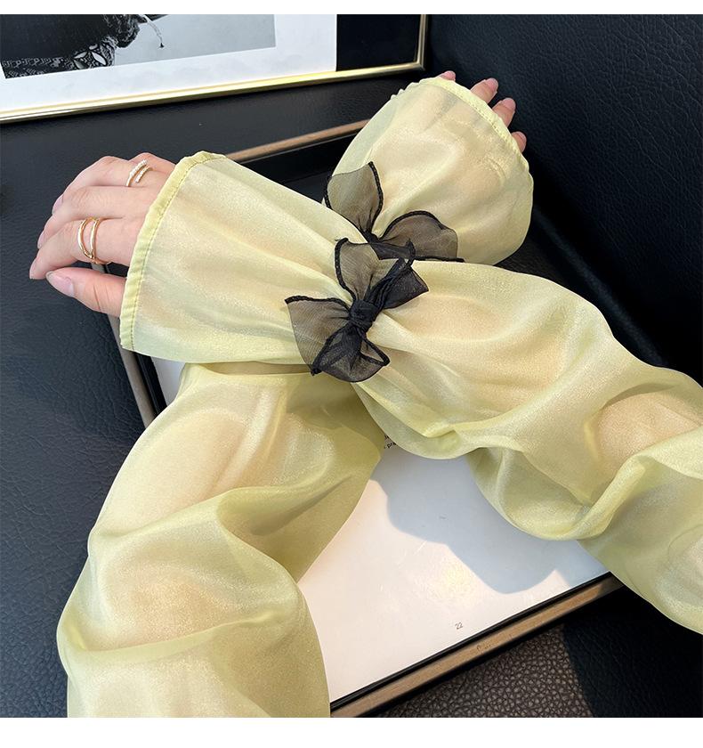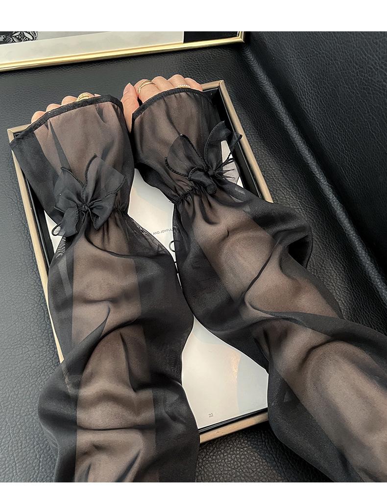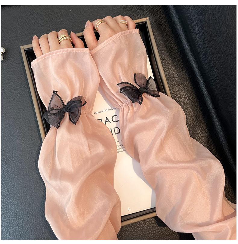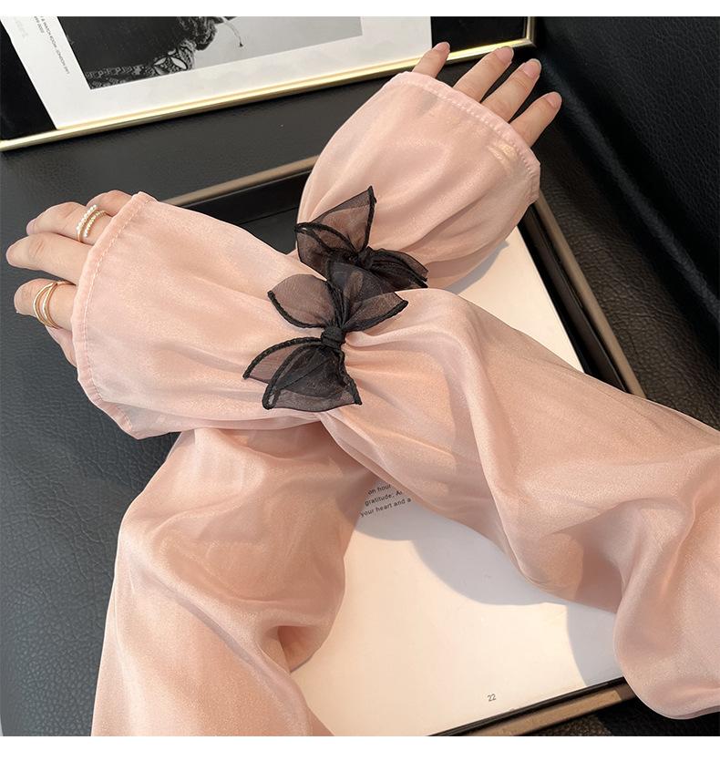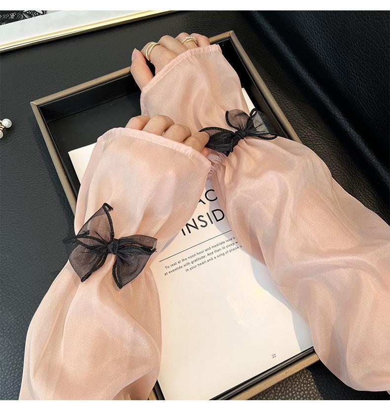 Manga de protección solar de verano para mujer, princesa, color sólido, lazo, dulce, lindo, encaje, malla larga, grande, delgada, manga de hielo
