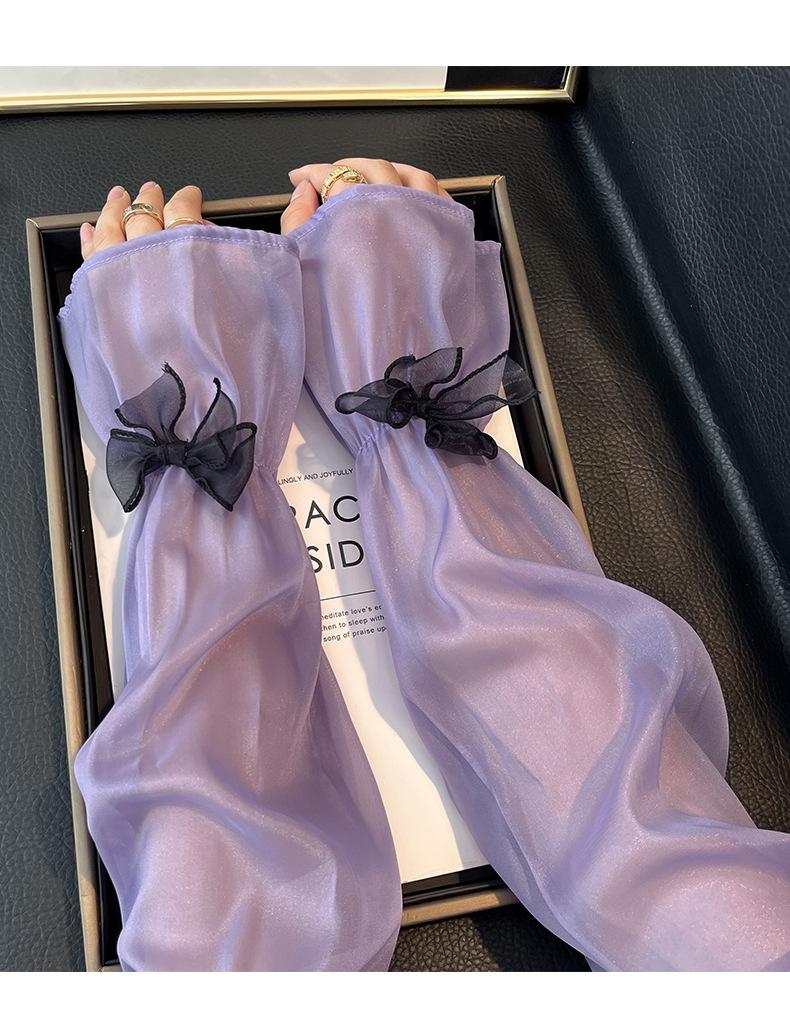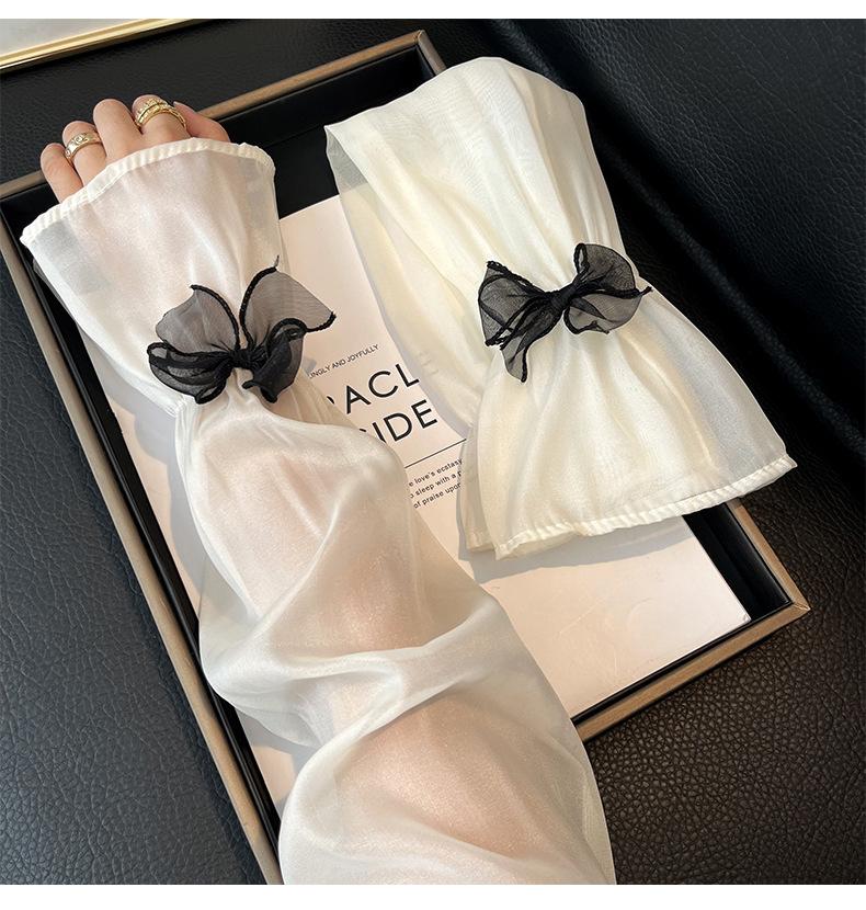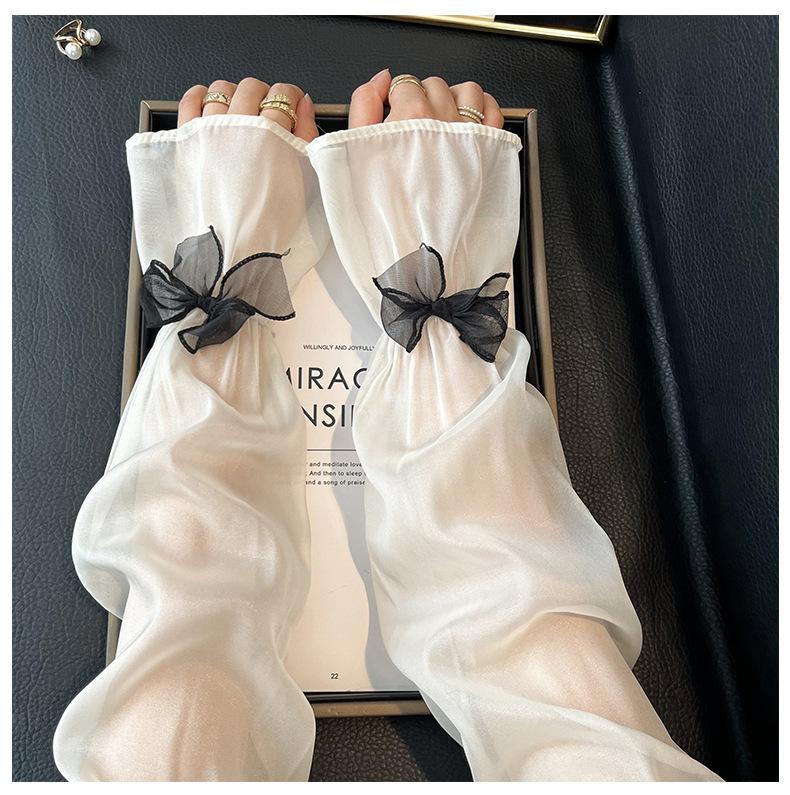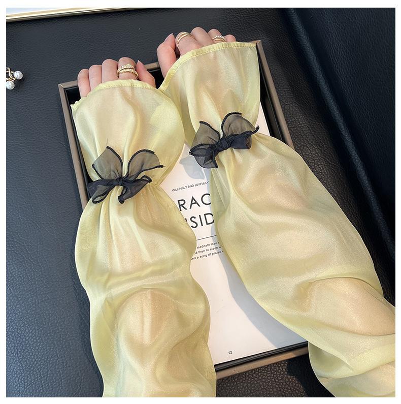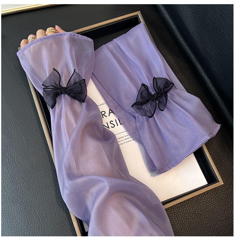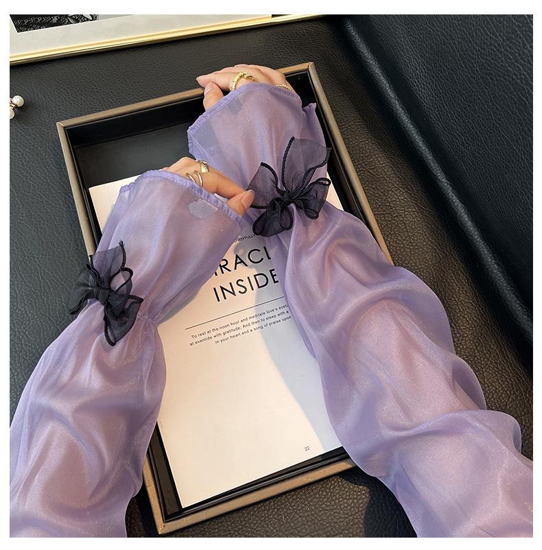 Manga de protección solar de verano para mujer, princesa, color sólido, lazo, dulce, lindo, encaje, malla larga, grande, delgada, manga de hielo
