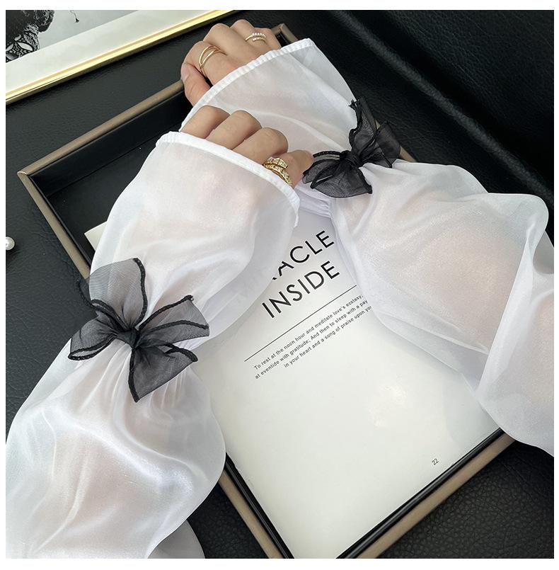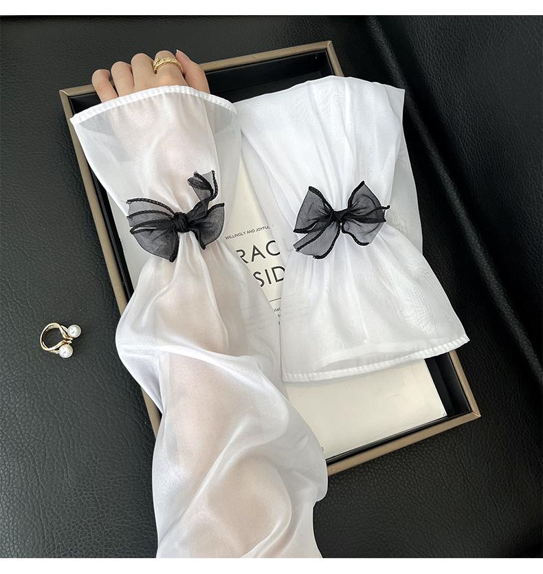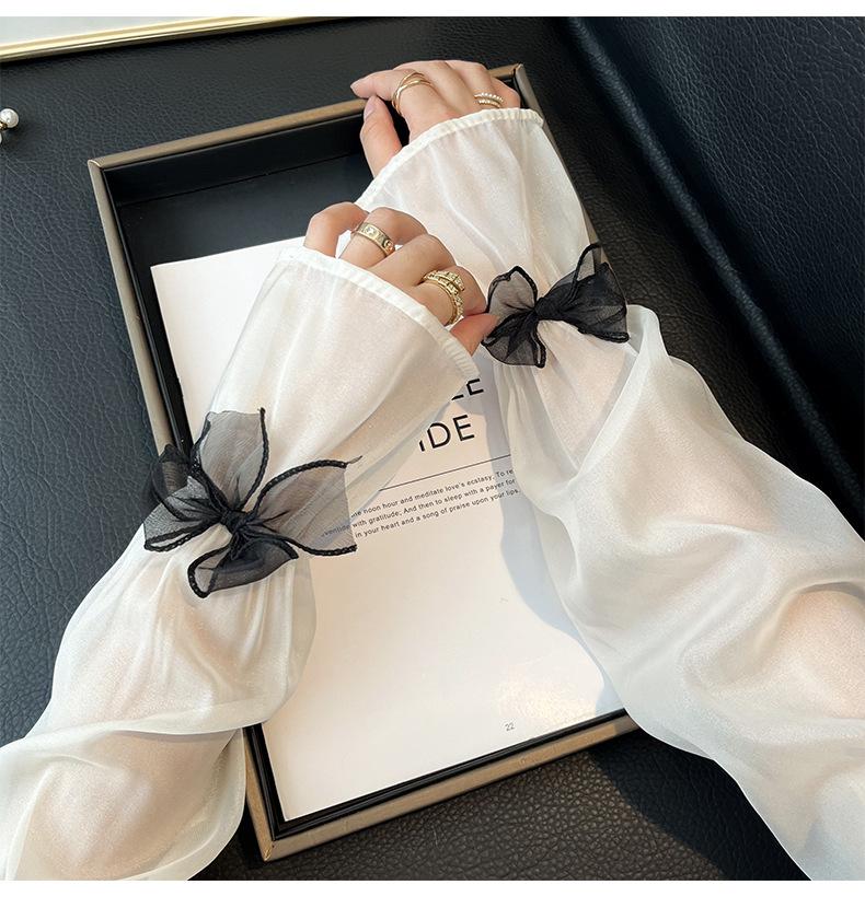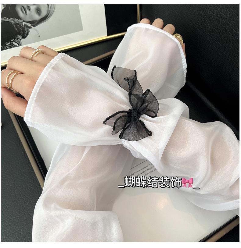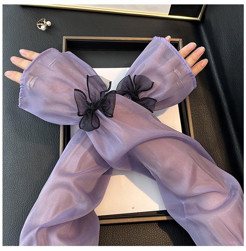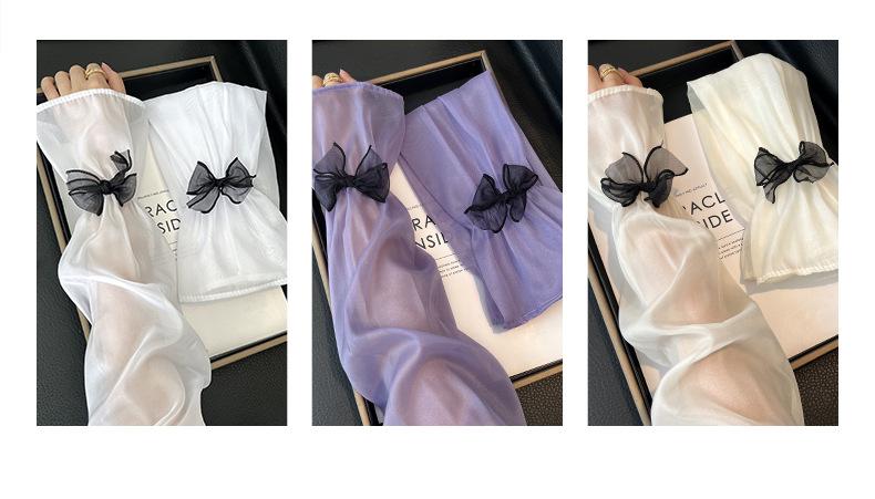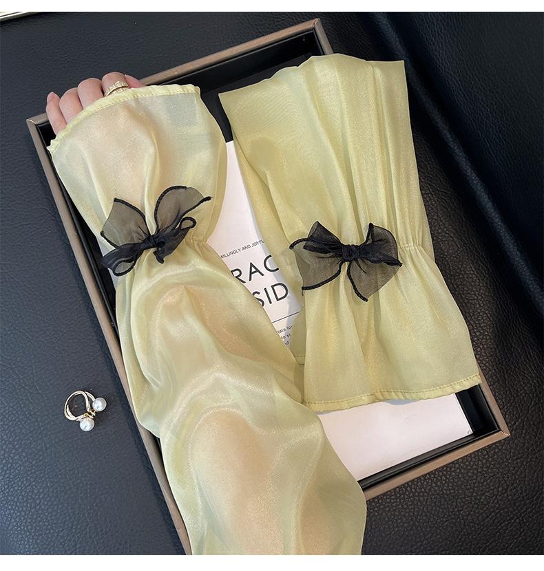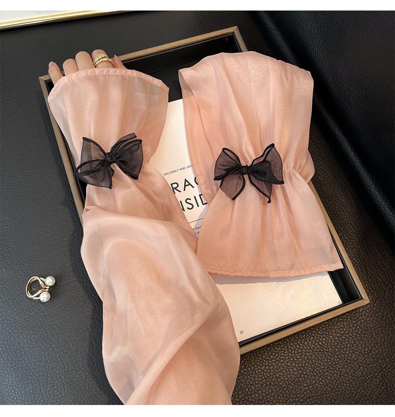Manga de protección solar de verano para mujer, princesa, color sólido, lazo, dulce, lindo, encaje, malla larga, grande, delgada, manga de hielo