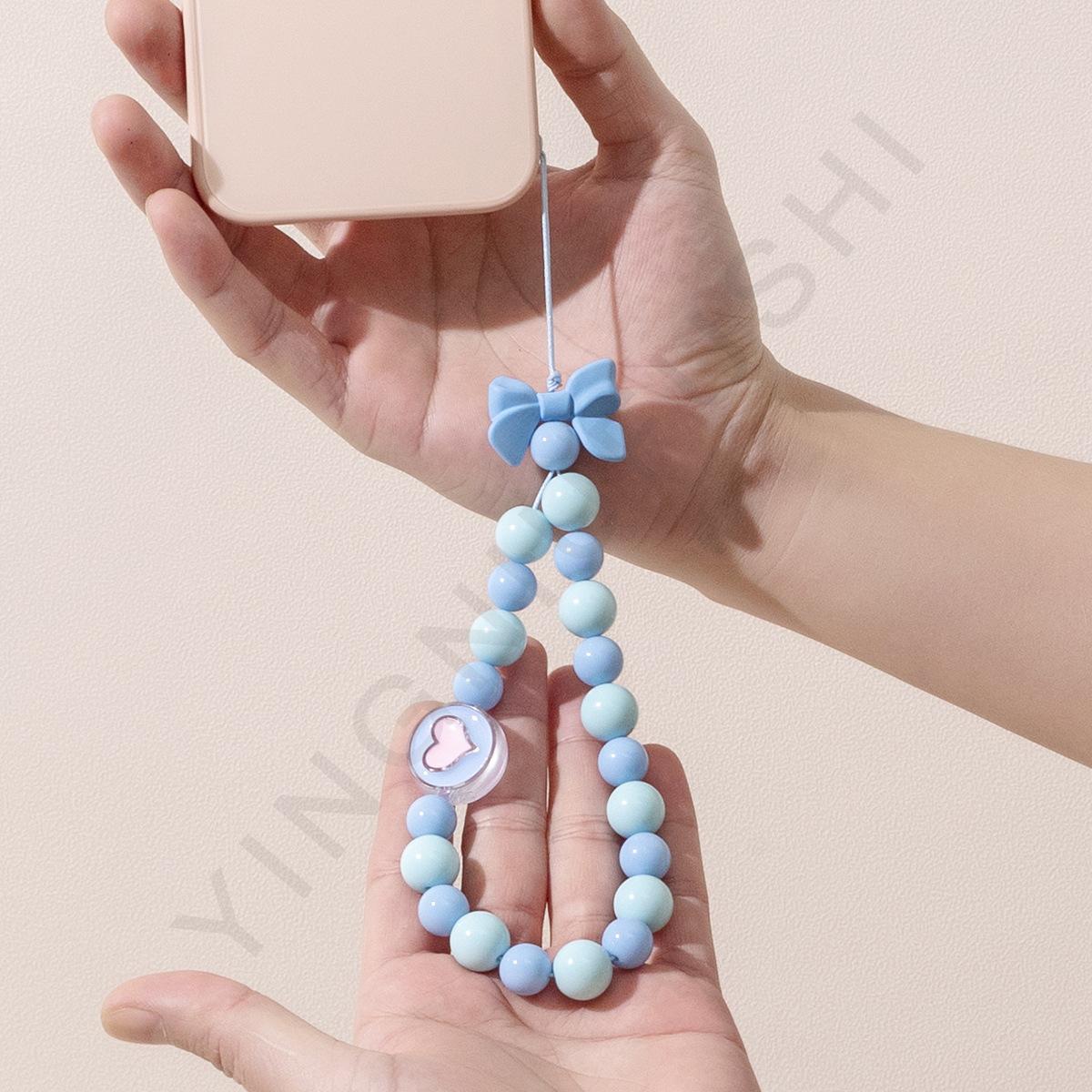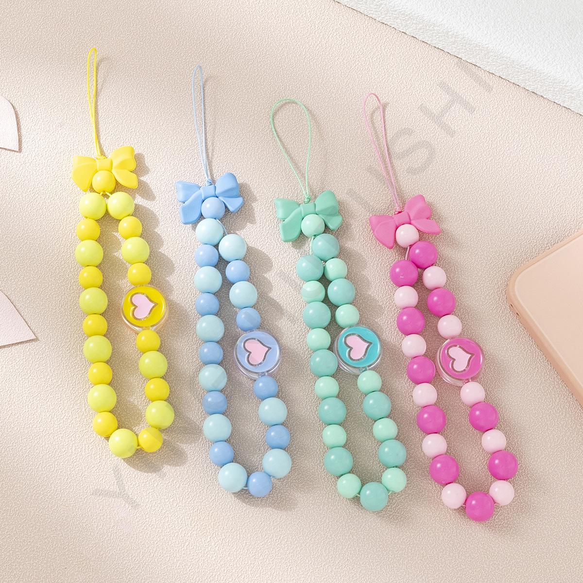 Cadena para teléfono móvil Macaron Net roja con diseño de linda chica, fresca, antipérdida, con cordón y correa para la muñeca.