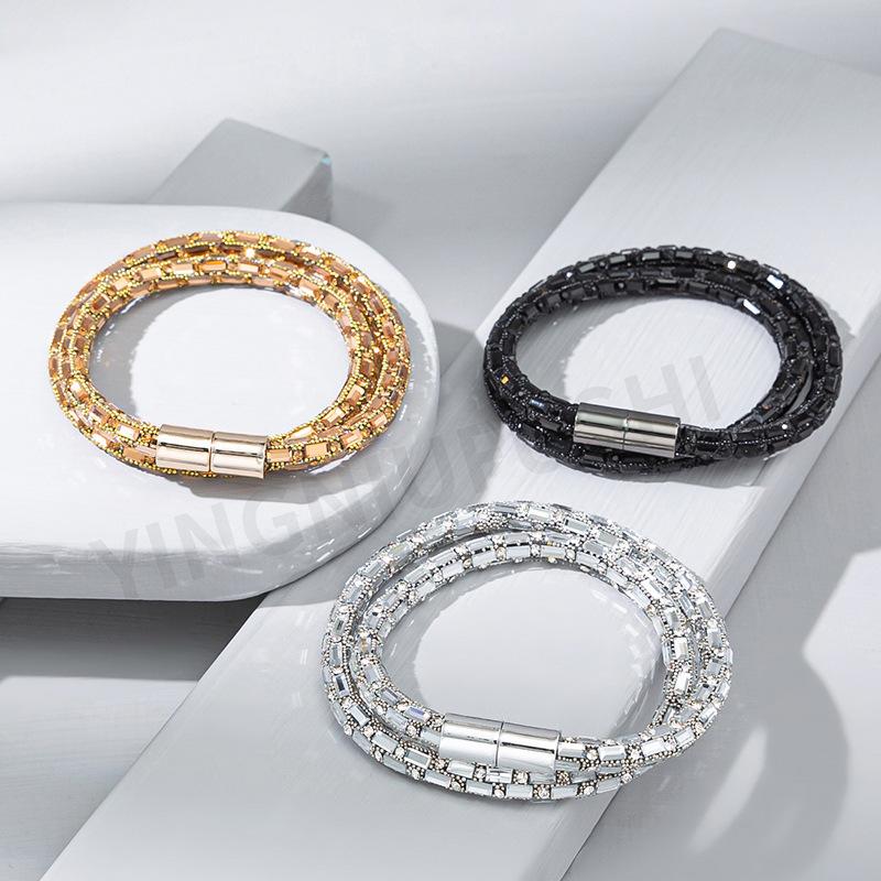 Deseo Amazon nuevo brazalete cuadrado de pedrería de color sólido para mujer Europeo y Americano Flash exquisito fabricante de brazaletes de lujo