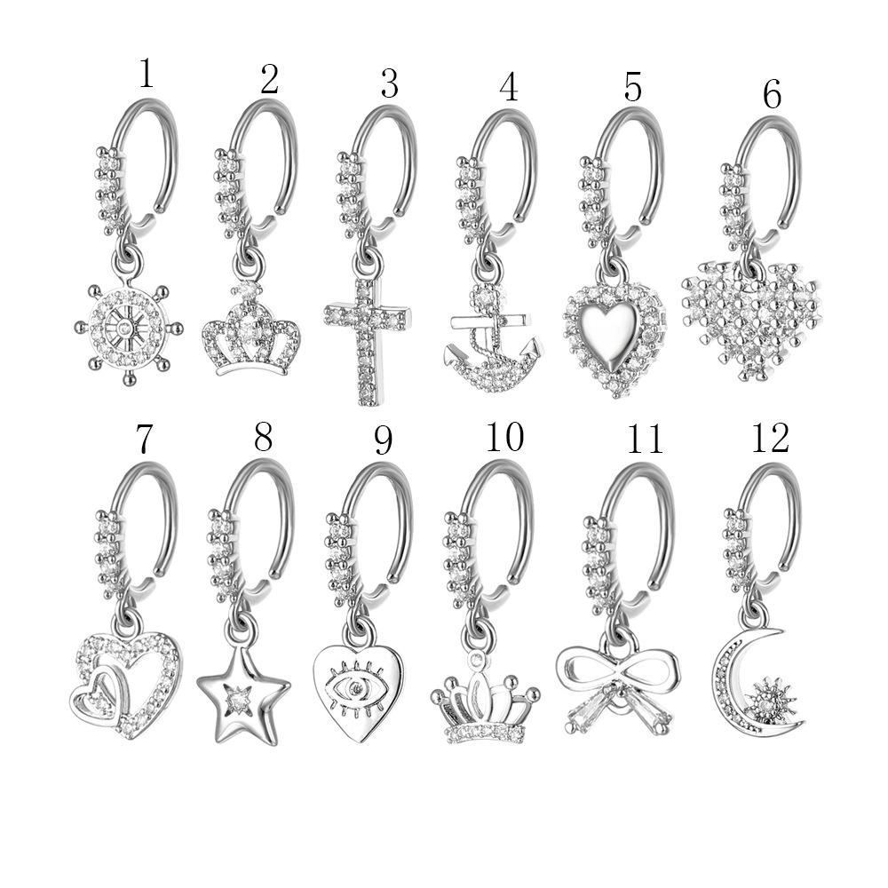 Productos transfronterizos, joyería de Amazon, piercing para la nariz, aro de circonita, mariposa, cruz, pendientes ajustables para la nariz, joyería para la nariz.