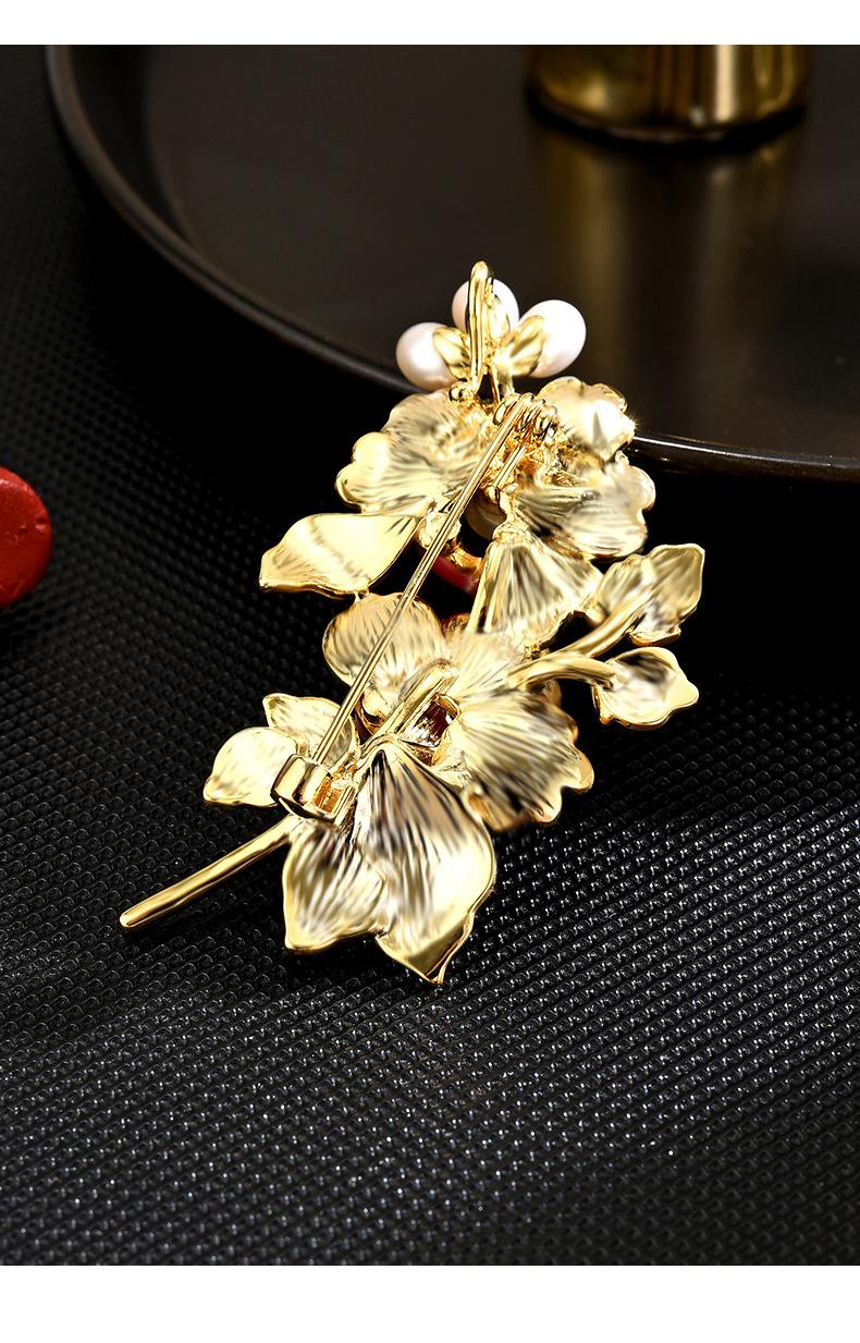 Broche de perlas de alta imitación, moda femenina, ramillete retro con incrustaciones de cobre y circonitas, accesorios de pin versátiles de lujo de alta gama que se pueden personalizar