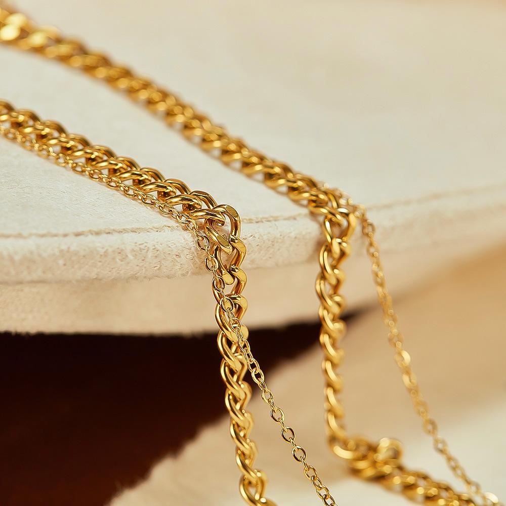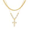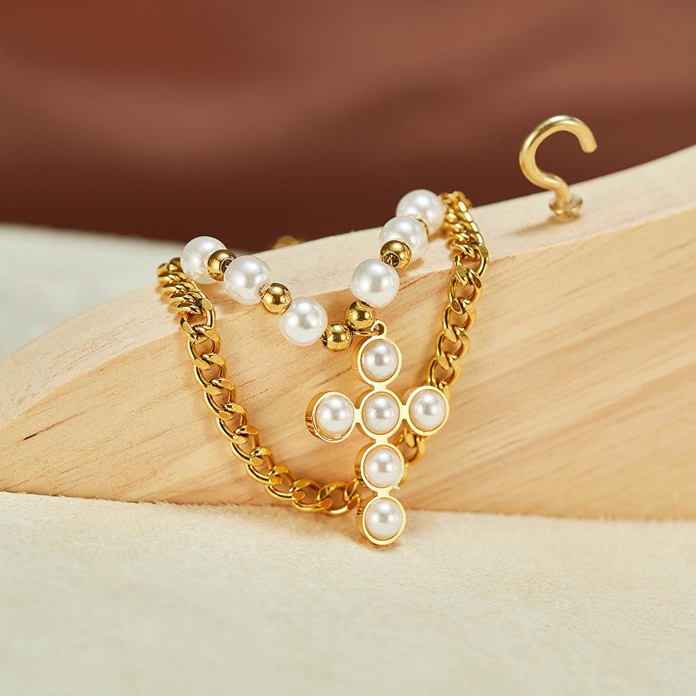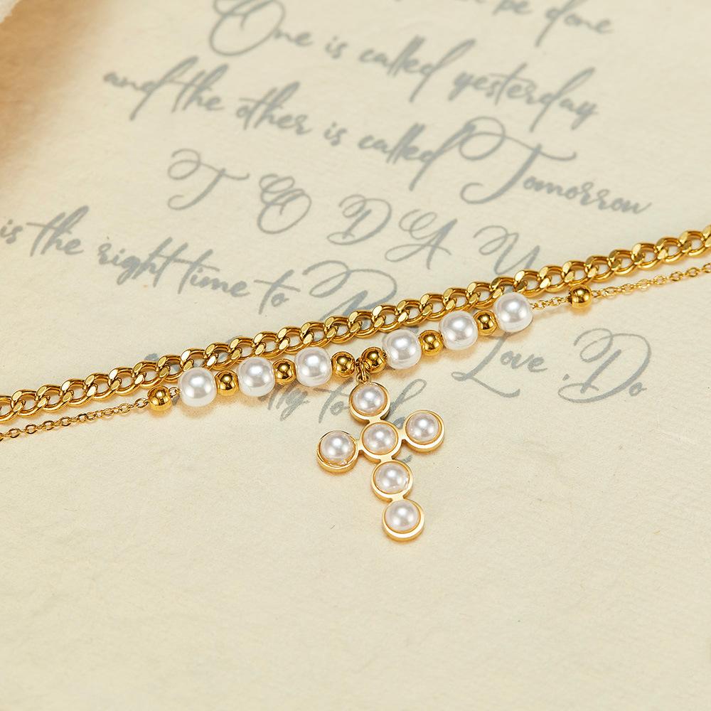Collar de acero inoxidable OPK de estilo transfronterizo europeo y americano para mujer, con cruz de perlas a juego, doble capa superpuesta, cadena de clavícula de acero de titanio.