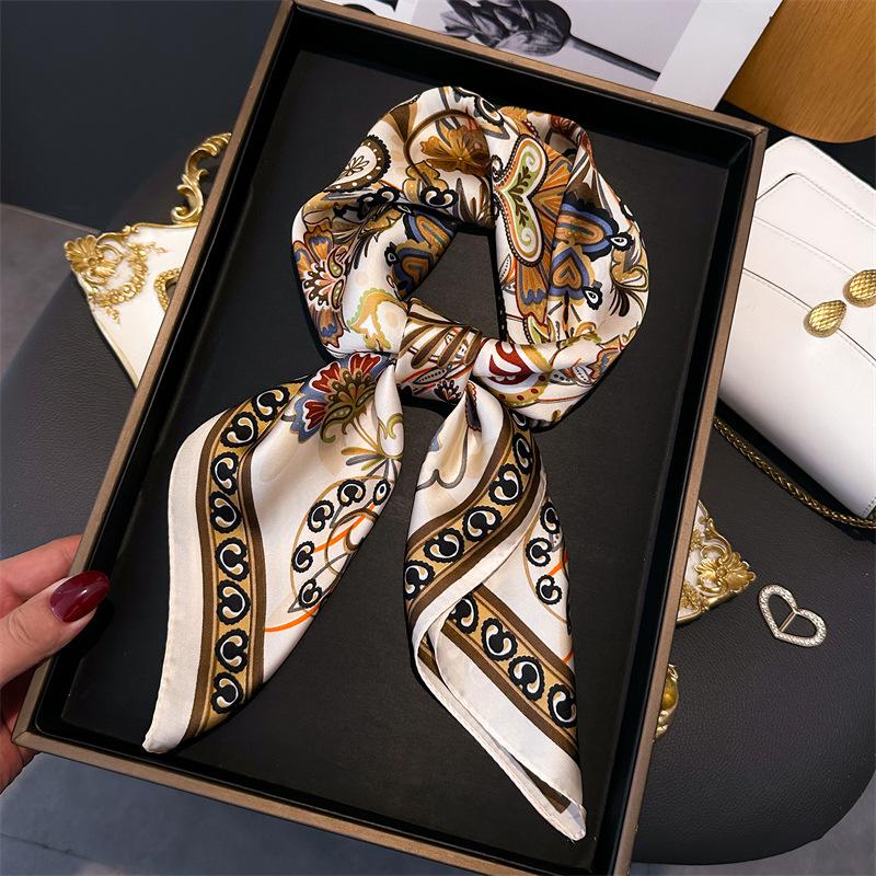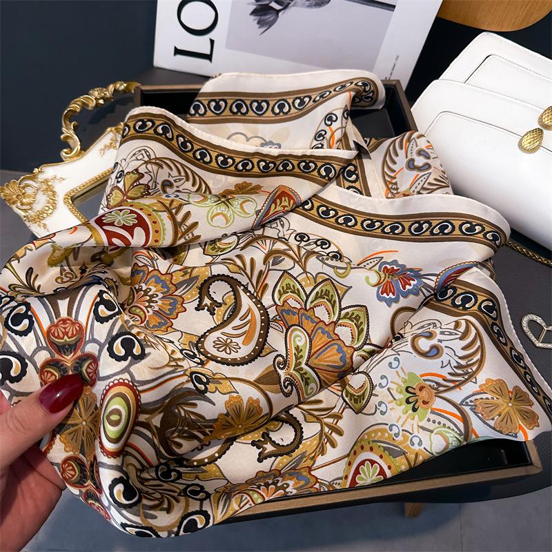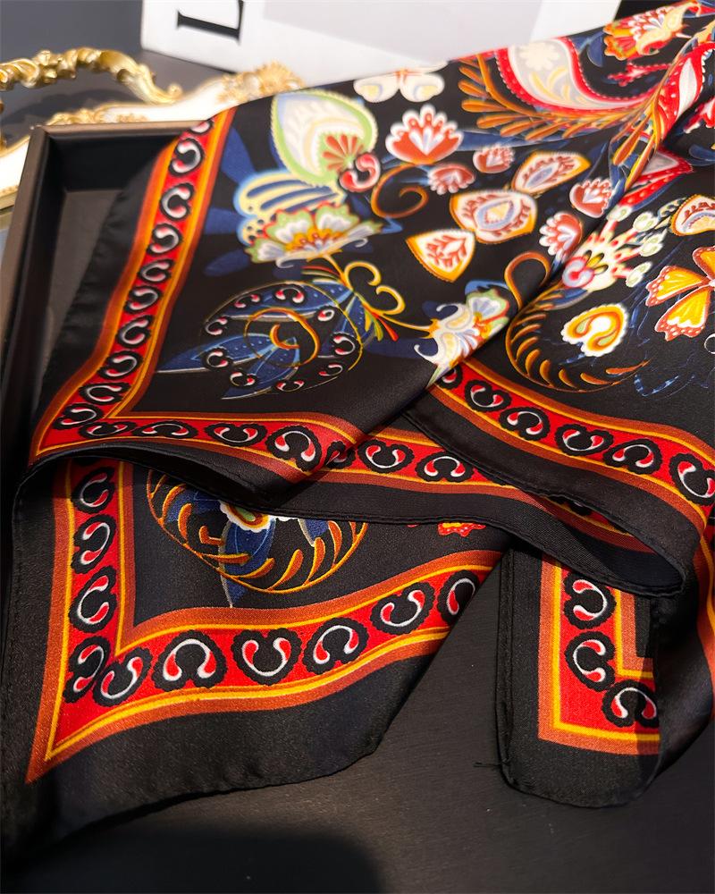 Bufanda de seda cuadrada pequeña de estilo étnico retro para mujer, bufanda de primavera y verano, bufanda estampada con protección para el cuello, bufanda profesional