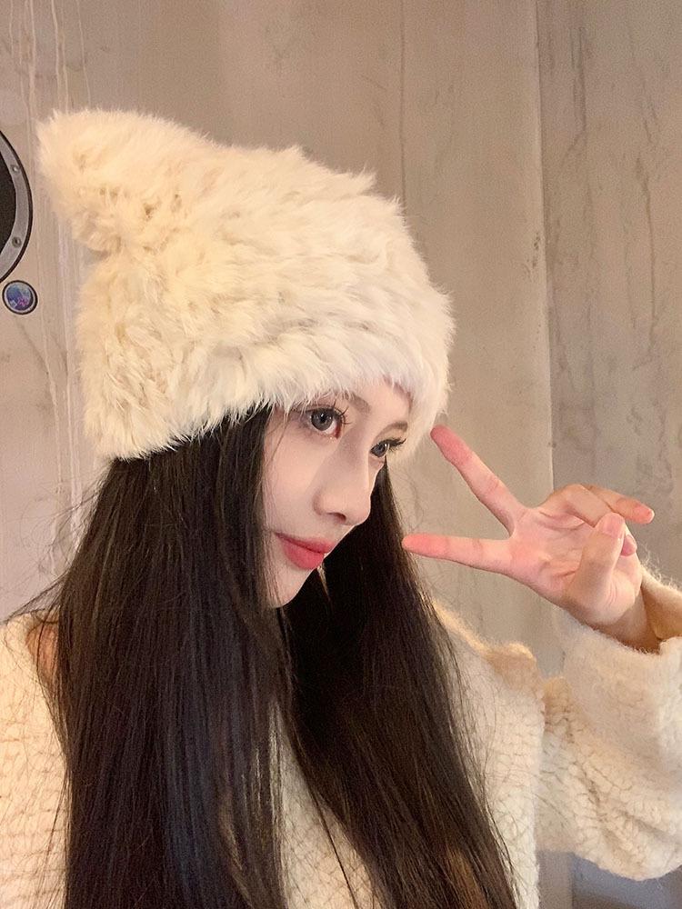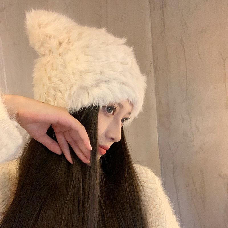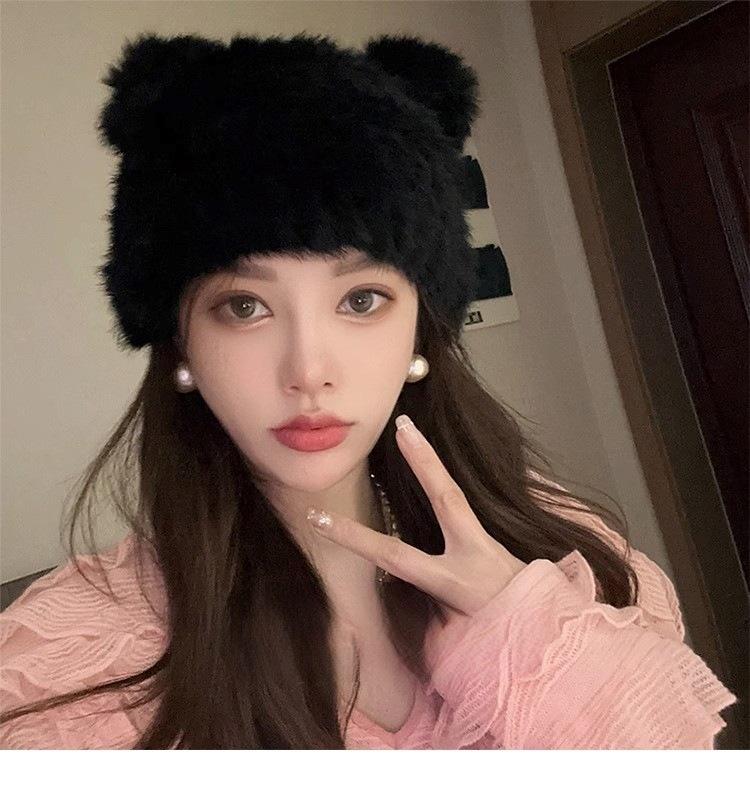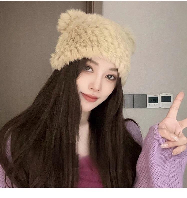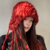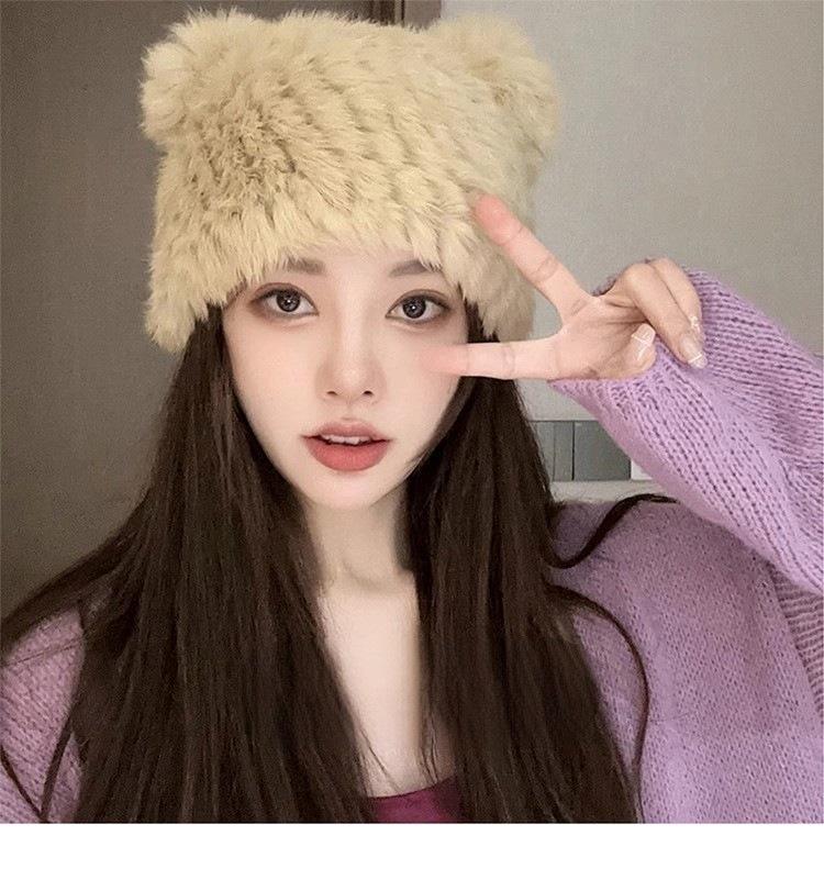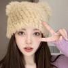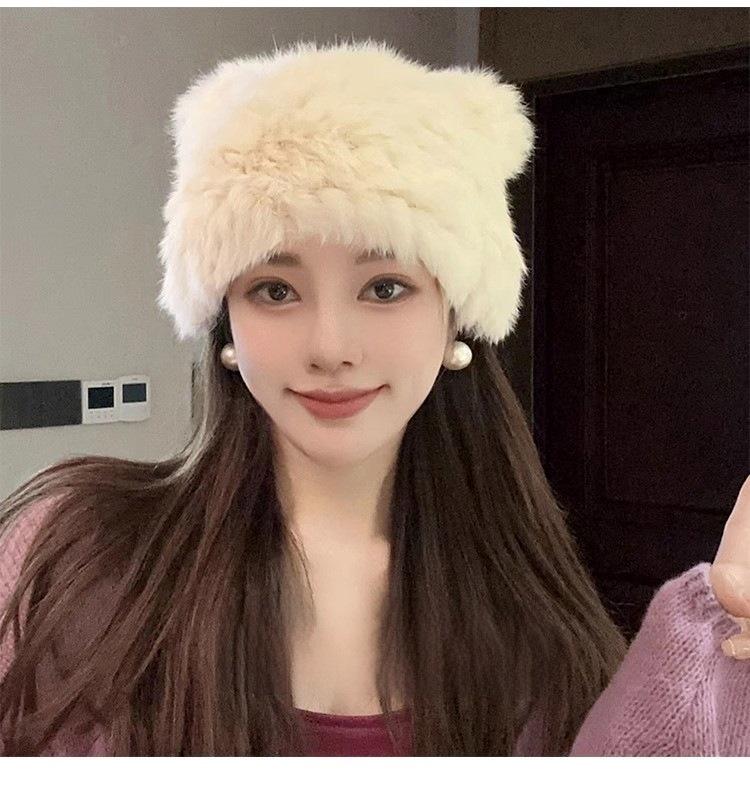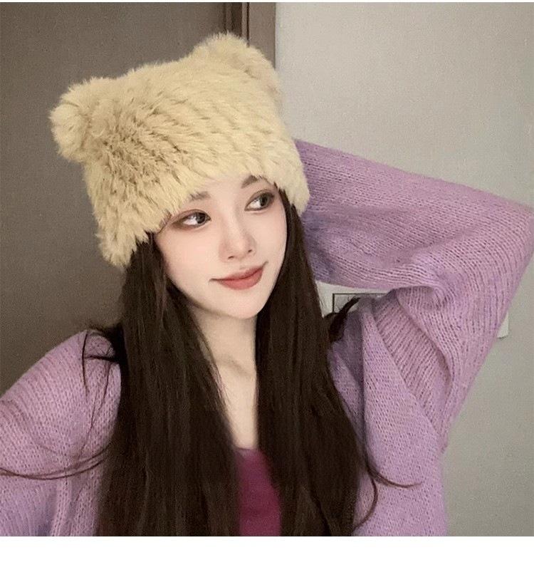 Sombrero de Orejeras de Piel de Conejo Real para Mujer Invierno Sombrero de Lana Tejido a Mano Espesado a Prueba de Frío y Cálido Protección para las Orejas Sombrero de Piel de Felpa
