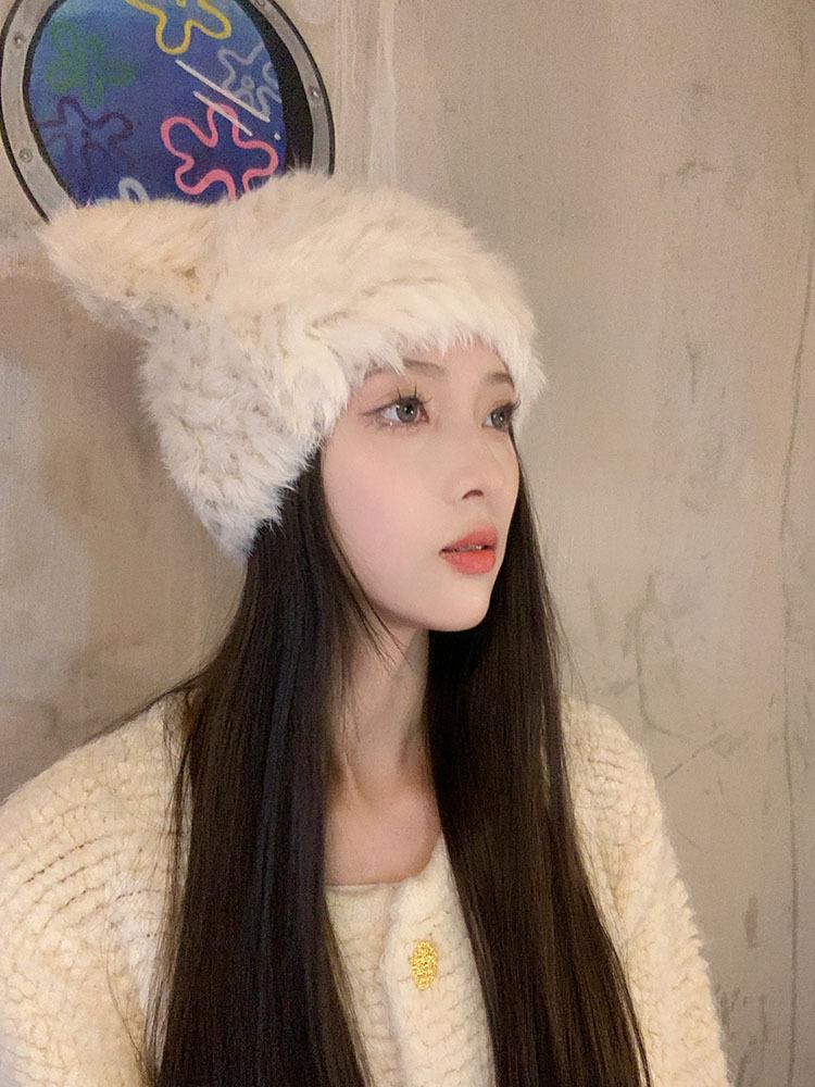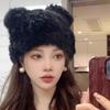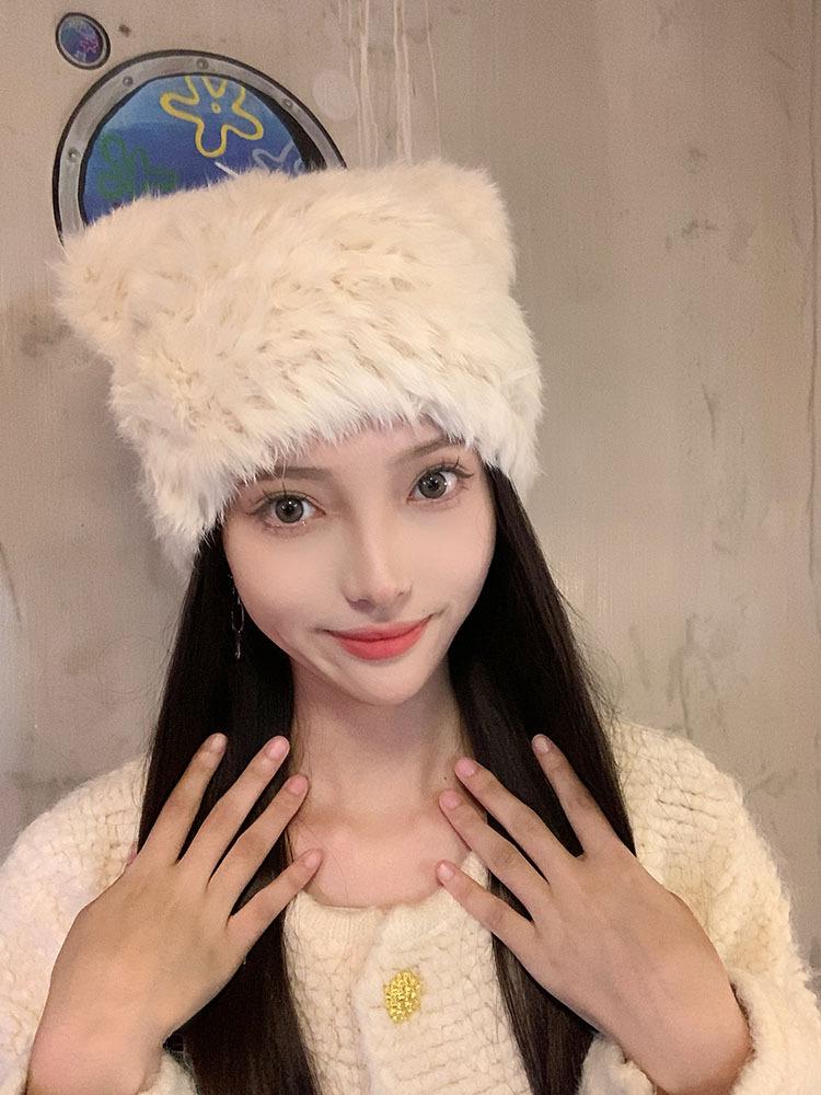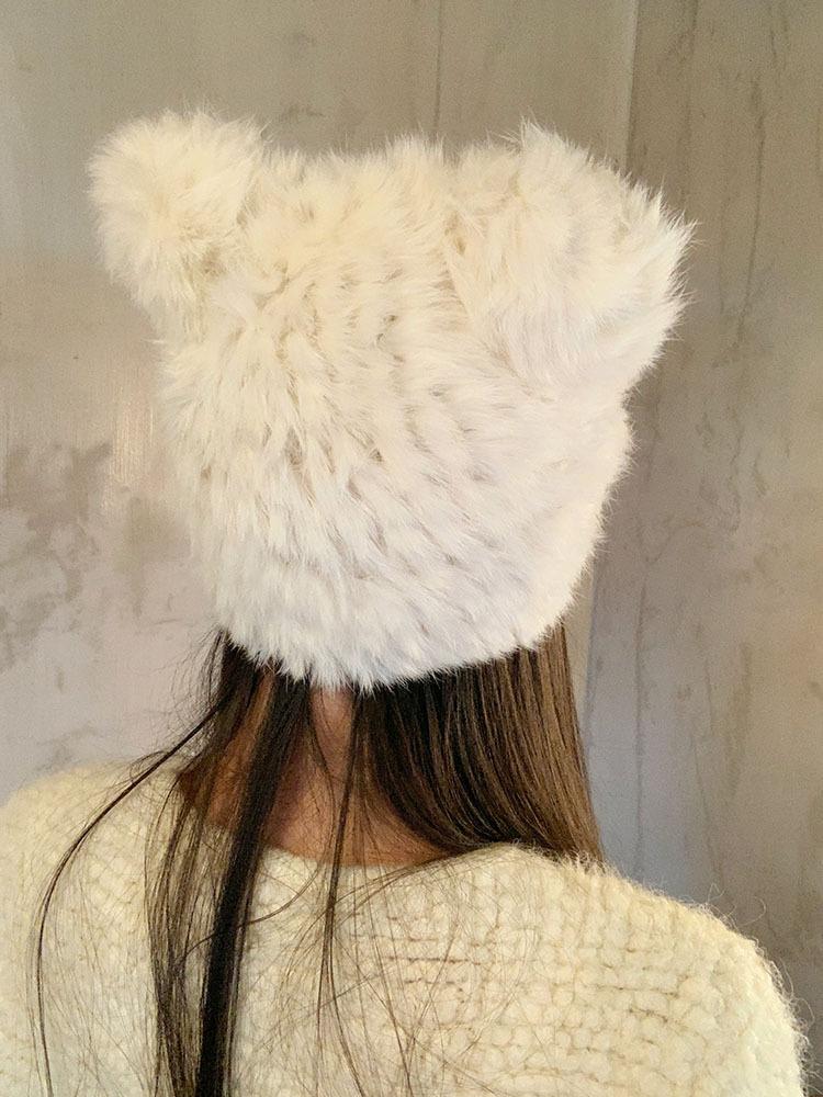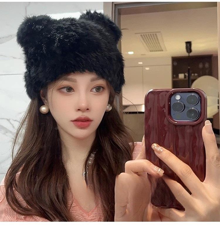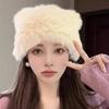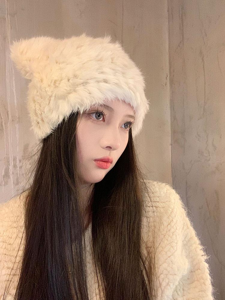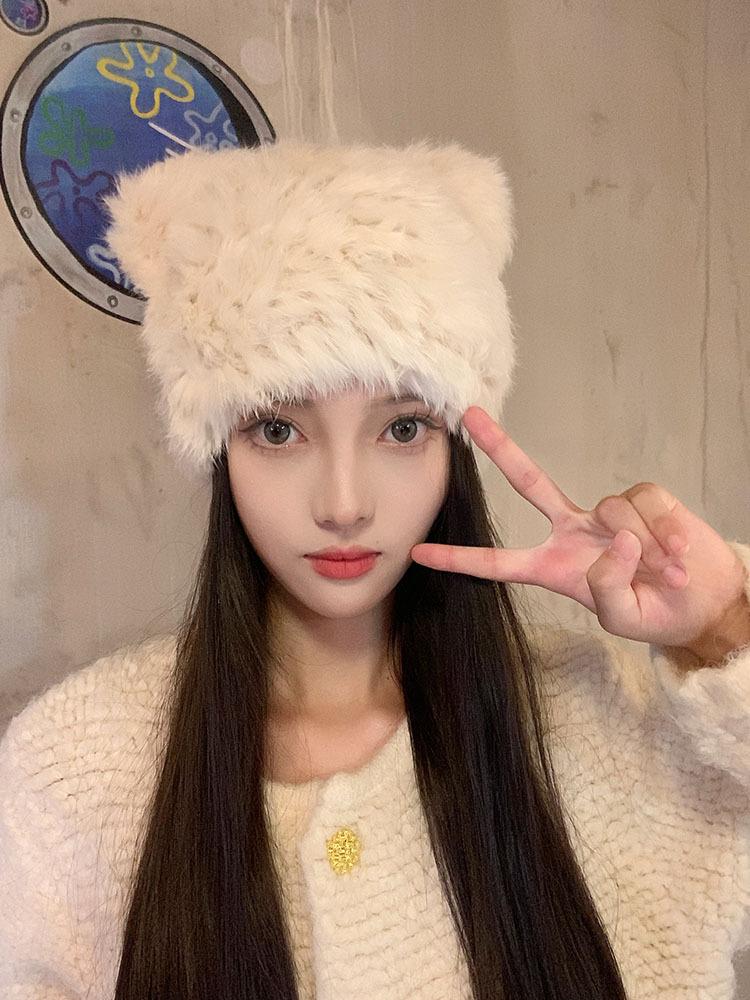 Sombrero de Orejeras de Piel de Conejo Real para Mujer Invierno Sombrero de Lana Tejido a Mano Espesado a Prueba de Frío y Cálido Protección para las Orejas Sombrero de Piel de Felpa