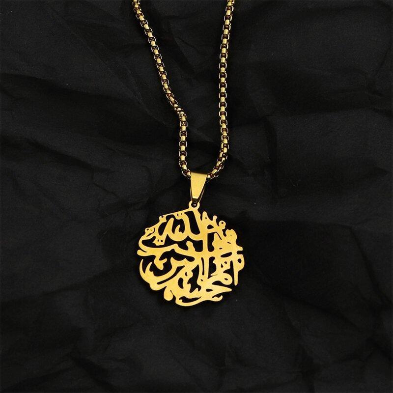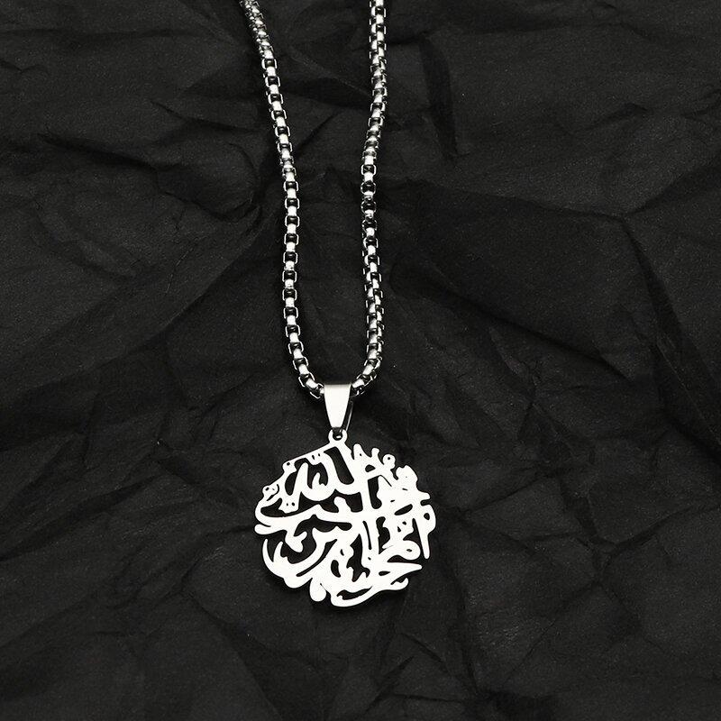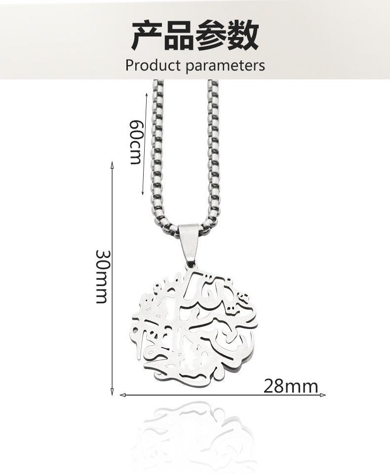 Collar con colgante de acero inoxidable con forma de árbol de la vida, estilo retro francés, redondo, con texto hueco, de gran venta transfronteriza entre Europa y América.