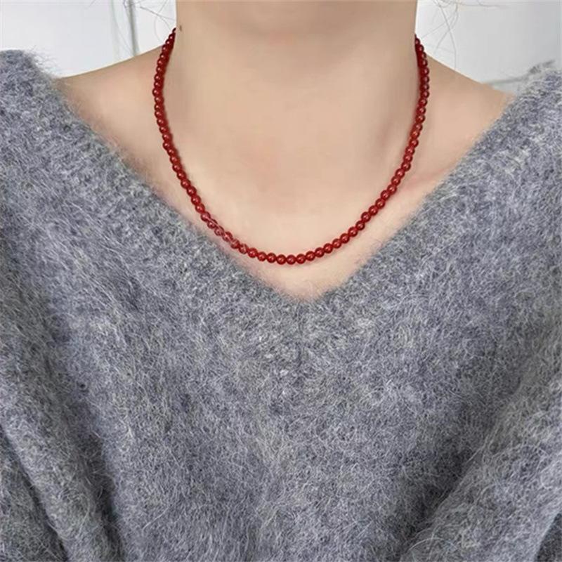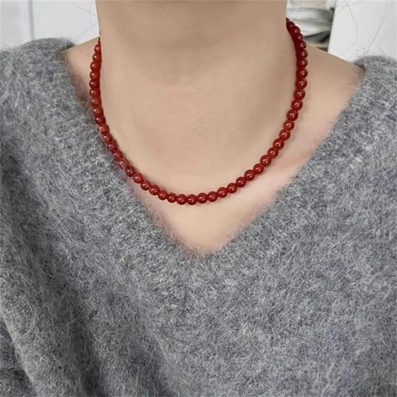 Compra Collar de Cuentas de Ágata Roja Natural, Cadena para Clavícula Estilo Nuevo Estilo Chino, Collar de Gama Alta Estilo Nacional, Hecho a Mano para Mujeres al por mayor en Joom.pro
