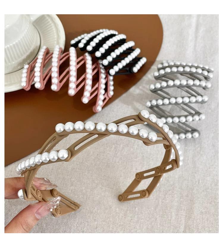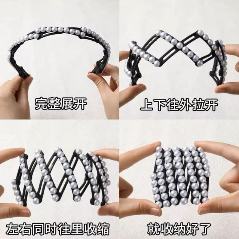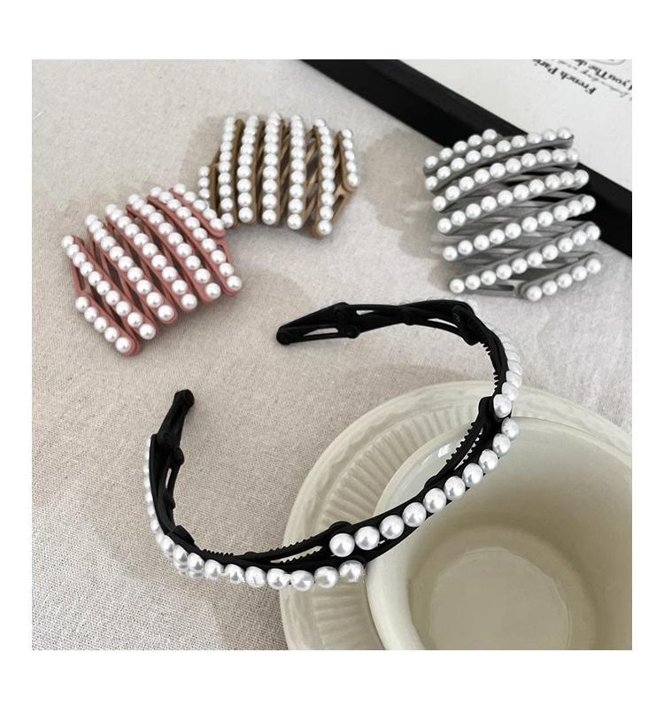 Diadema plegable de perlas para mujer, accesorio para el cabello que combina con todo, ideal para el verano, para lavarse la cara y para la cabeza, con sello de presión superior de alta presión craneal.