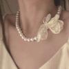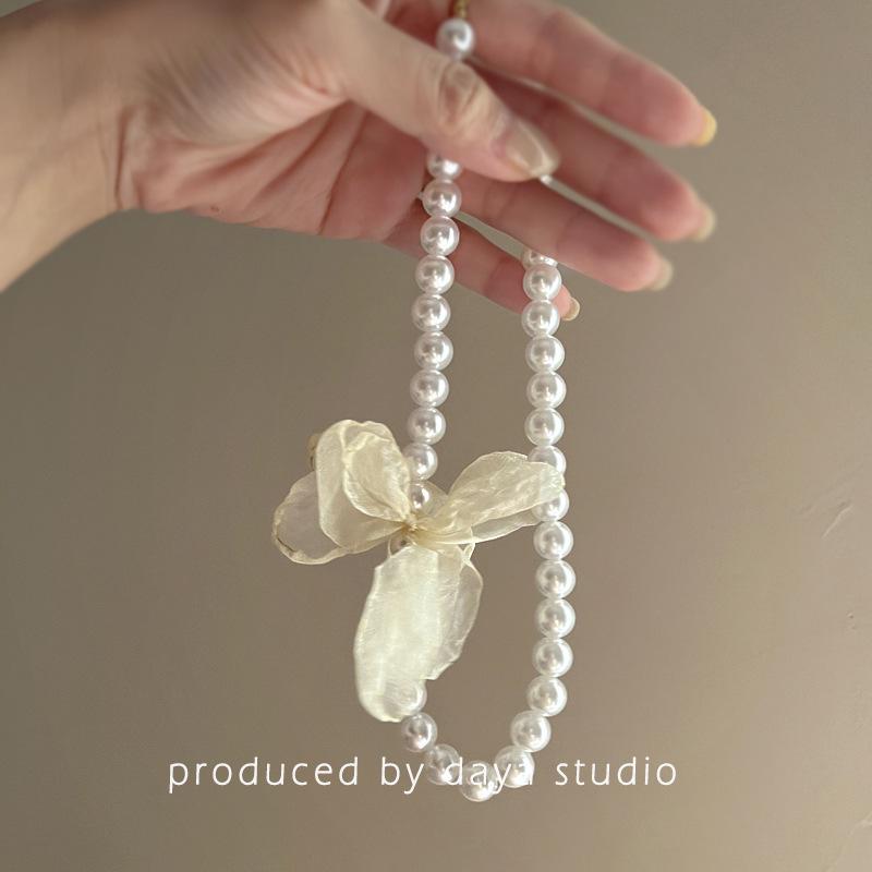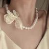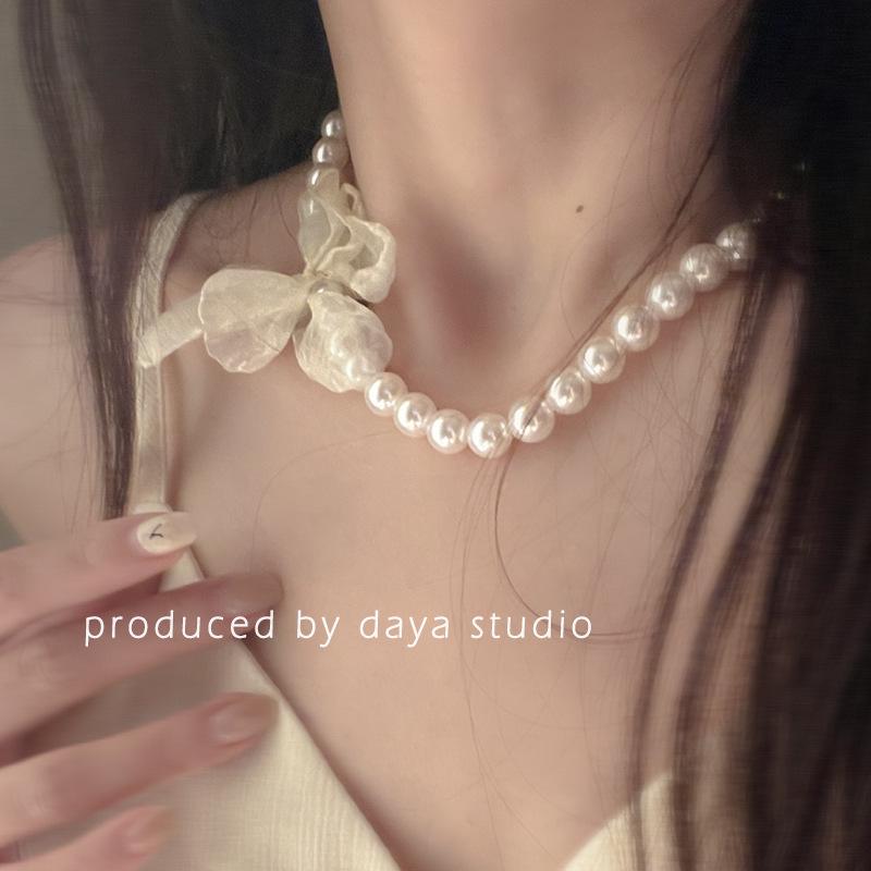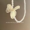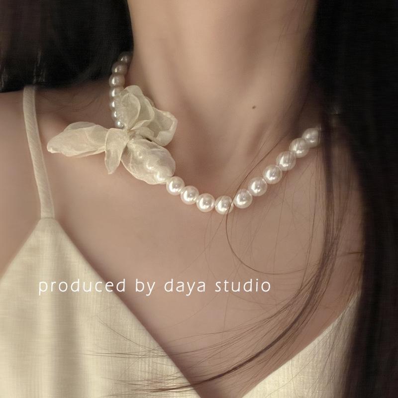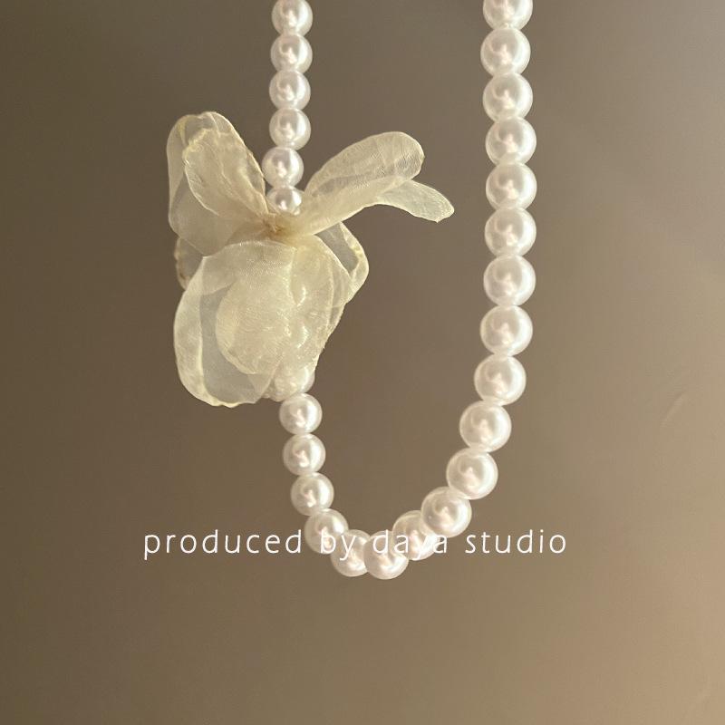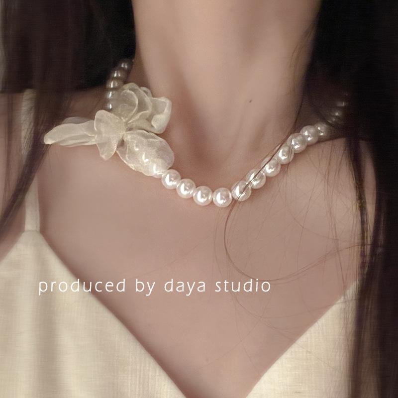 Collar de gasa con perlas y flores de alta calidad con estilo retro francés, estilo primaveral y temperamento de hada, cadena de clavícula.