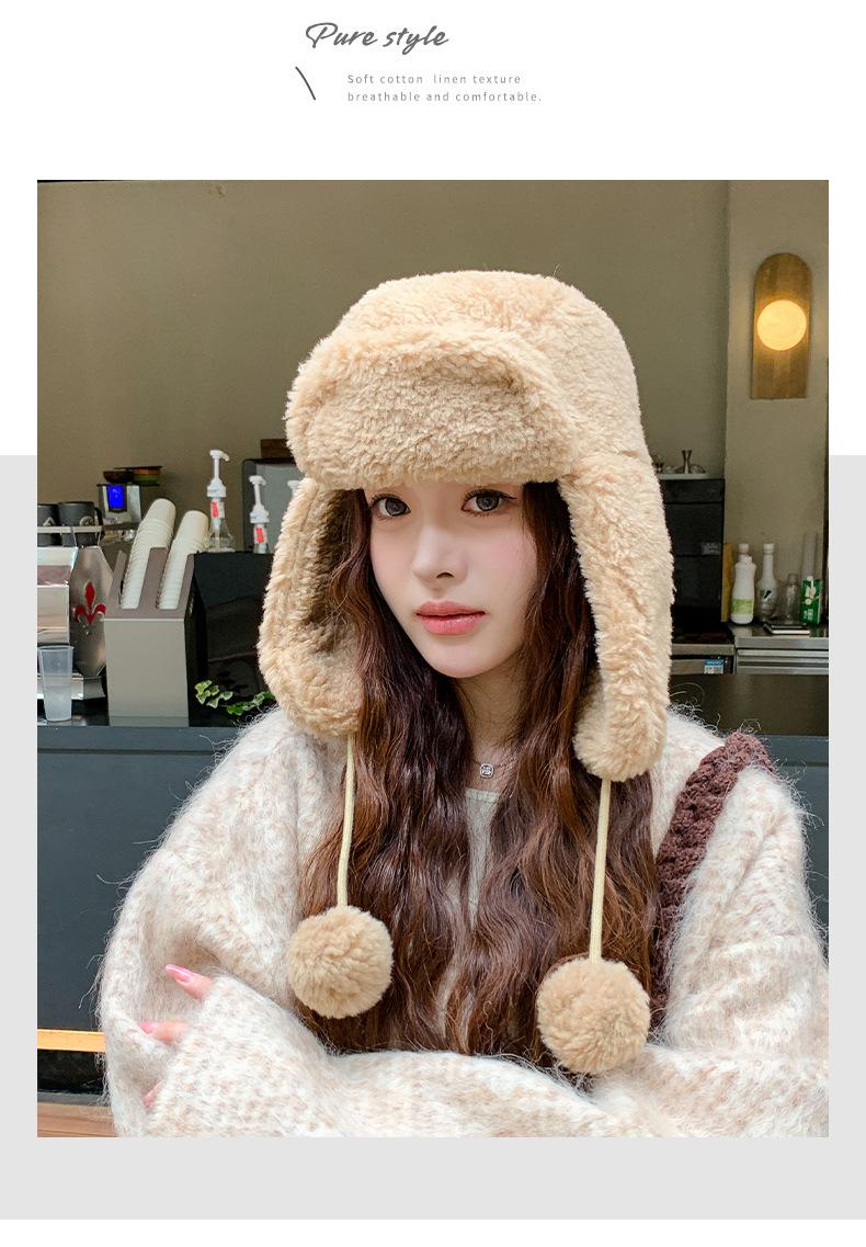 Gorro de invierno de felpa gruesa 2024, cálido y resistente al viento, para otoño e invierno, para ciclismo al aire libre, con protección auditiva, resistente al frío, Lei Feng.