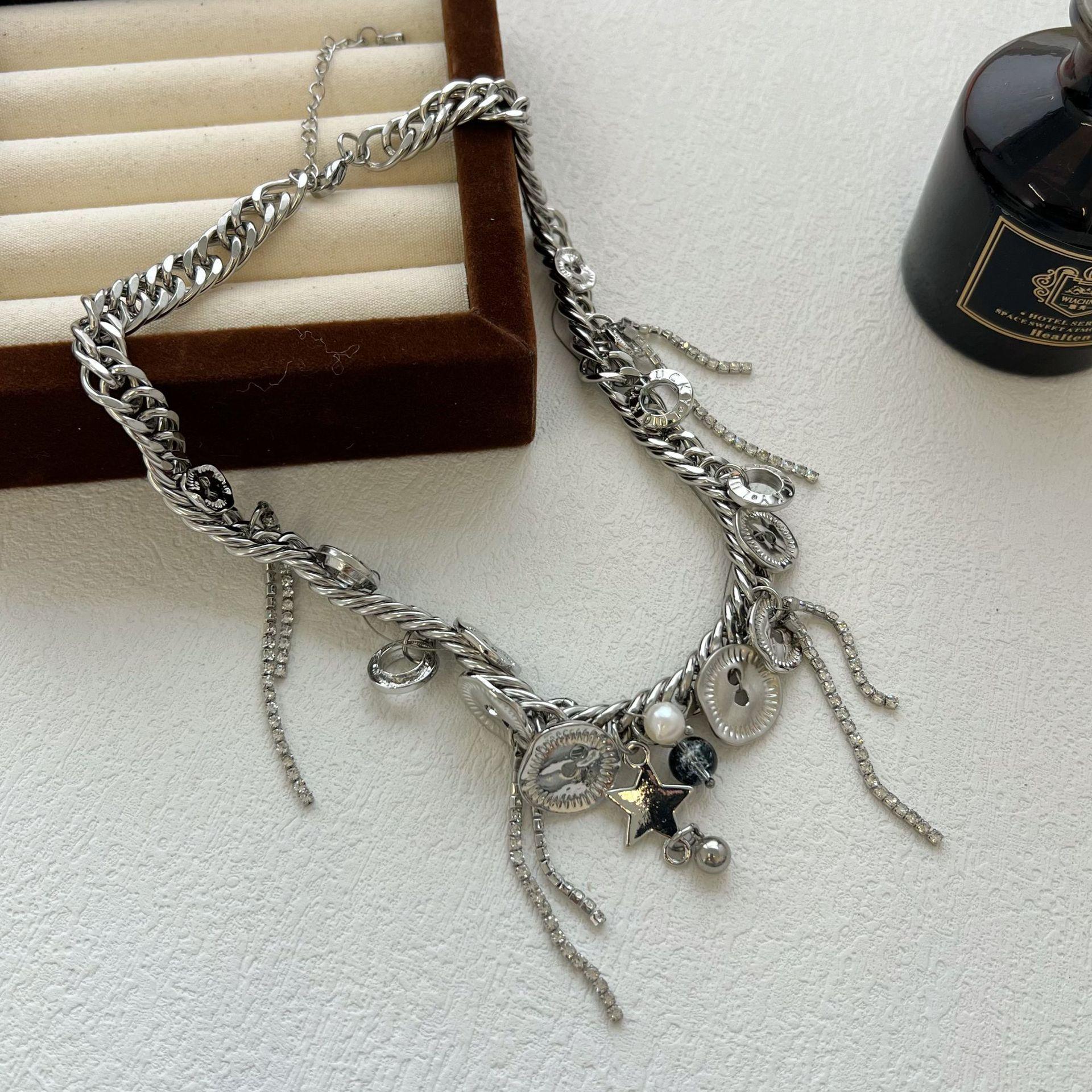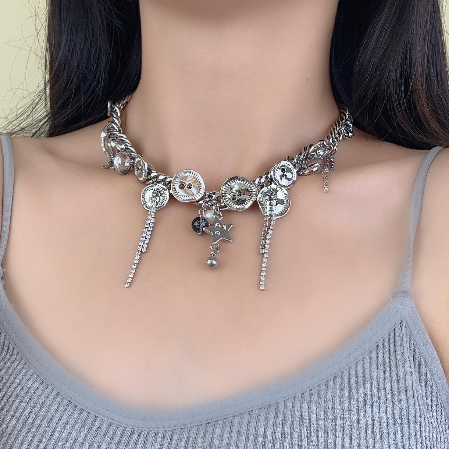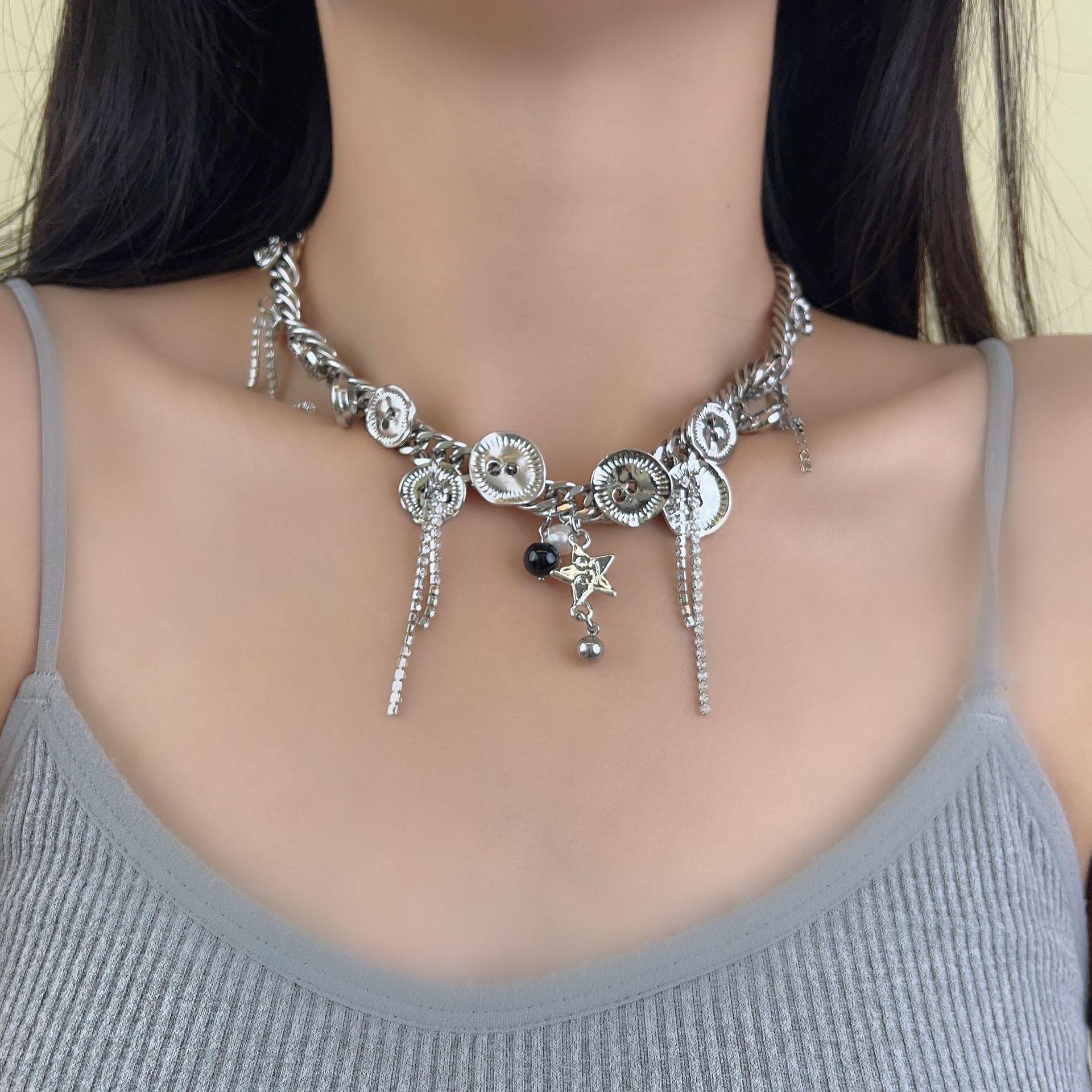 Dulce Diseño Cool de Chica Picante Botón Pedrería Estrella de Cinco Puntas Cadena Clavícula Moda Personalidad Nueva Moda Collar con Sentido de Alta Gama