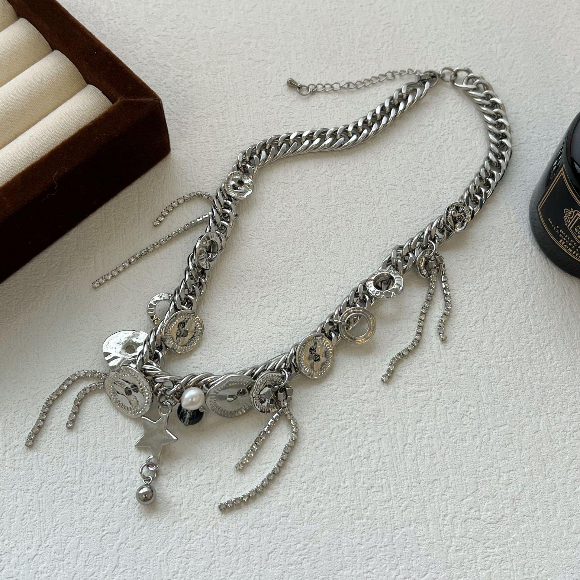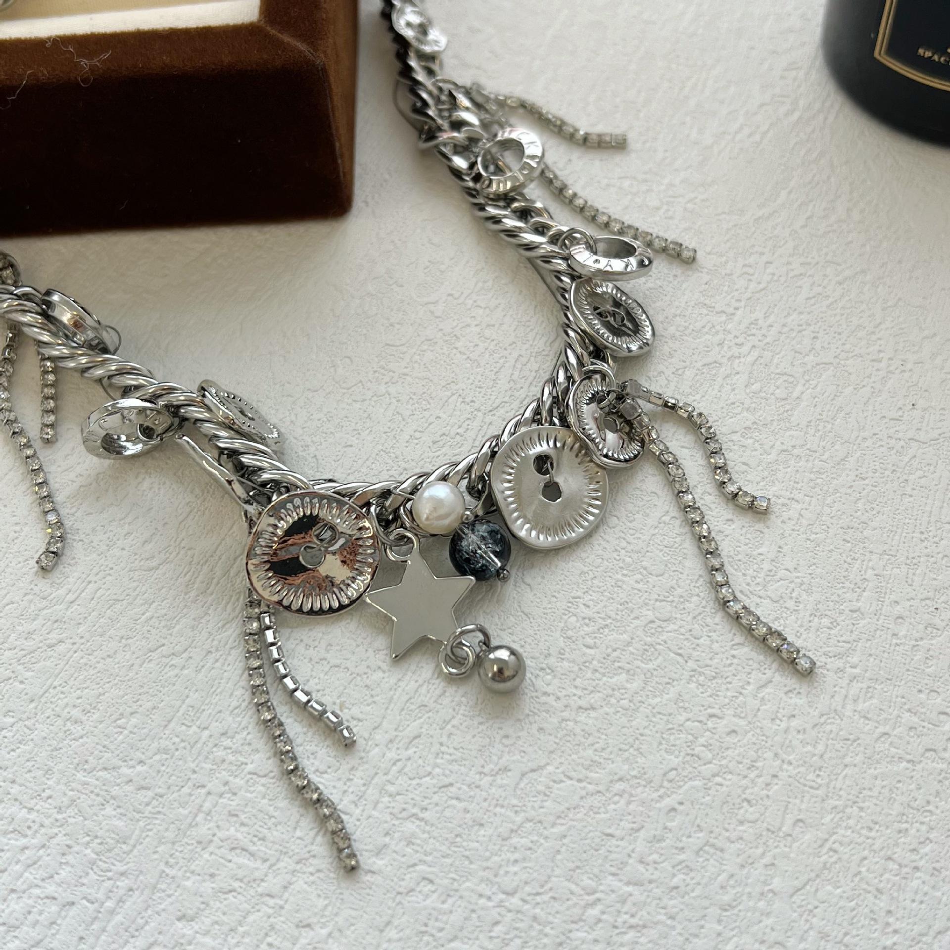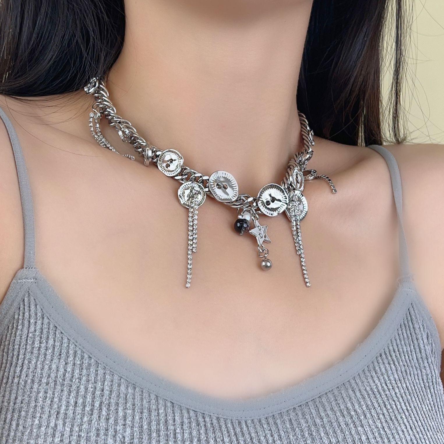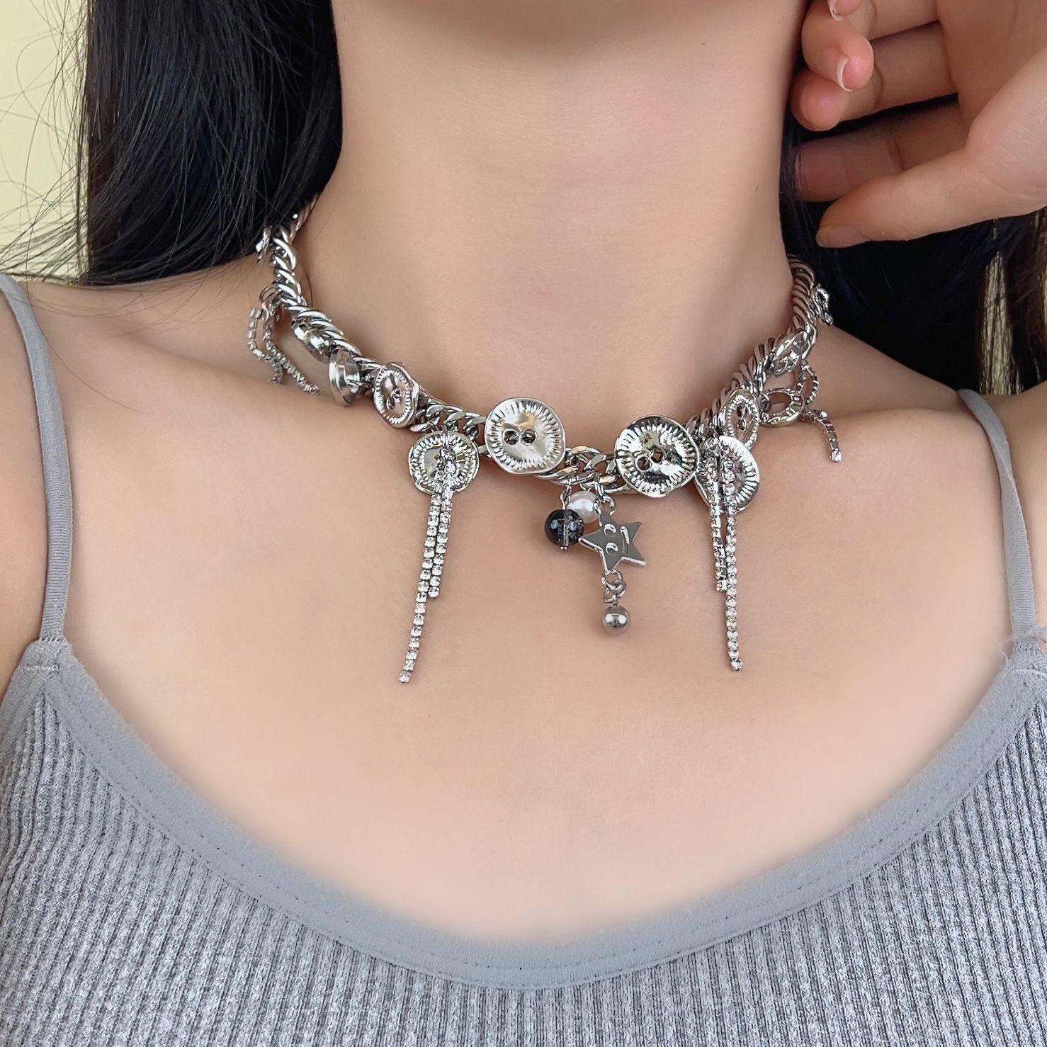 Dulce Diseño Cool de Chica Picante Botón Pedrería Estrella de Cinco Puntas Cadena Clavícula Moda Personalidad Nueva Moda Collar con Sentido de Alta Gama