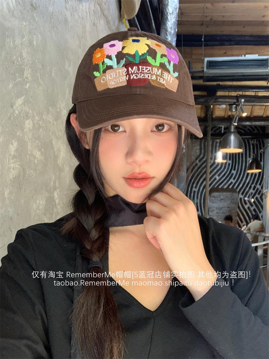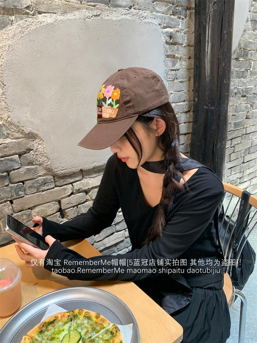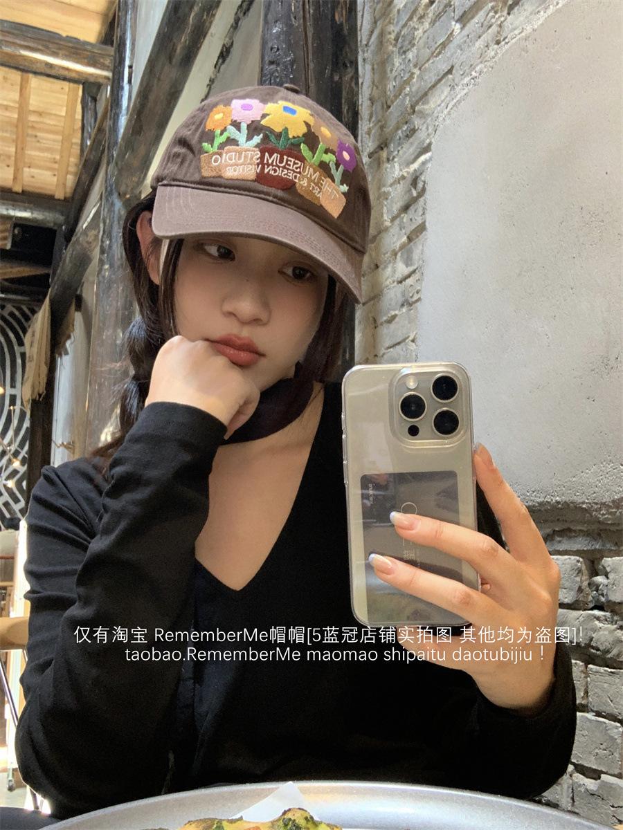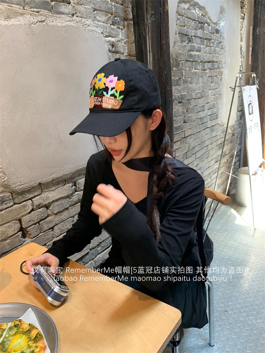 2024 nuevo color de industria pesada bordado de flores gorra suave dulce Y2K personalidad chica hot gorra de béisbol pareja