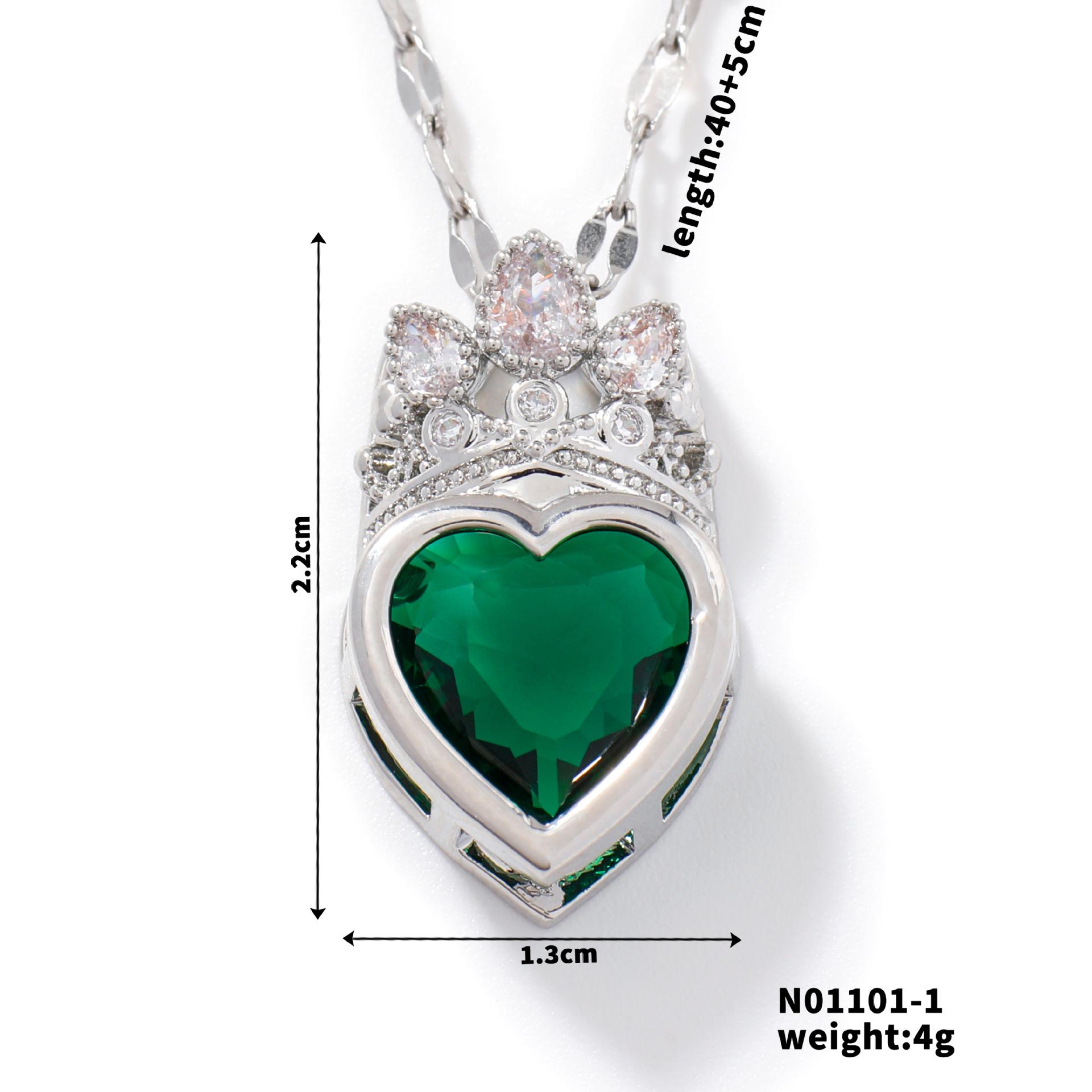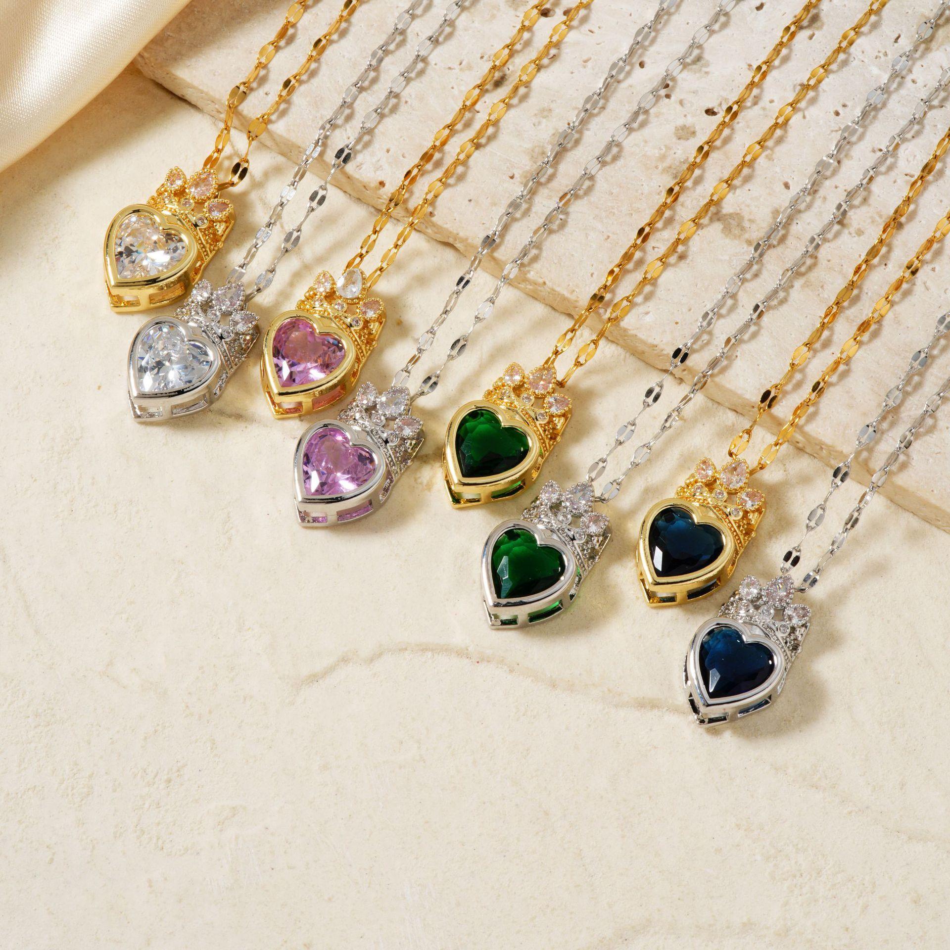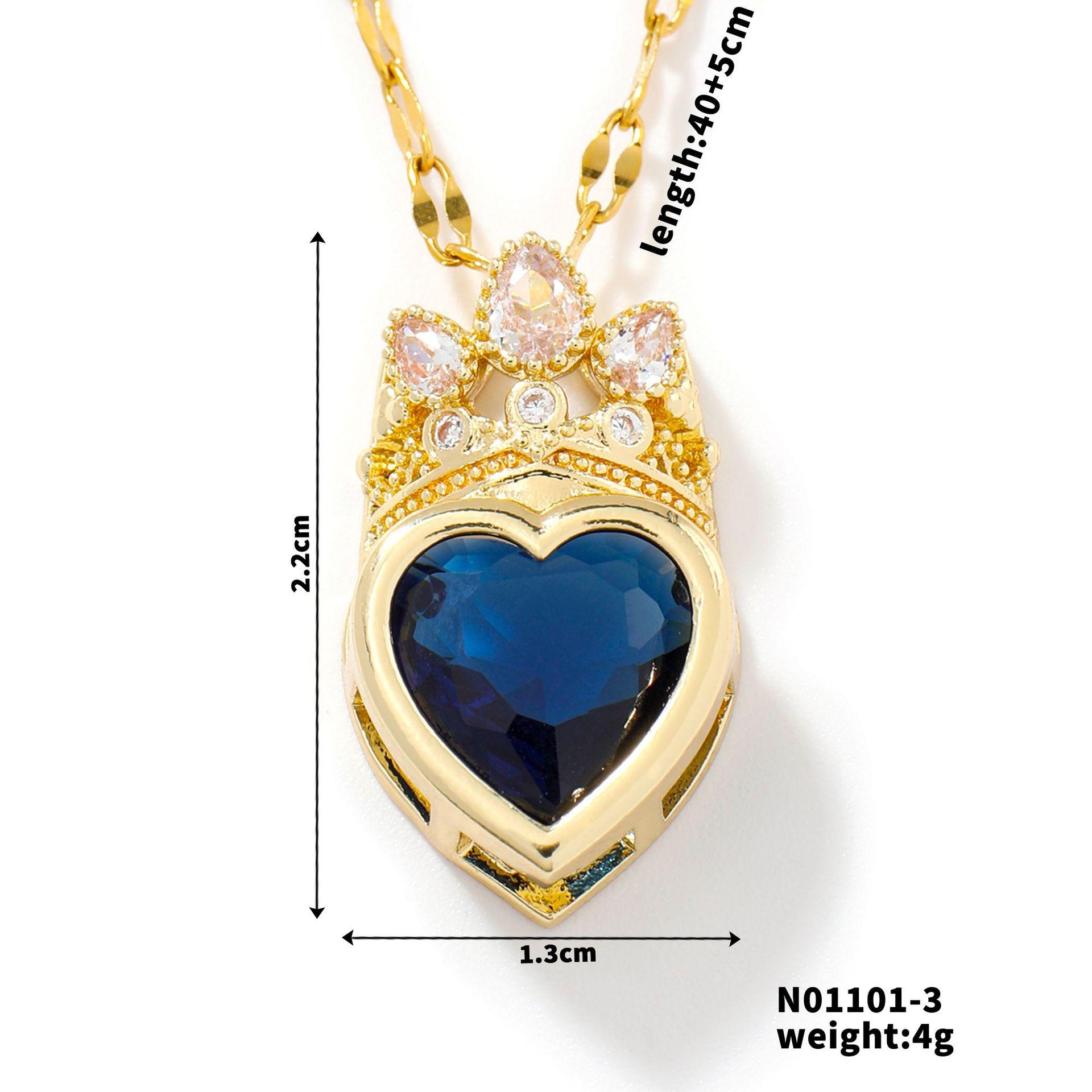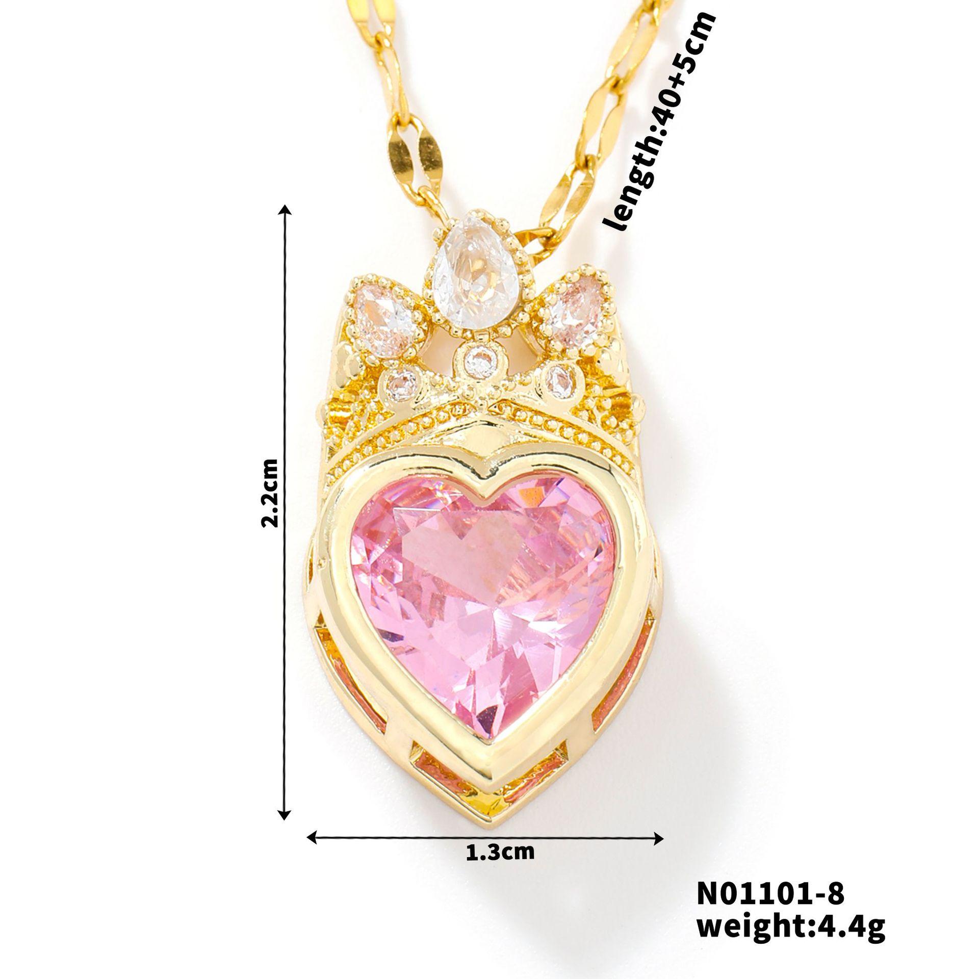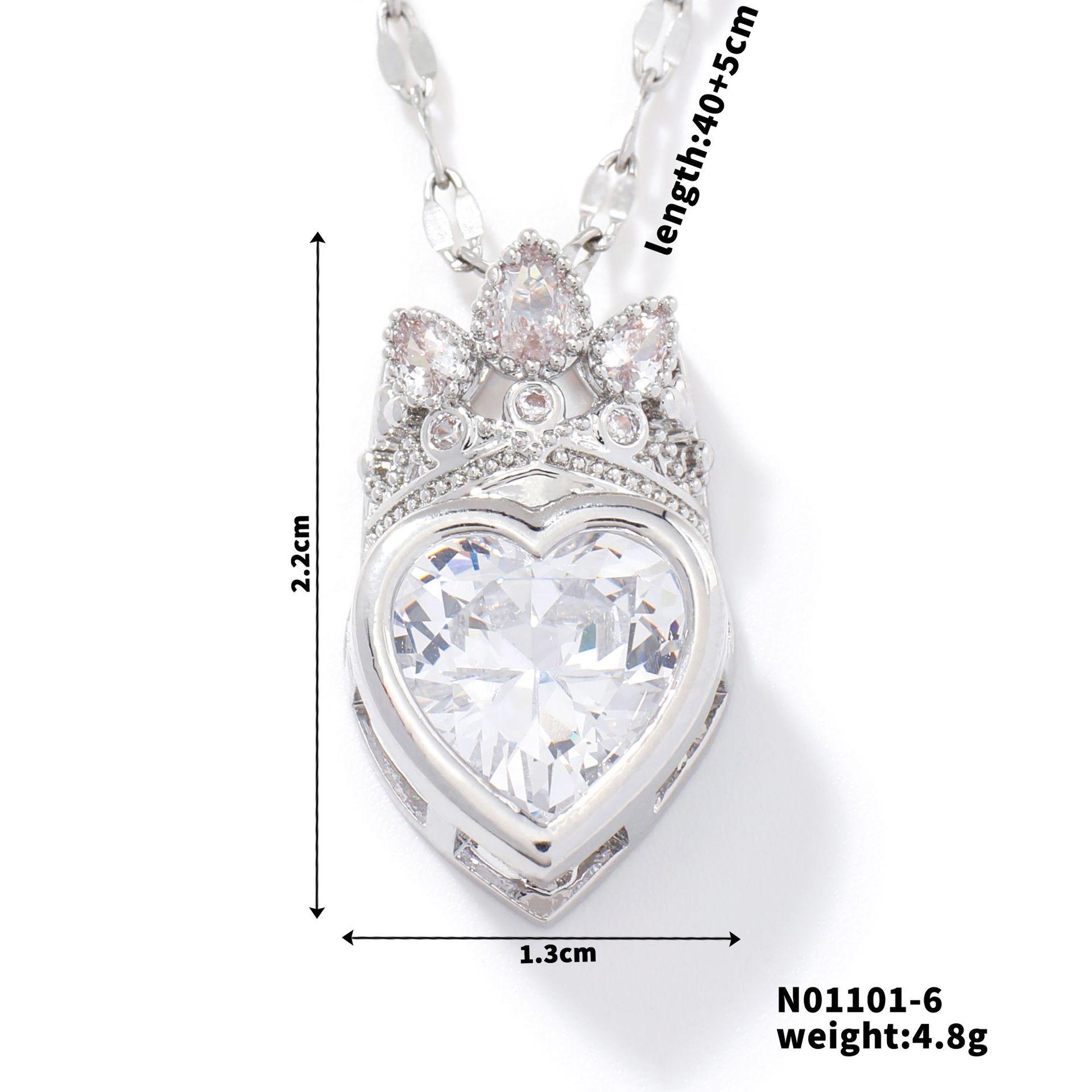 Collar con Colgante de Corona de Moda y Exquisito en Forma de Corazón de Cobre con Incrustaciones de Zirconia Tendencia 2024 Joyería Nueva Versátil