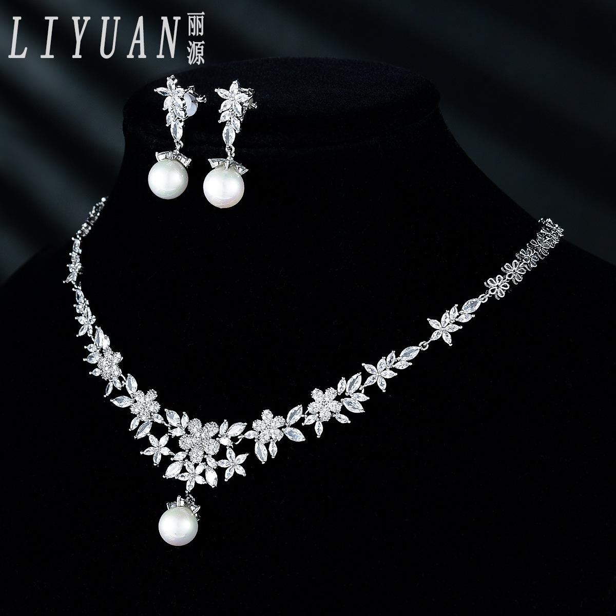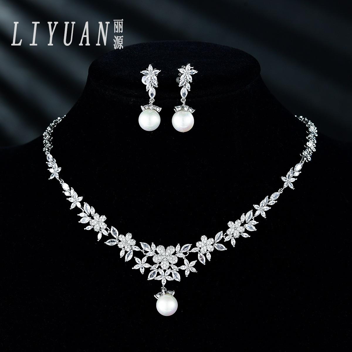 Collar Europeo y Americano de Invierno Nuevo de Alta Gama Joyería Aretes Collar Vestido Conjunto de Joyería Nupcial para Boda