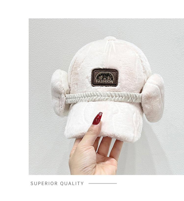 Gorra de felpa cálida de invierno para niños, nueva, con cola de caballo alta, gruesa, con orejeras cálidas y frías, gorra de béisbol de tendencia.