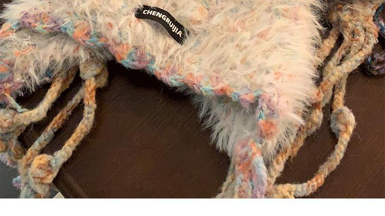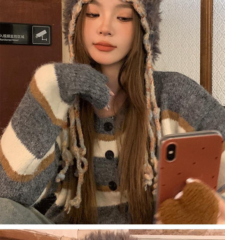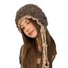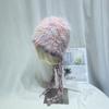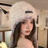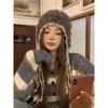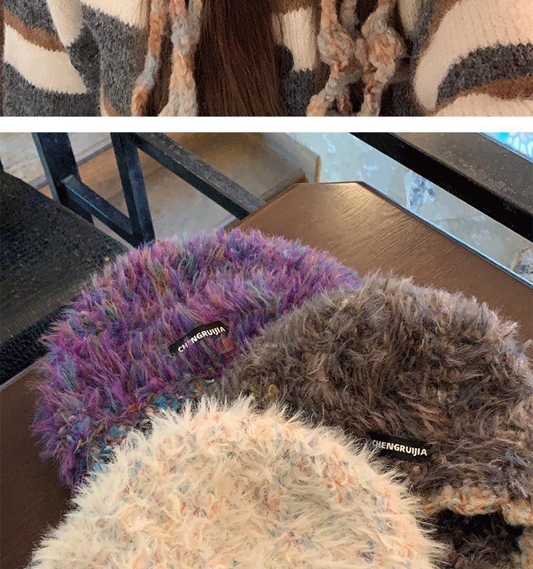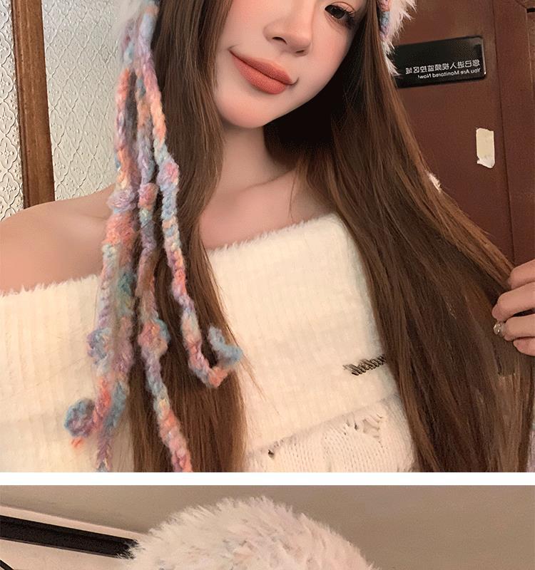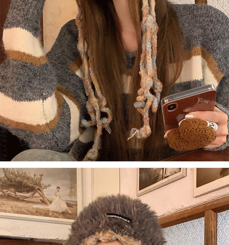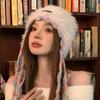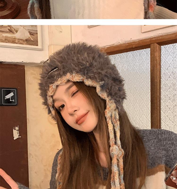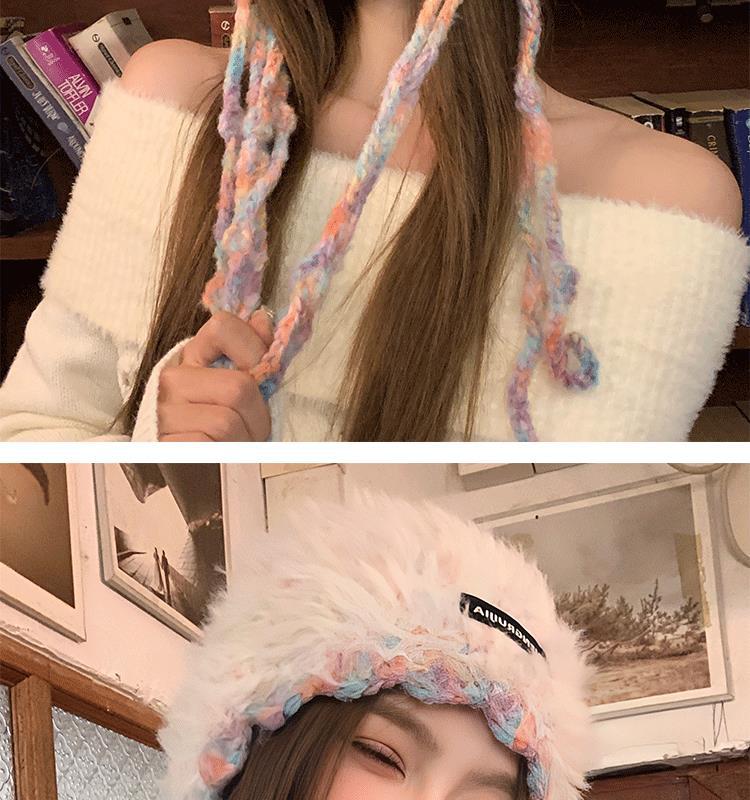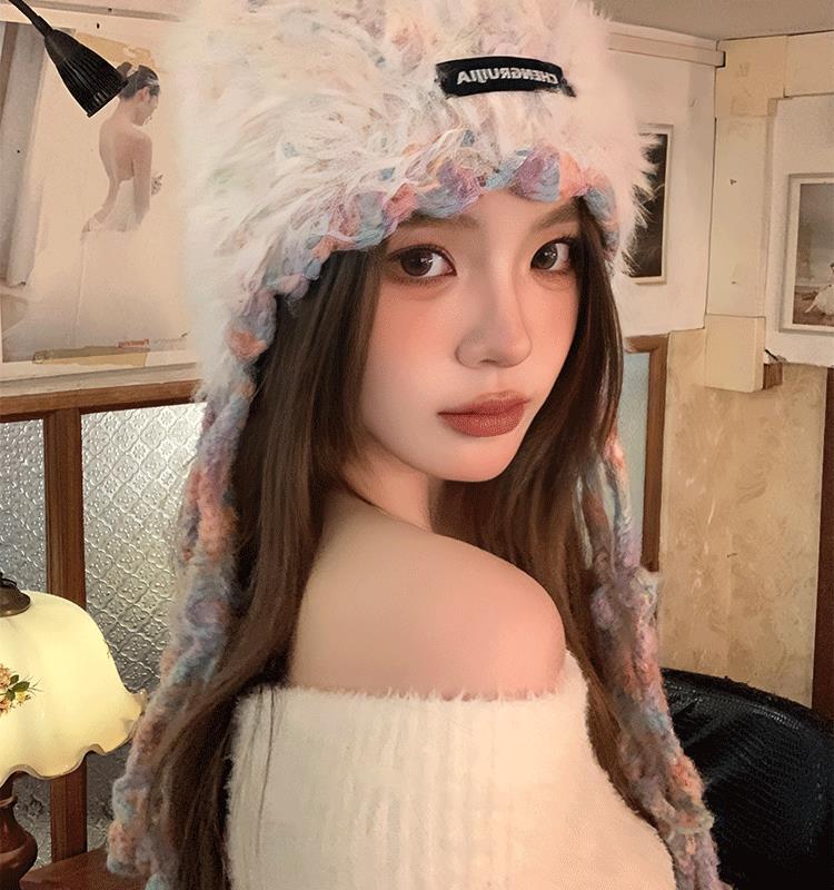 Gorro de mujer estilo coreano de otoño e invierno 2023, nuevo gorro de punto de colores variados con correa de felpa, gorro de lana cálido y con protección para las orejas.
