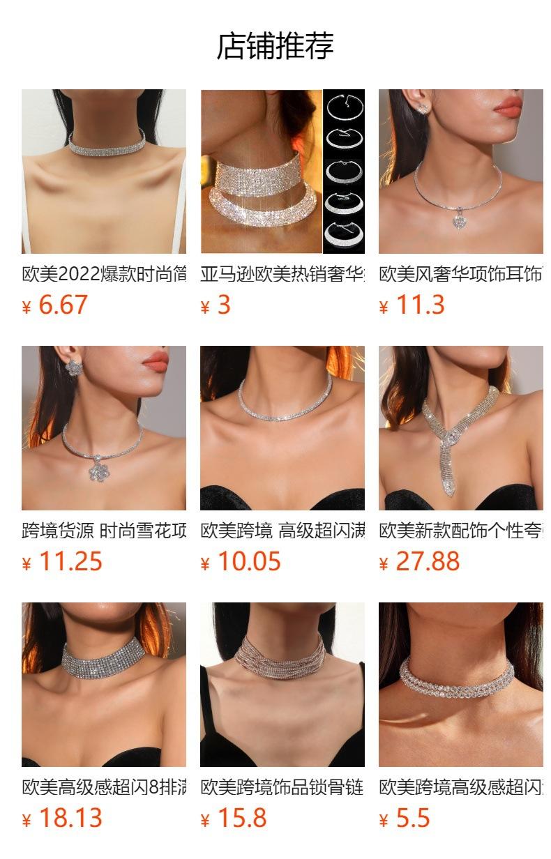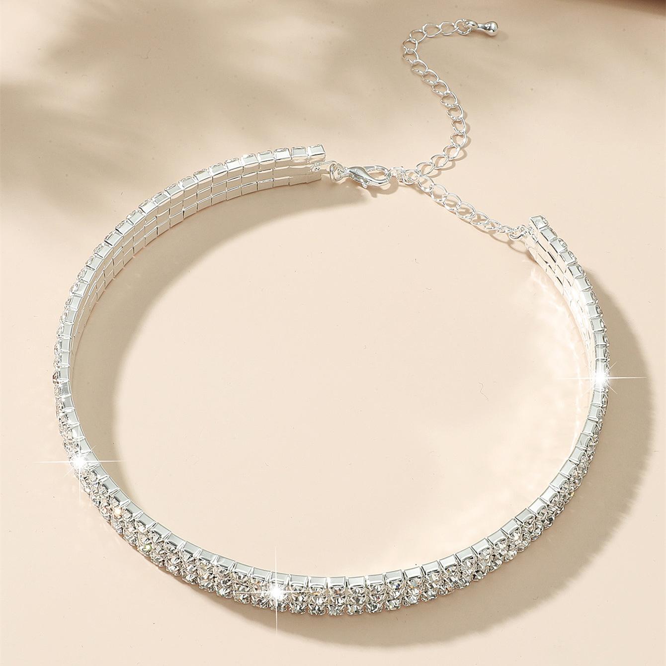 Collar de cadena de clavícula de lujo para mujer, de moda, con diamantes de imitación brillantes de varias filas, de alto sentido transfronterizo entre Europa y Estados Unidos, al por mayor