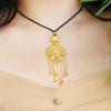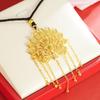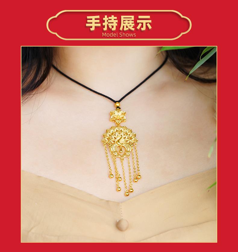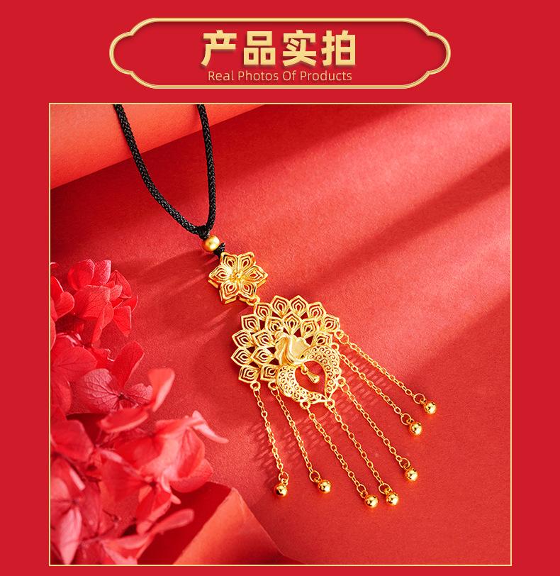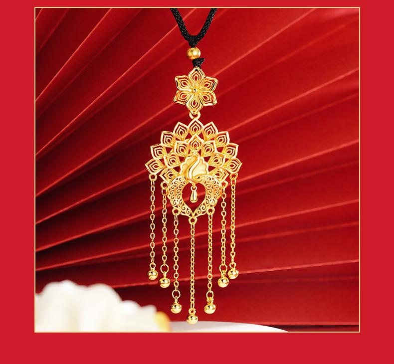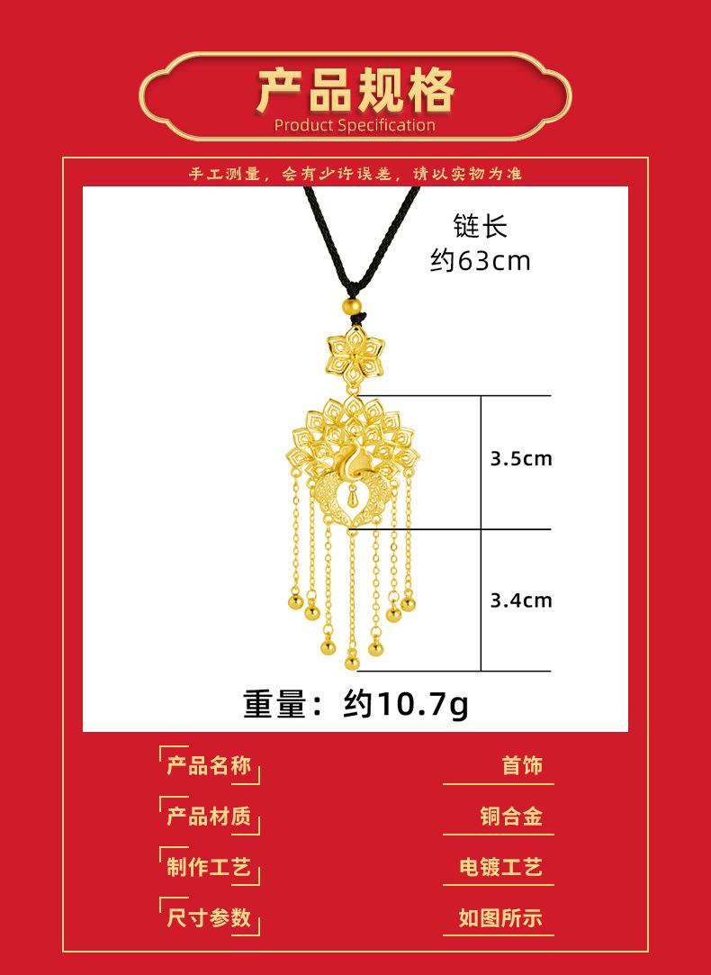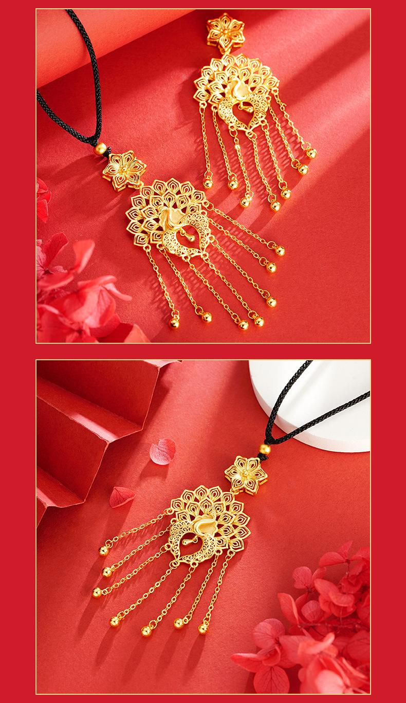 Collar de oro para novia, cadena de suéter resistente a la decoloración, colgante de cloisonné de pavo real, estilo étnico, collar de oro de imitación retro