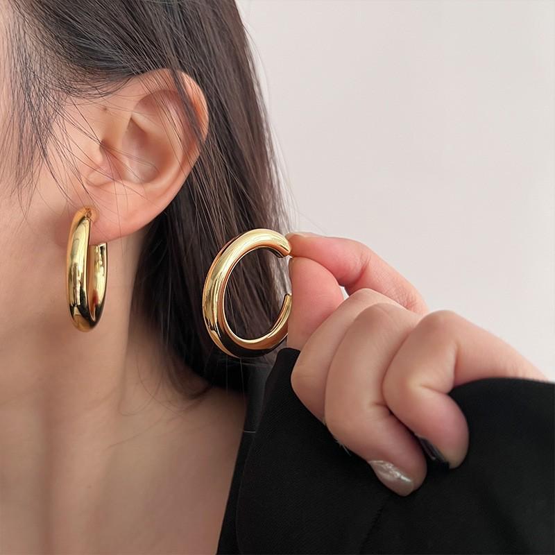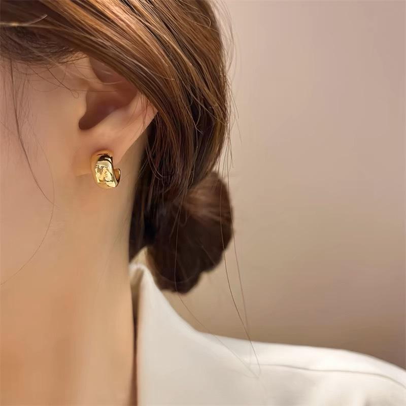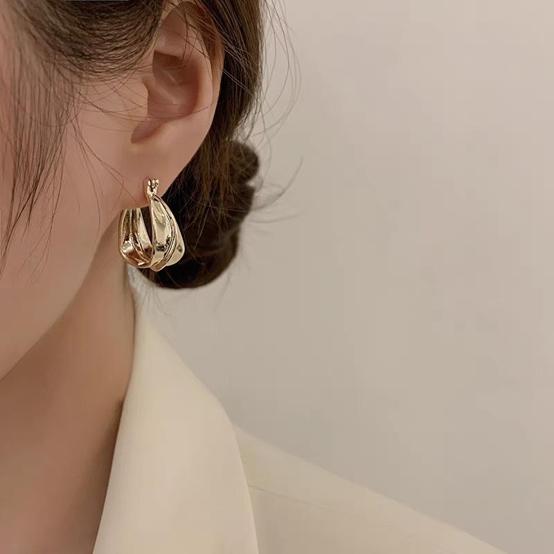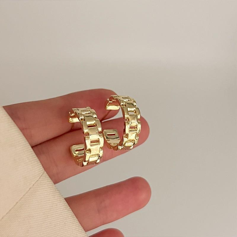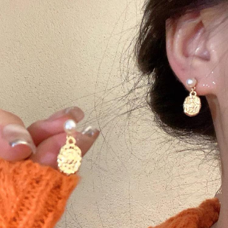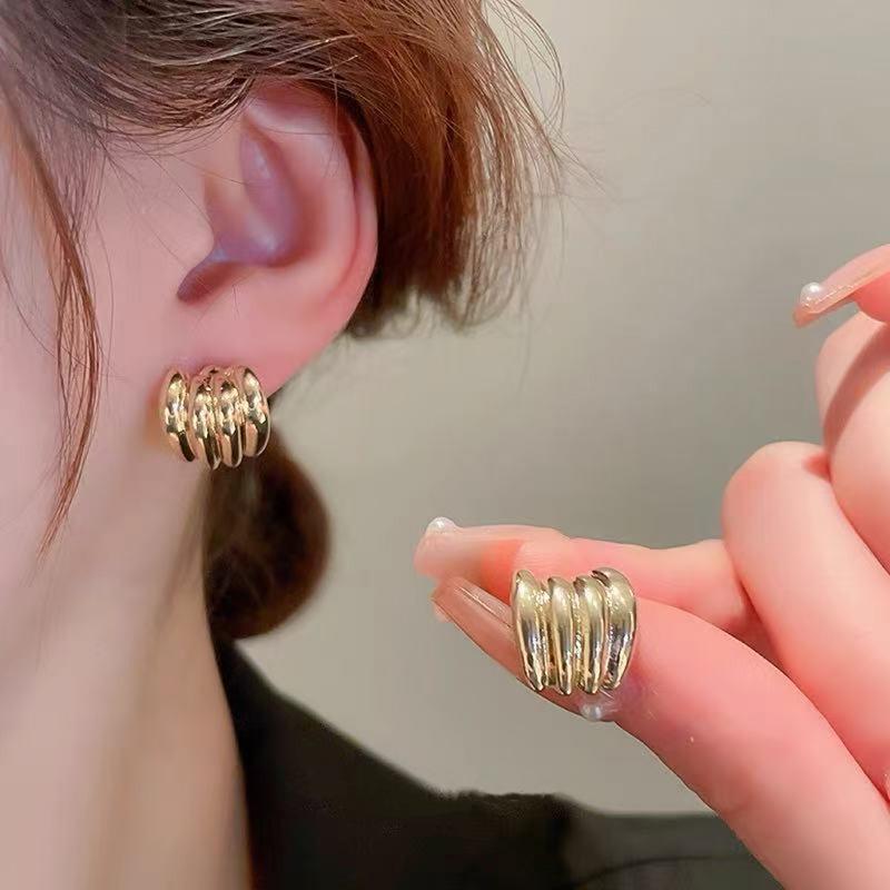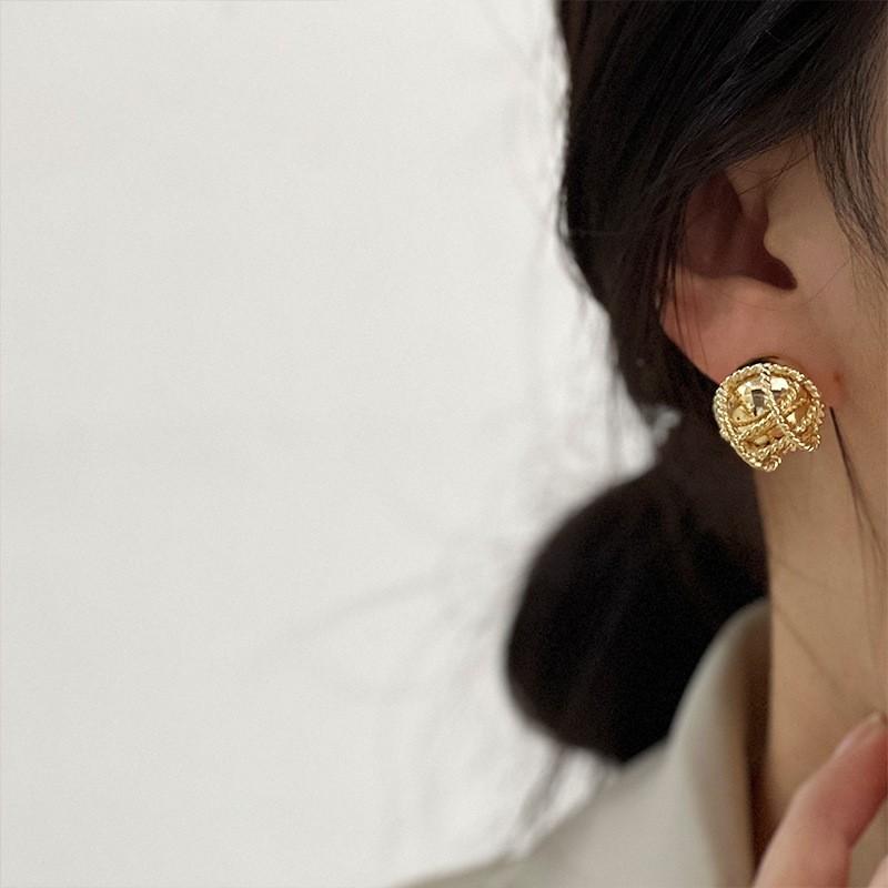 Pendientes elegantes estilo retro de Hong Kong para mujer, 2024, nuevos y explosivos, populares en Internet, de alta gama, dorados y combinables.