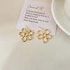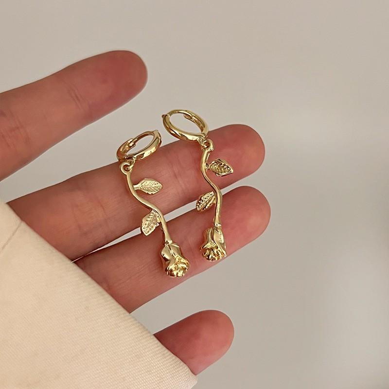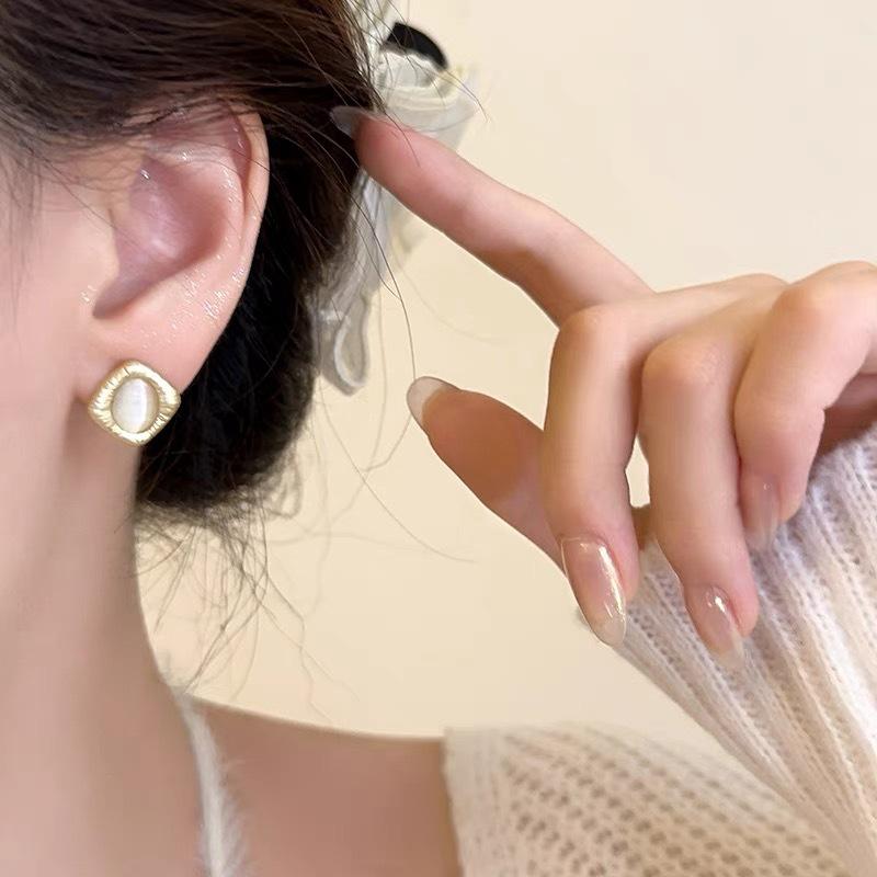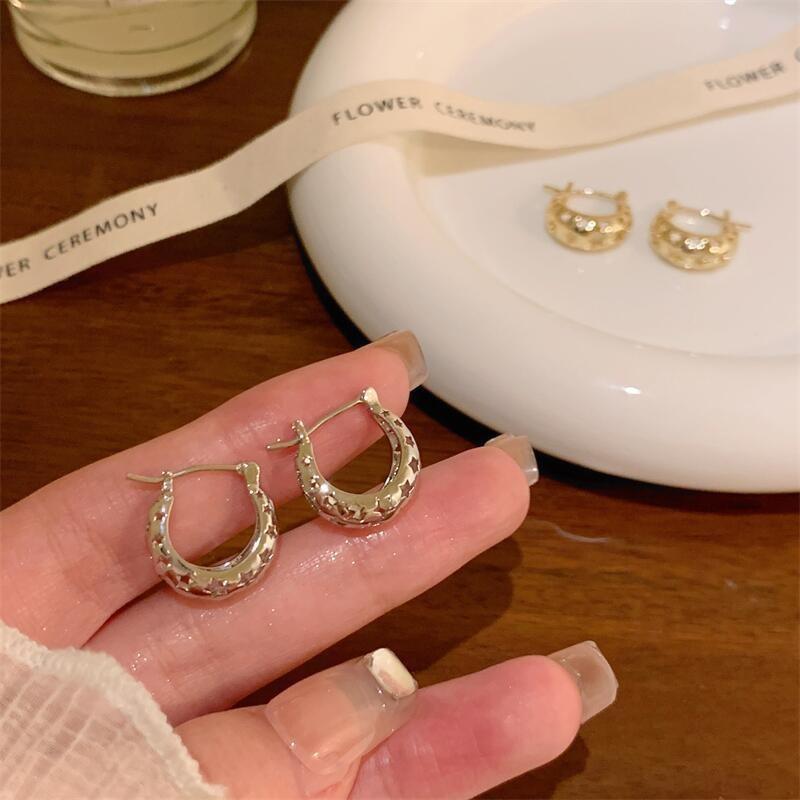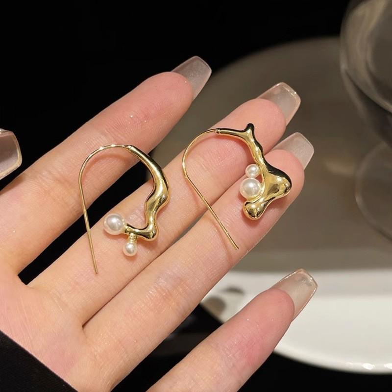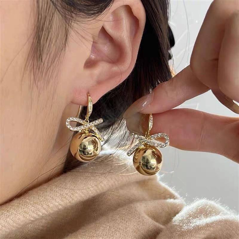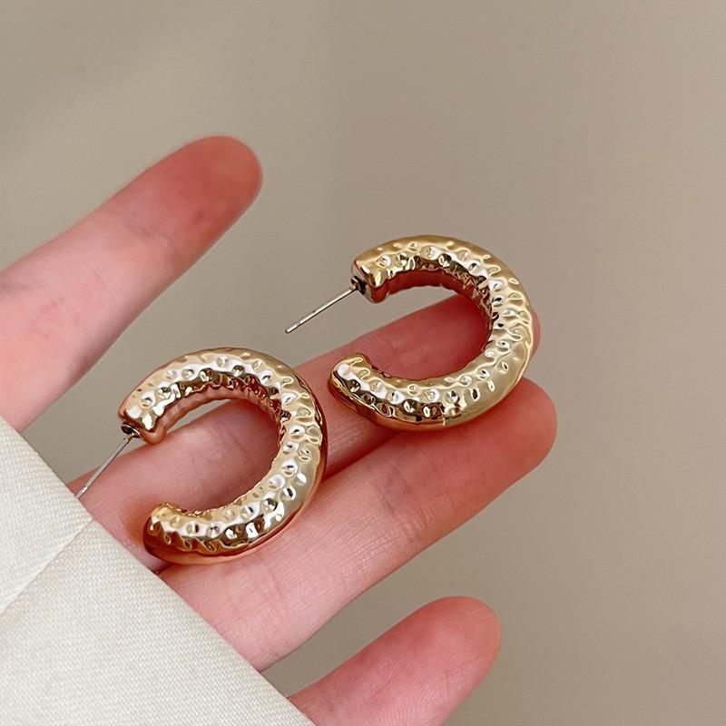 Pendientes elegantes estilo retro de Hong Kong para mujer, 2024, nuevos y explosivos, populares en Internet, de alta gama, dorados y combinables.