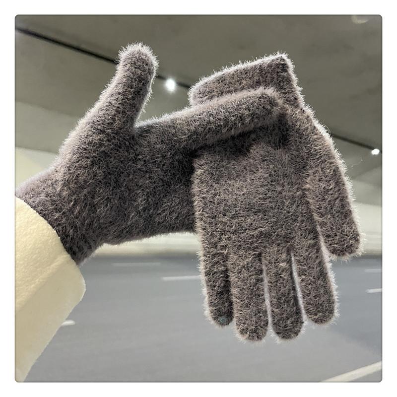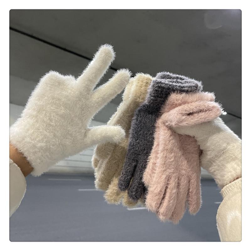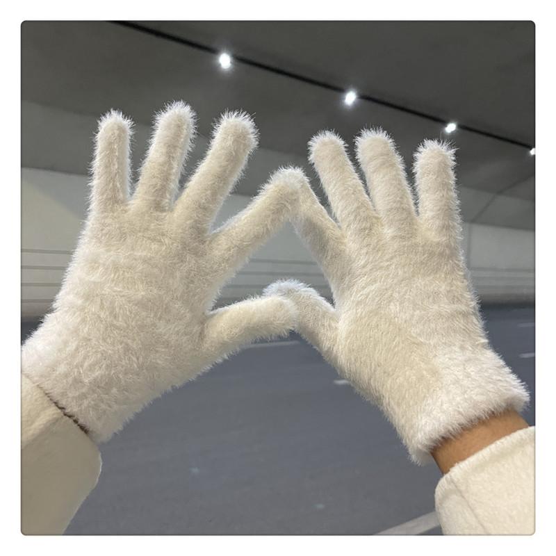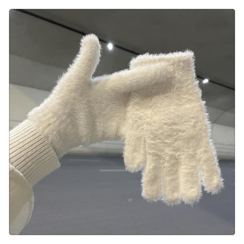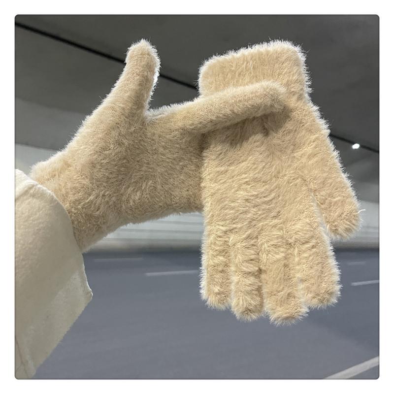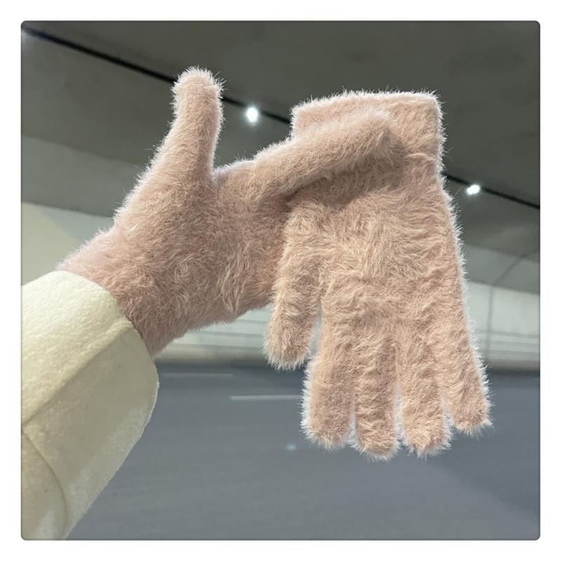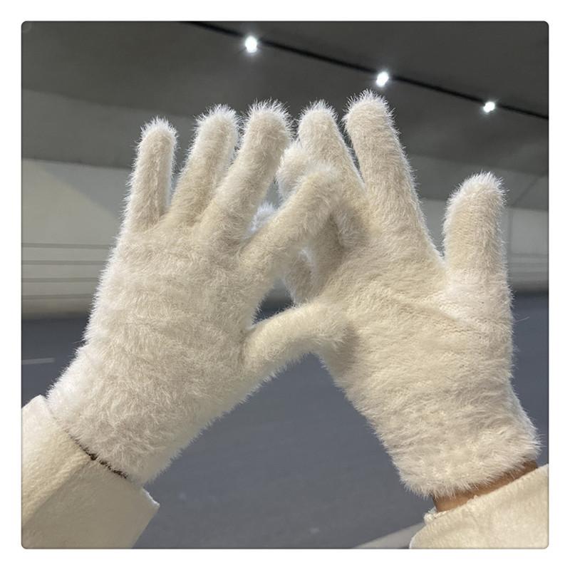 Guantes de invierno para ciclismo, nuevos guantes de imitación de piel de conejo de peluche para mujer, forrados de vellón, cálidos y bonitos, a prueba de frío, para estudiantes de 2024.