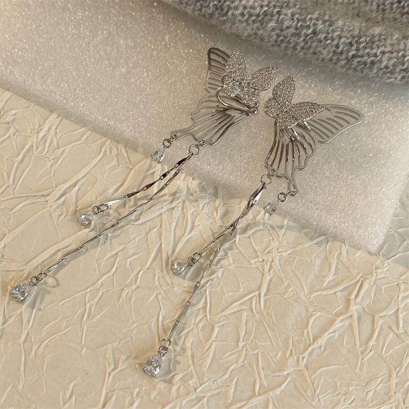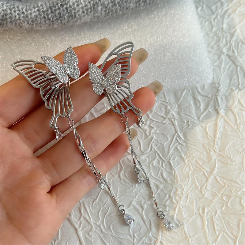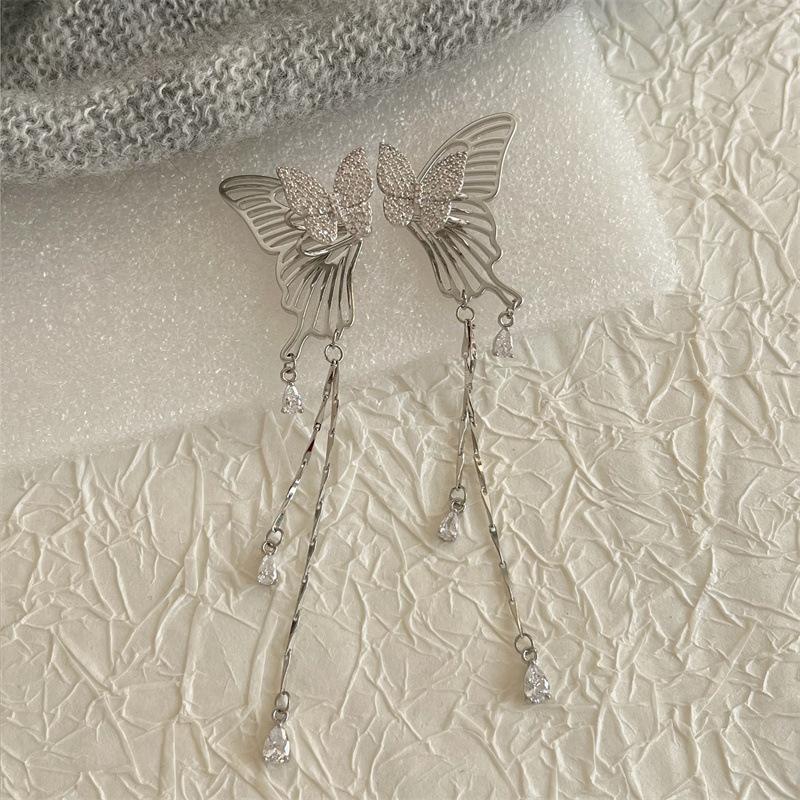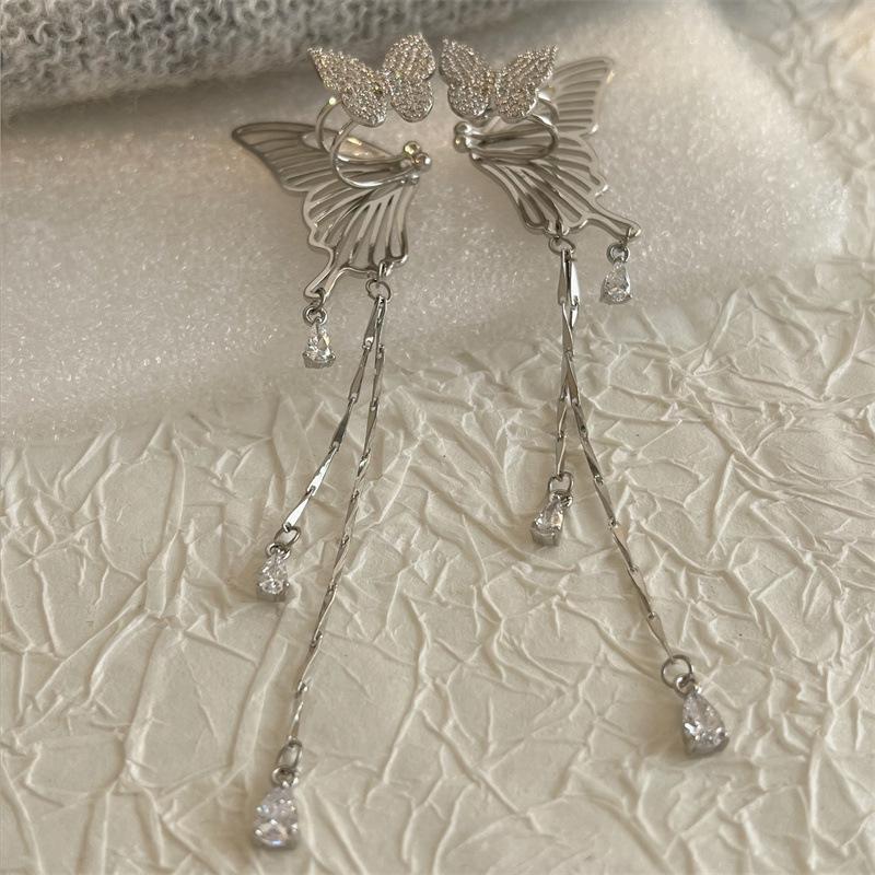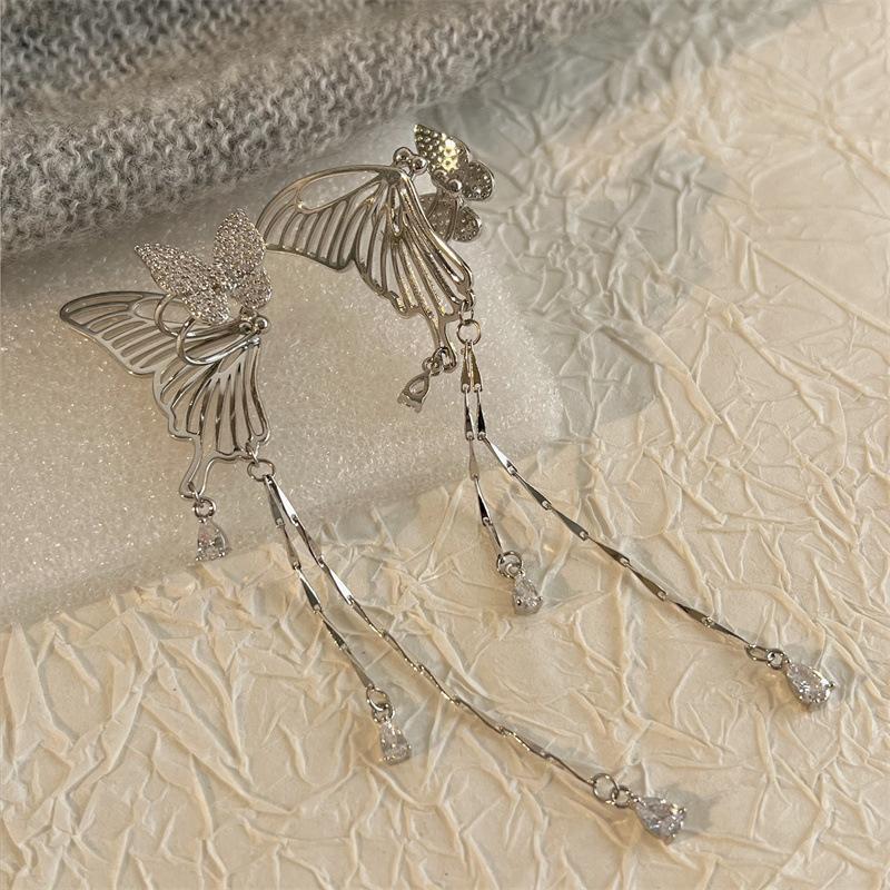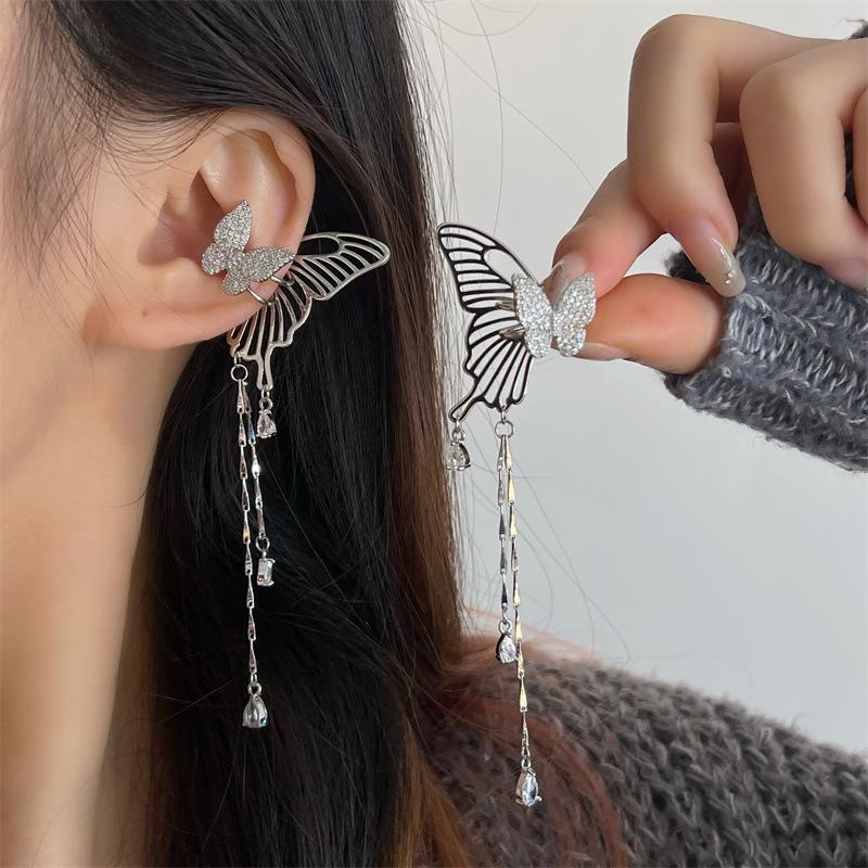 Left Ear butterfly tassel ear clip, Right ear butterfly tassel ear clip