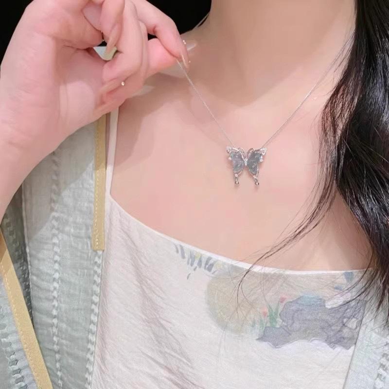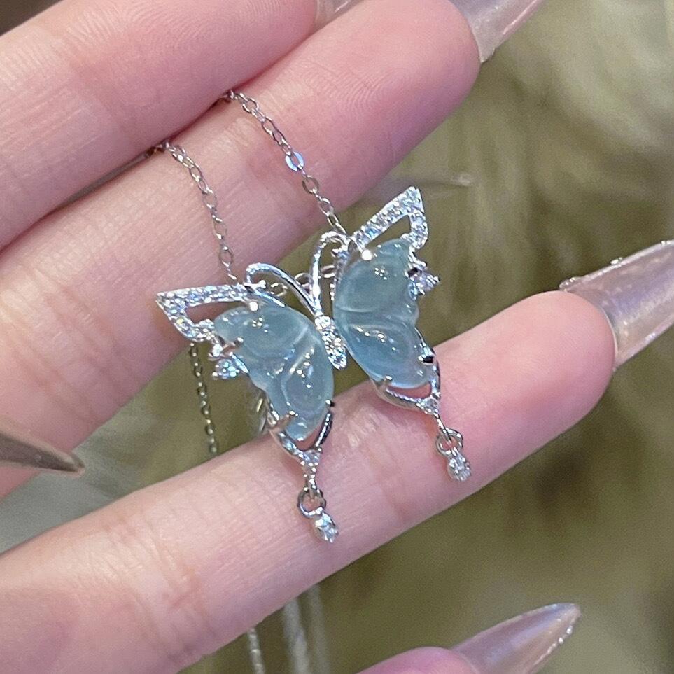 Collar de acero de titanio nuevo colgante de mariposa verde claro chino nicho hueco luz lujo alta gama cadena de clavícula no se desvanece