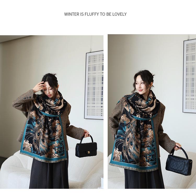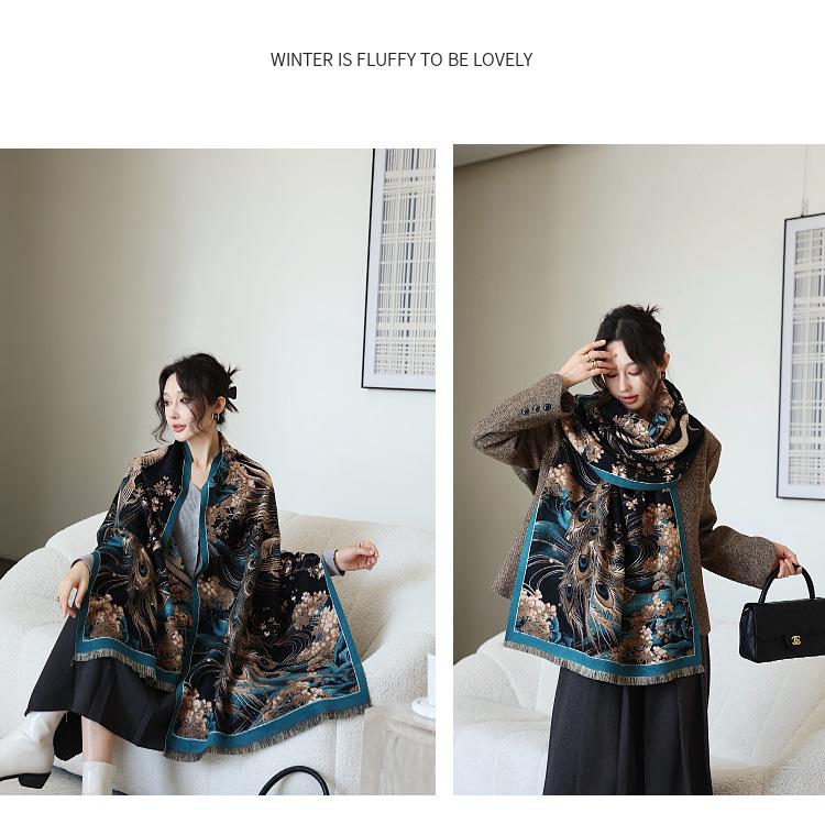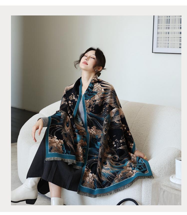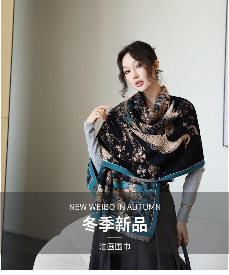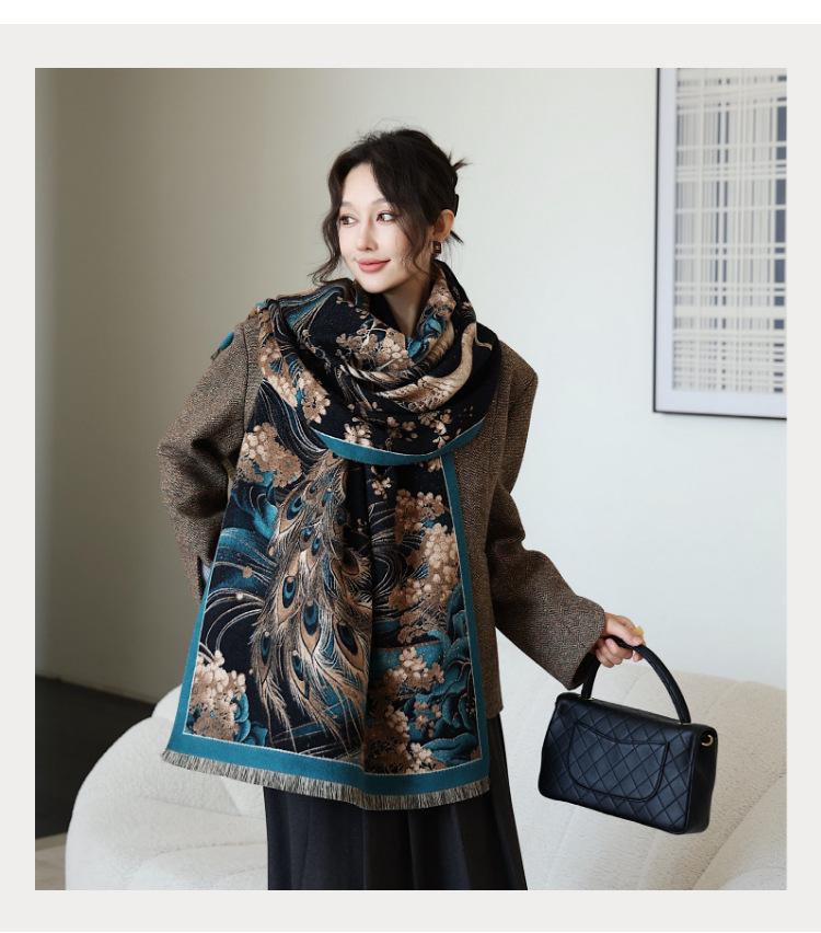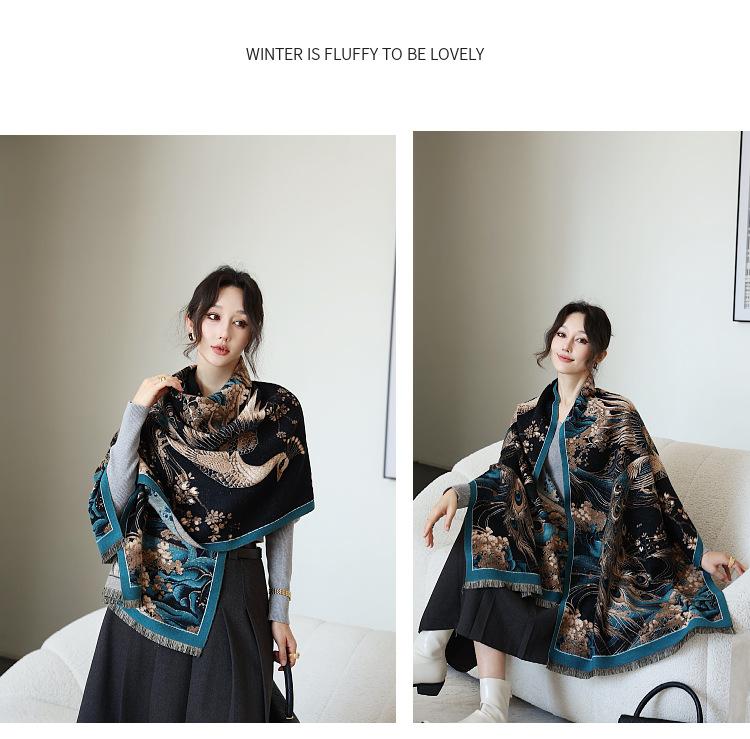 Bufanda simple y cálida para mujer, estilo nuevo otoño e invierno 2024, con protector solar multifuncional, jacquard