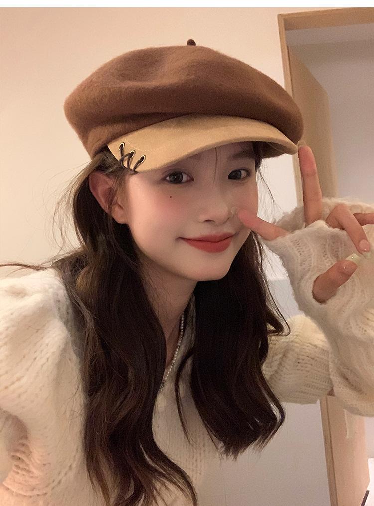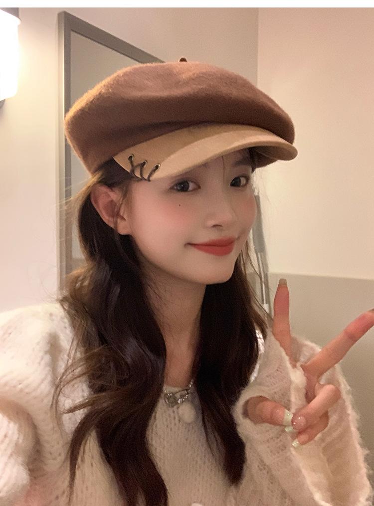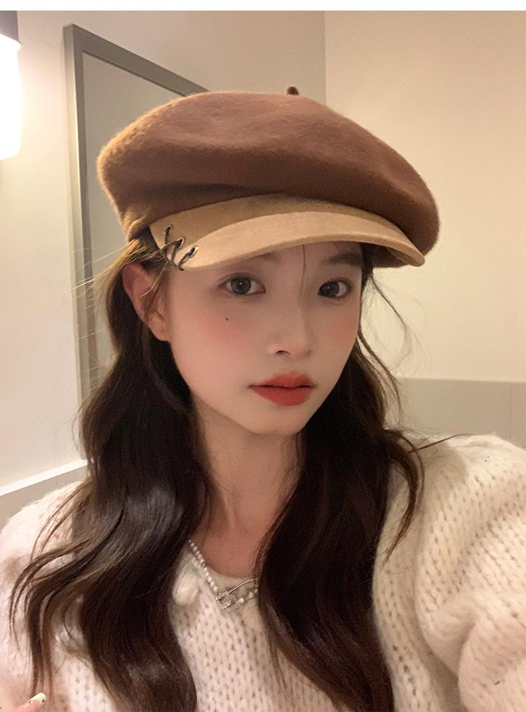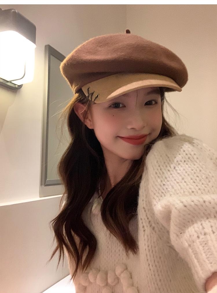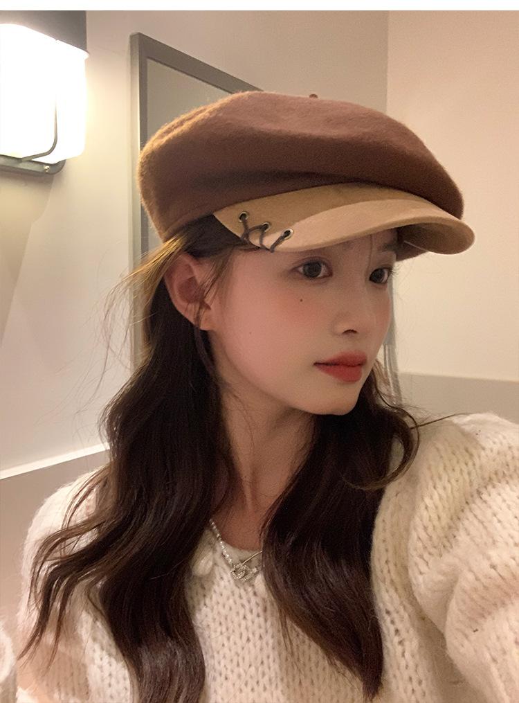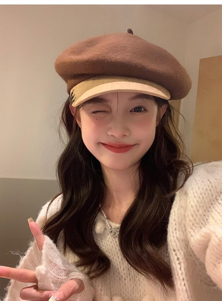 Boina de Lana con Visera para Mujer Sombrero Octogonal con Visera Estilo Nuevo 2024 Fabricante de Boina de Pintor