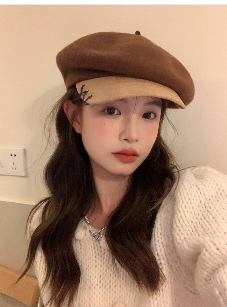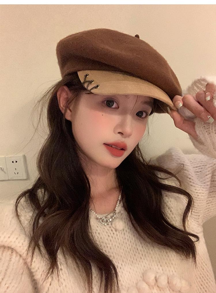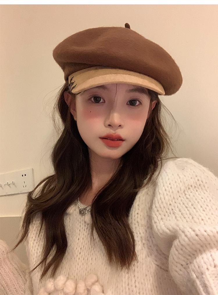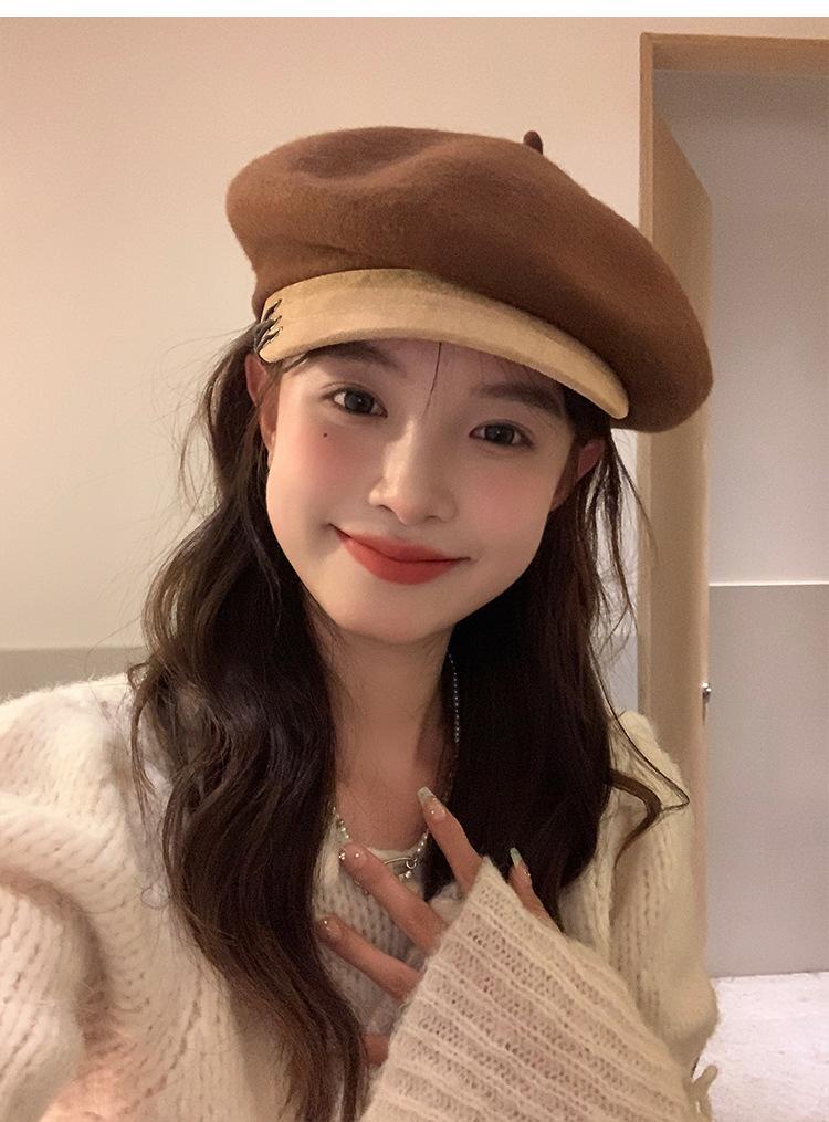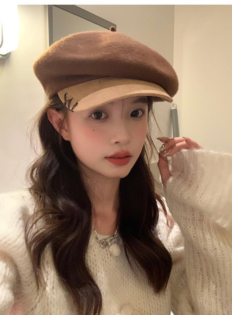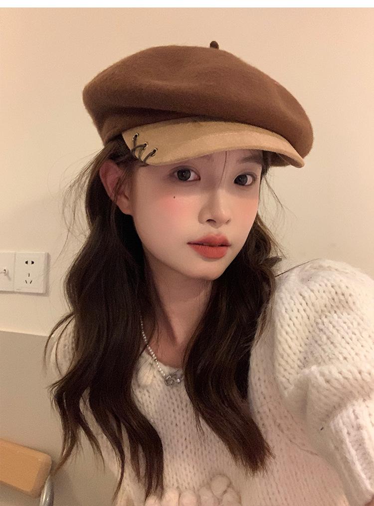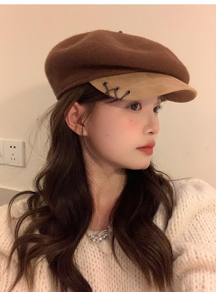 Boina de Lana con Visera para Mujer Sombrero Octogonal con Visera Estilo Nuevo 2024 Fabricante de Boina de Pintor
