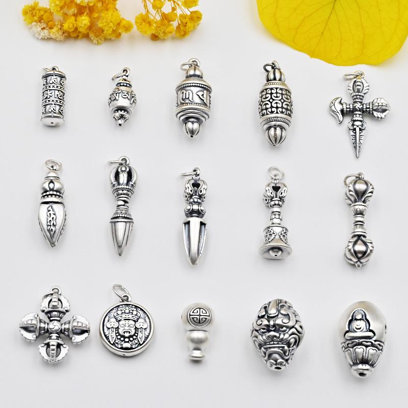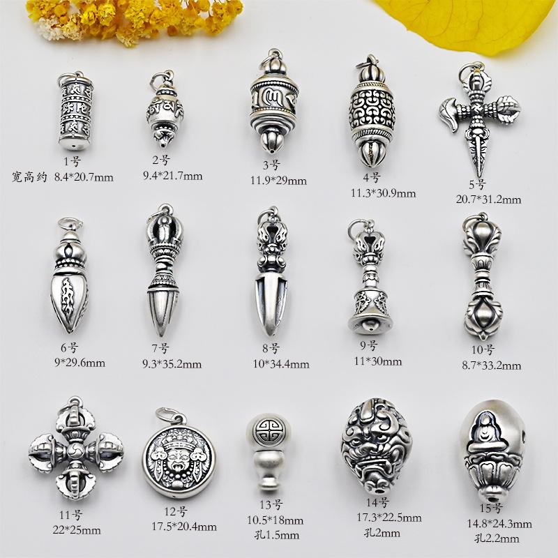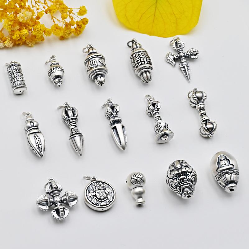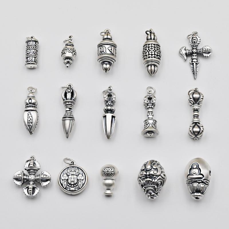 S999 Accesorios de Plata para Pies Vajra Pestle Colgante Rueda de Sutra Wen Play No-fase Pulsera DIY Tridimensional Colgante Xizang