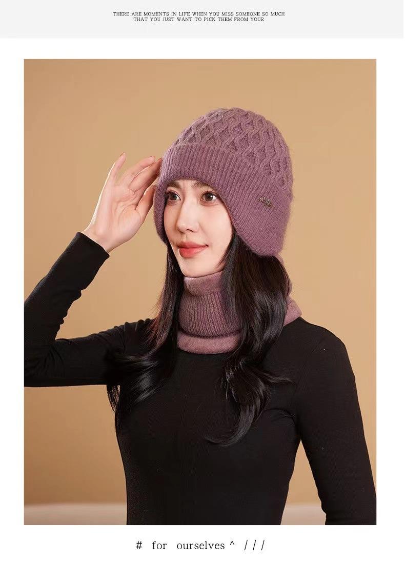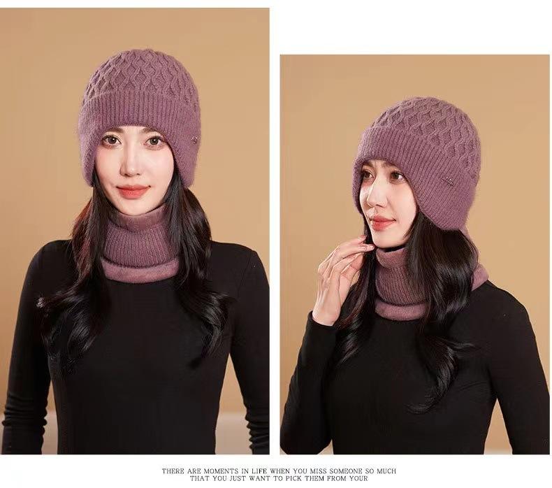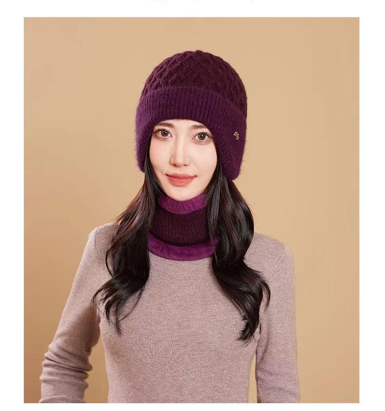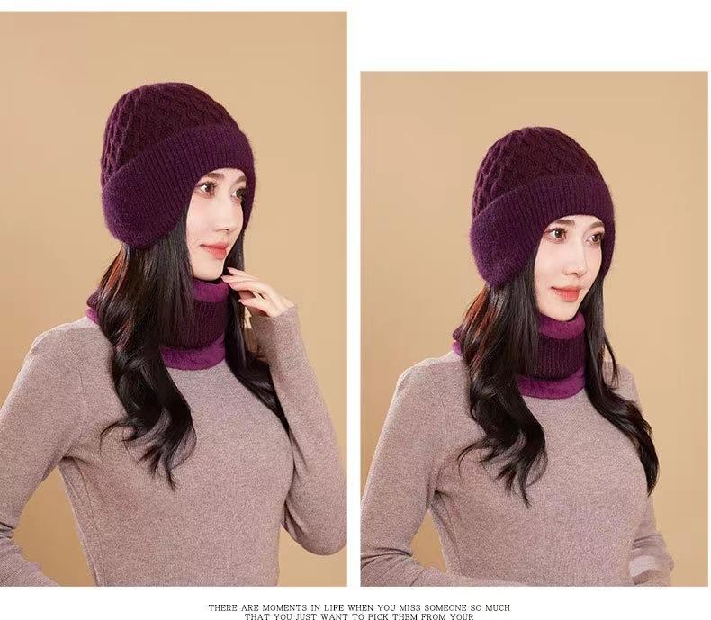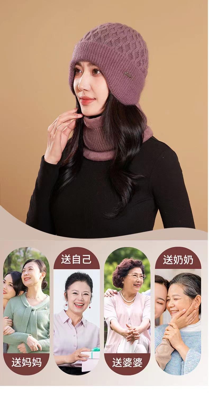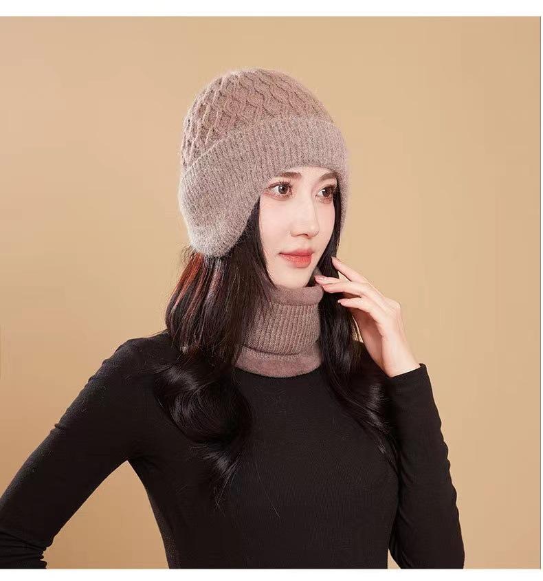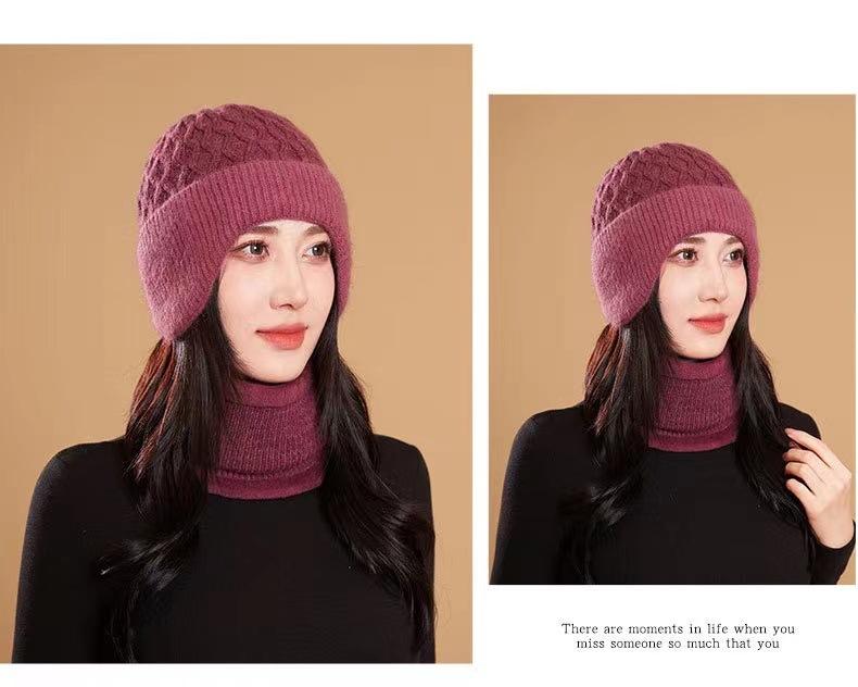 Sombrero de invierno para mediana edad y ancianas, sombrero tejido de pelo de conejo para madre, sombrero de lana con protección para las orejas para anciana, sombrero de algodón con forro polar para abuela