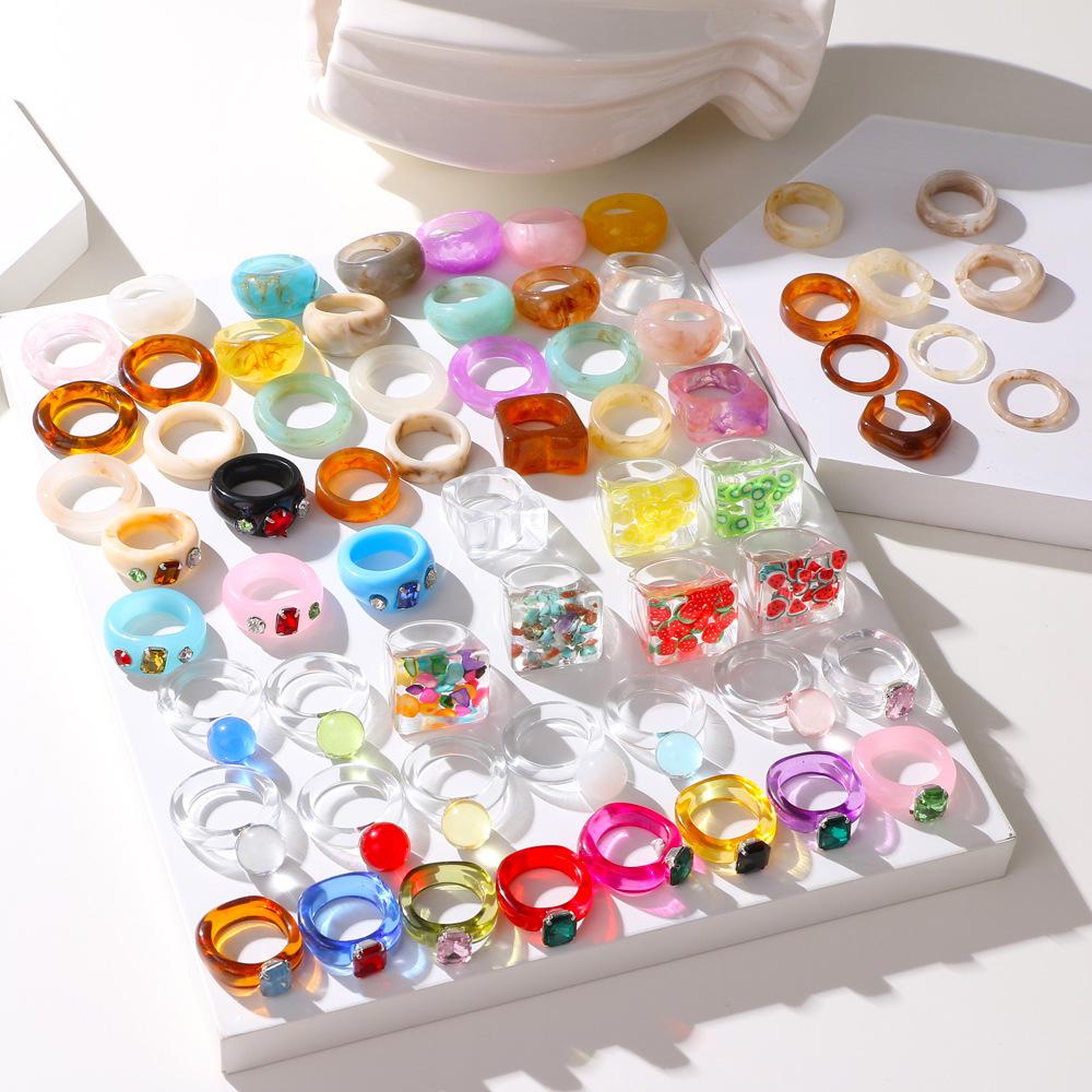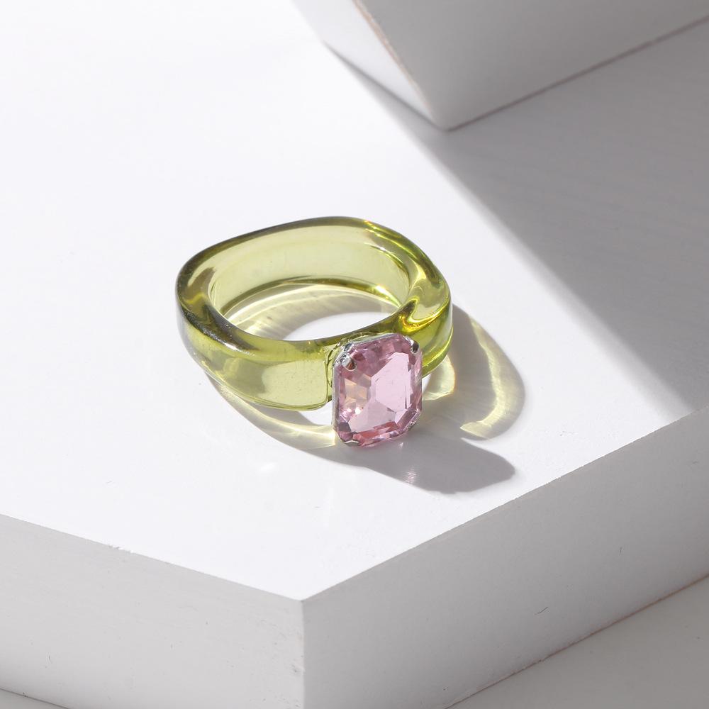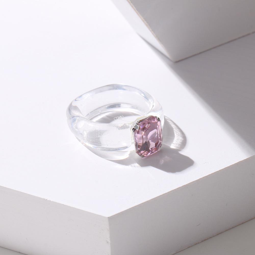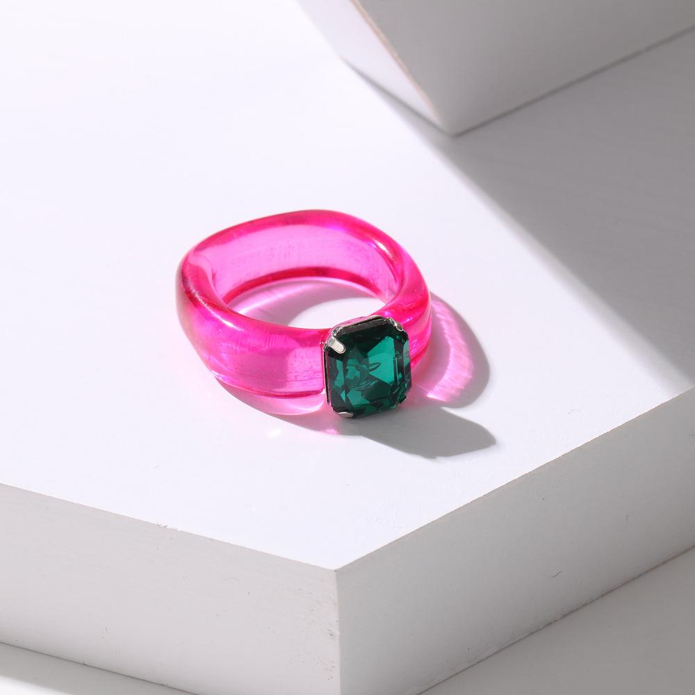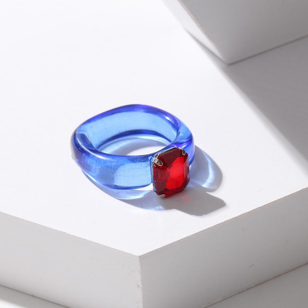 Anillo Cuadrado Transparente Anillo Gema de Resina Acrílica Colorida